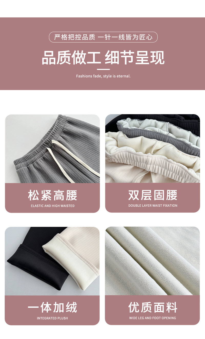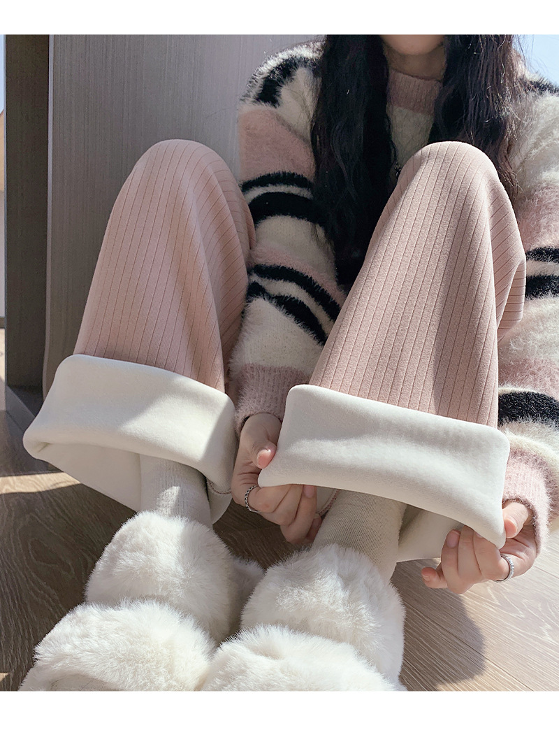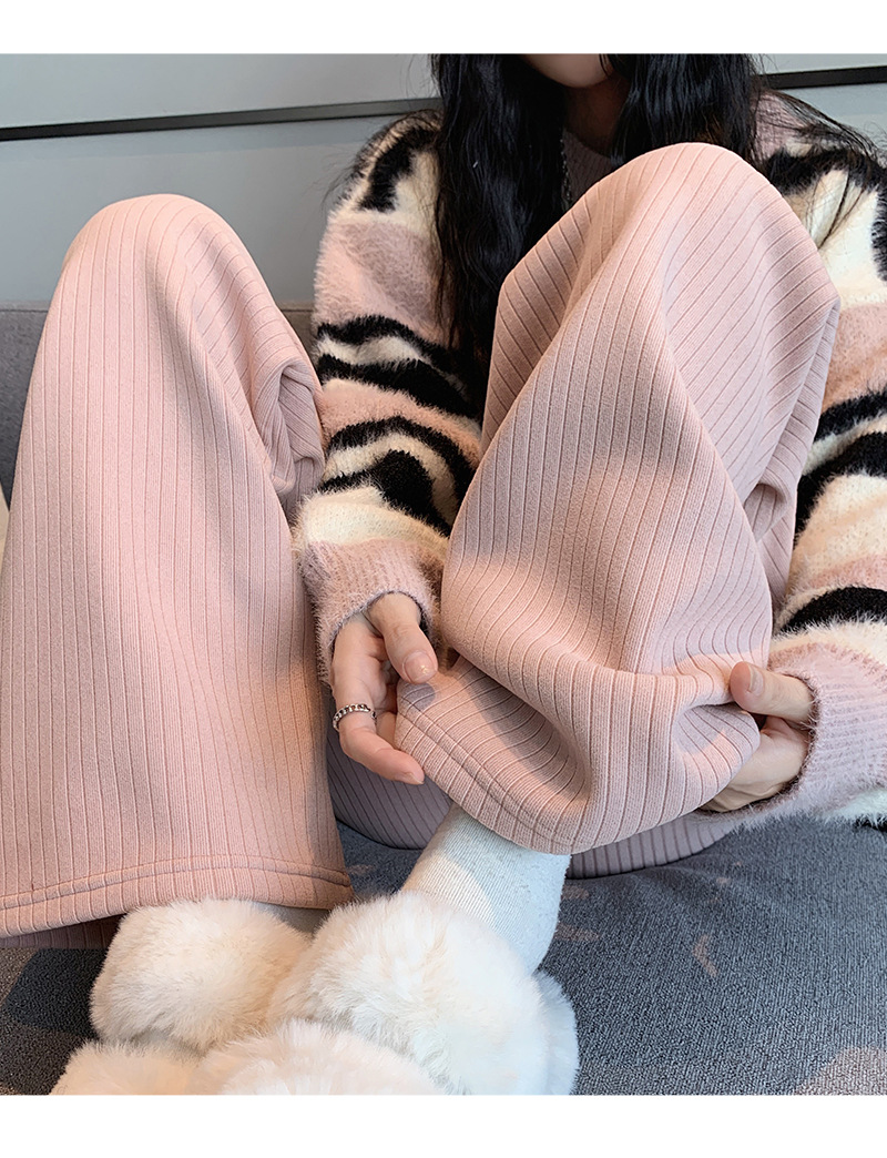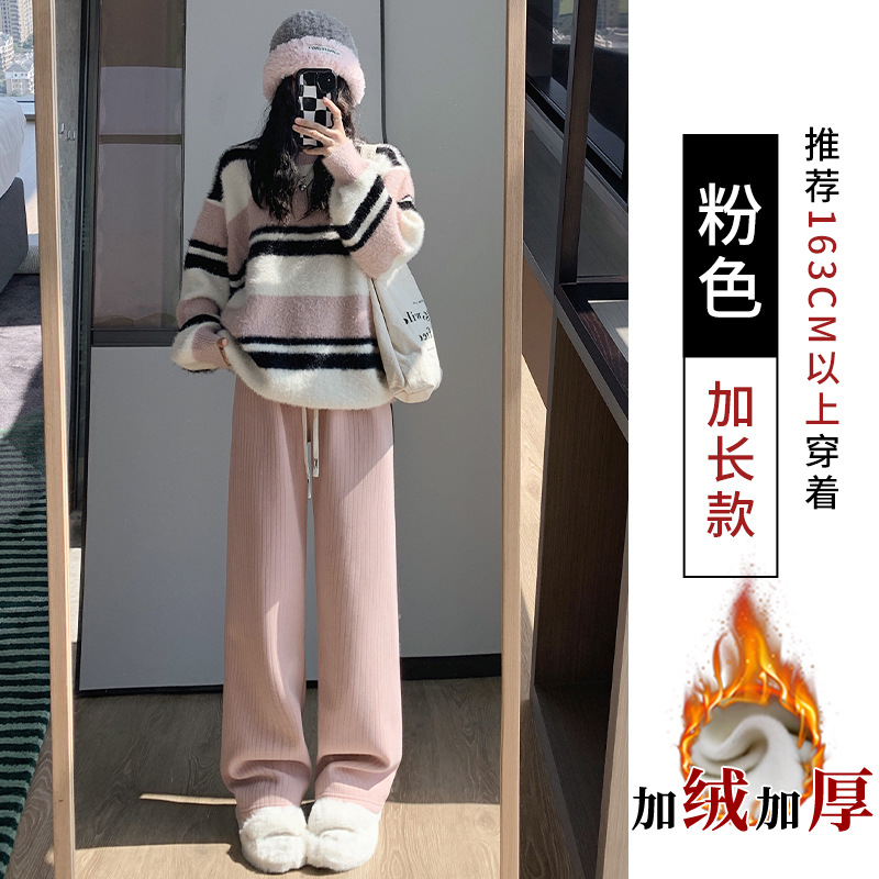 기모 니트 와이드 레그 팬츠 여성의 가을과 겨울 게으른 스타일 소프트 왁스 도징 캐주얼 바지 하이 웨이스트 스트레이트 좁은 길이 바지