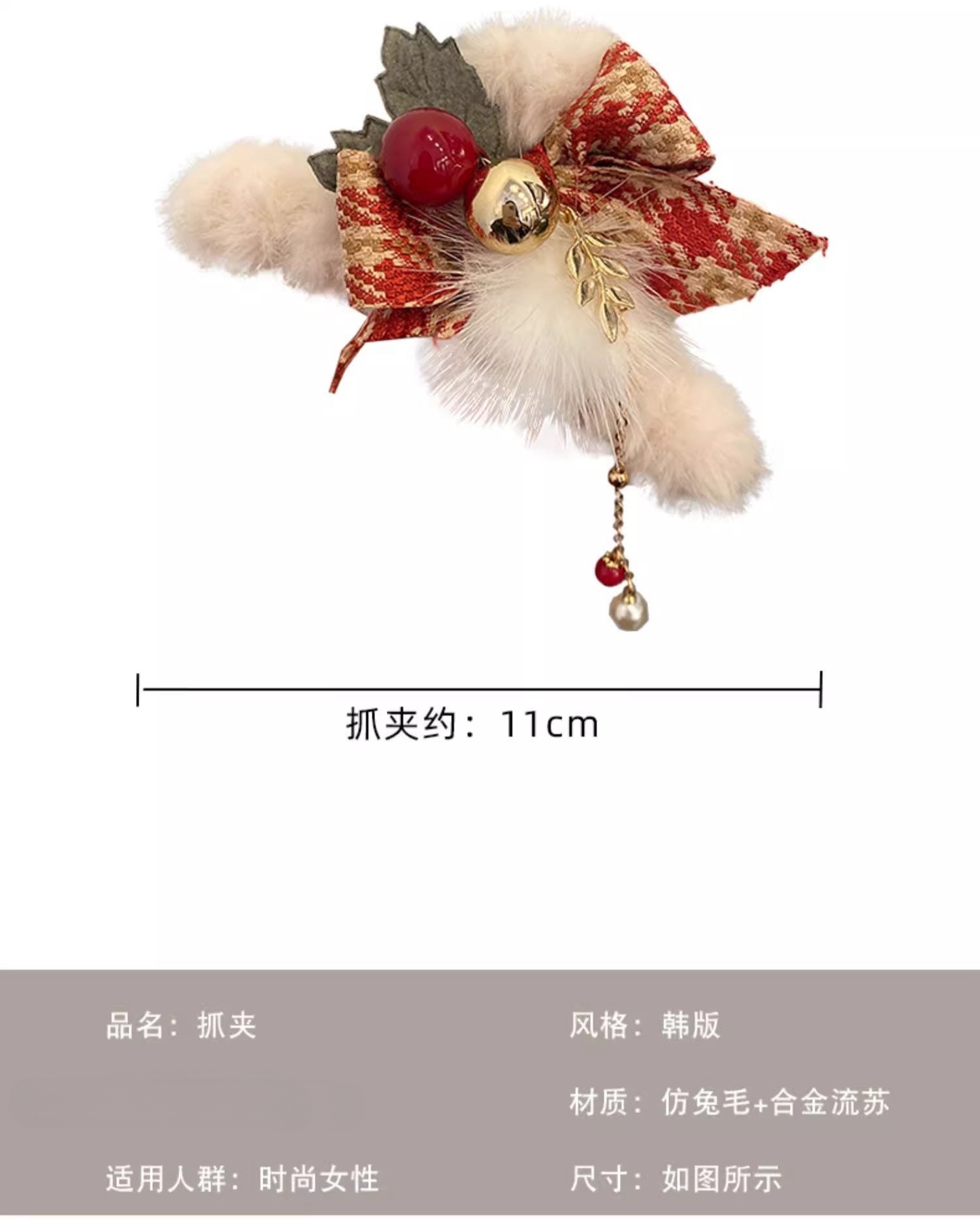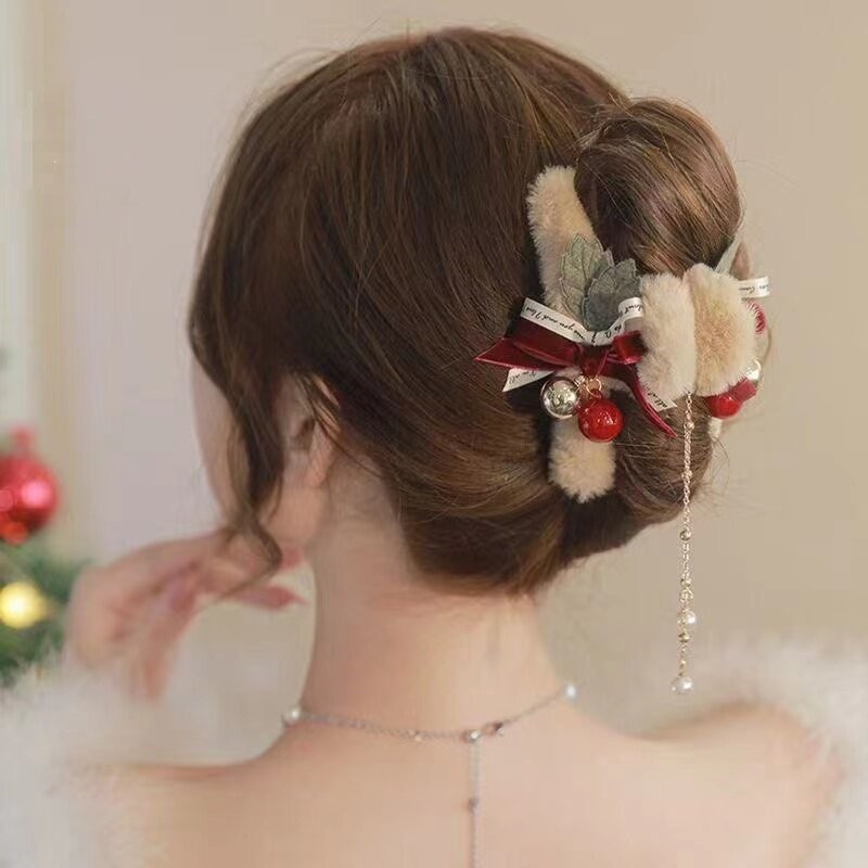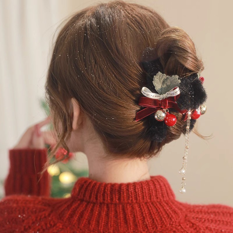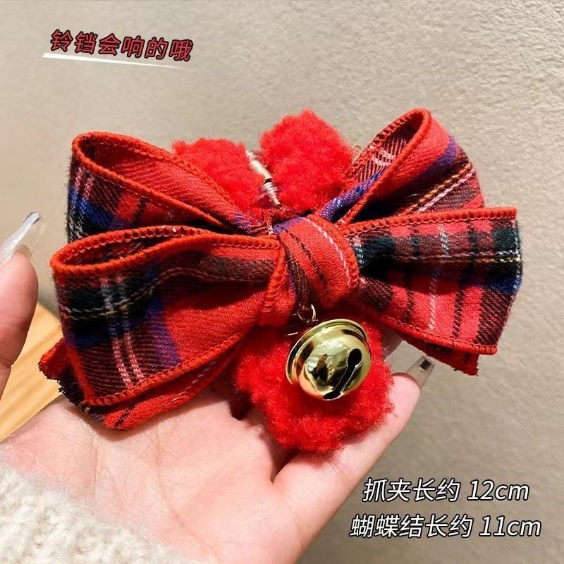 크리스마스 가을 겨울 플러시 헤어 클립 여성용 뒷머리 리본 집게핀 대형 고급 샤크 클립 헤어 액세서리스토어 가기