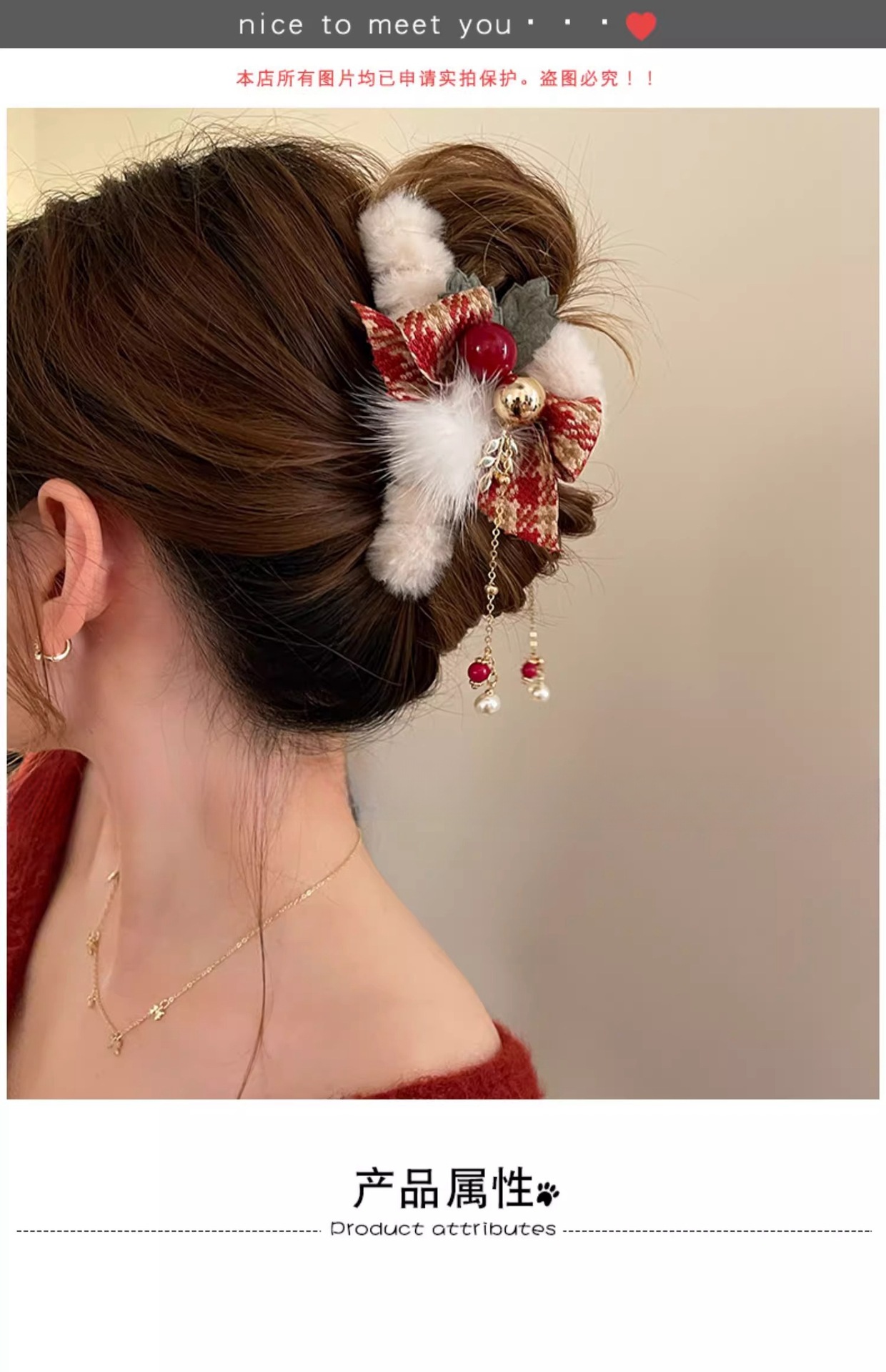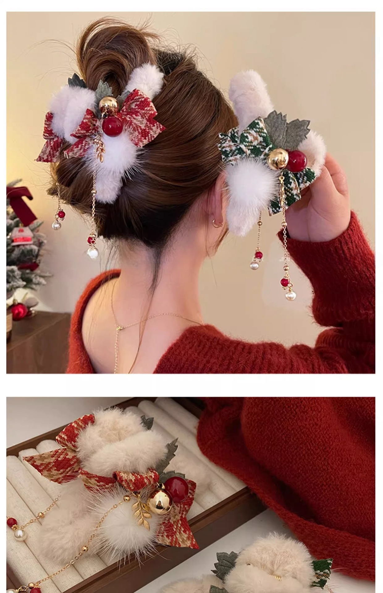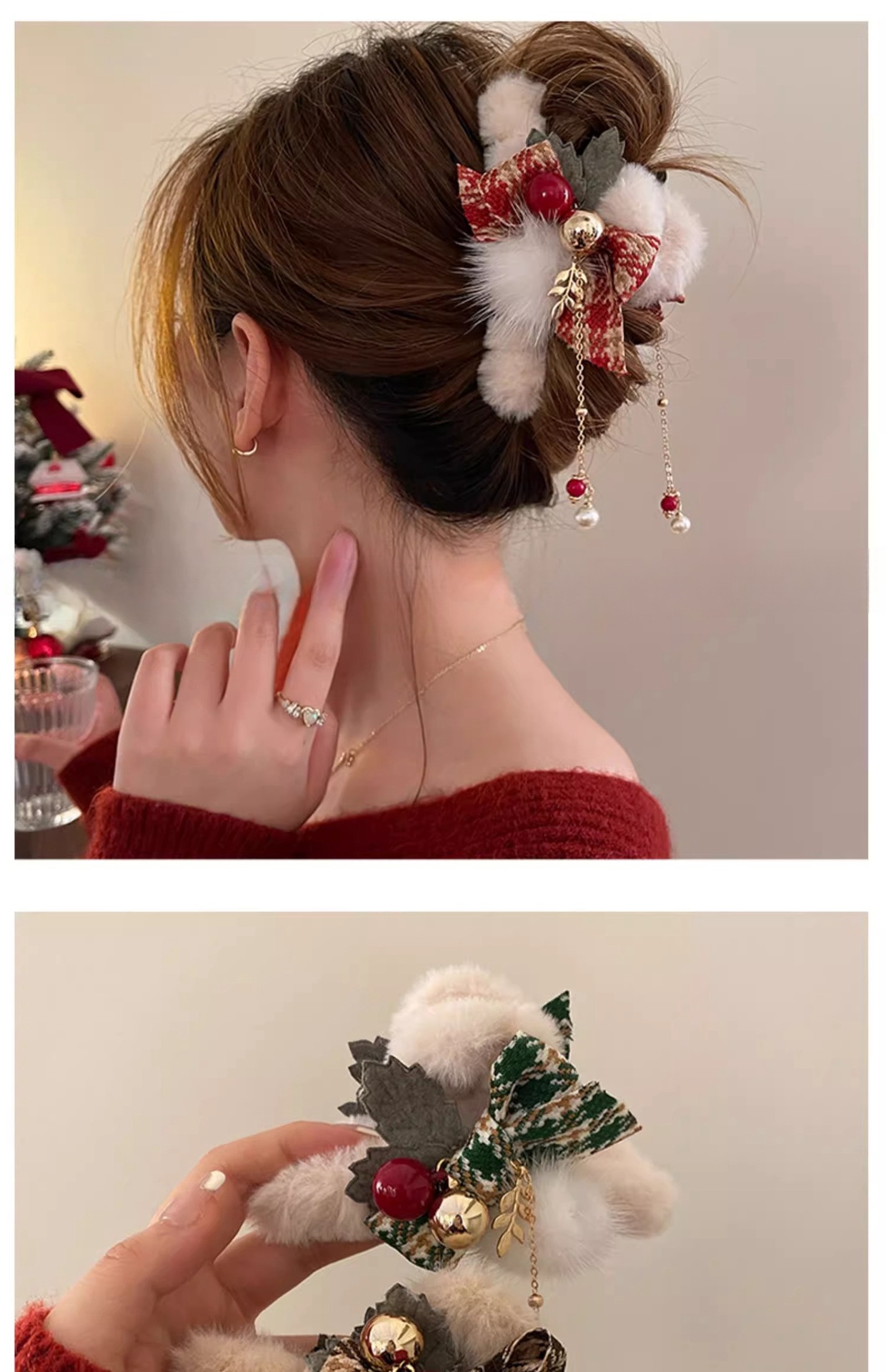 크리스마스 가을 겨울 플러시 헤어 클립 여성용 뒷머리 리본 집게핀 대형 고급 샤크 클립 헤어 액세서리스토어 가기