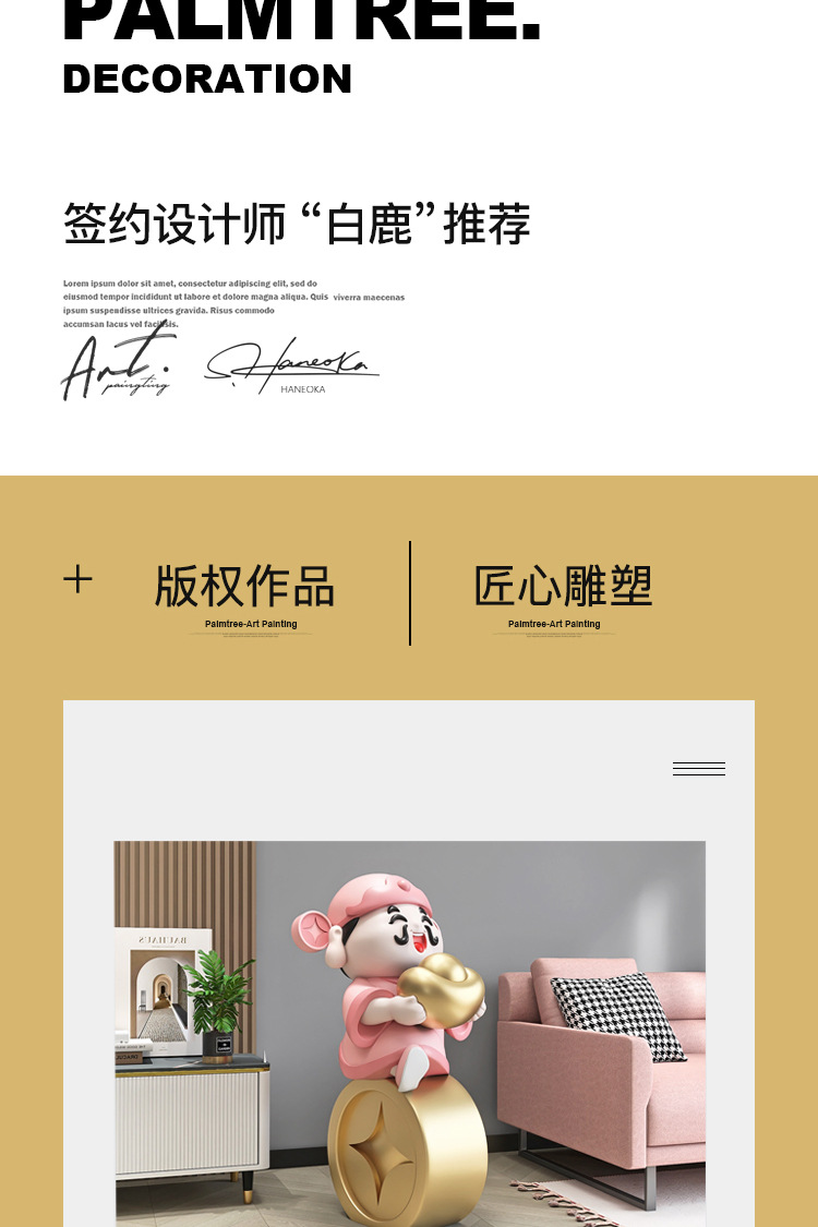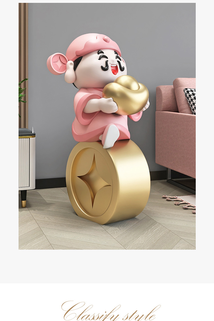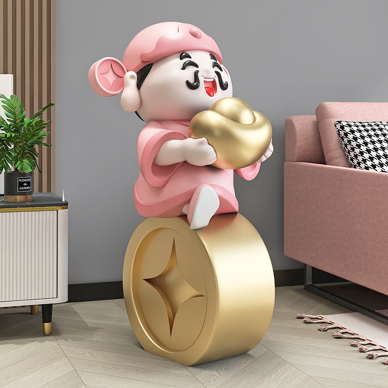 • 금 주괴 부의 신 예 바닥 장식-핑크 (높이 75cm)
