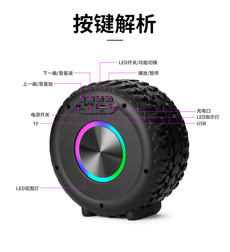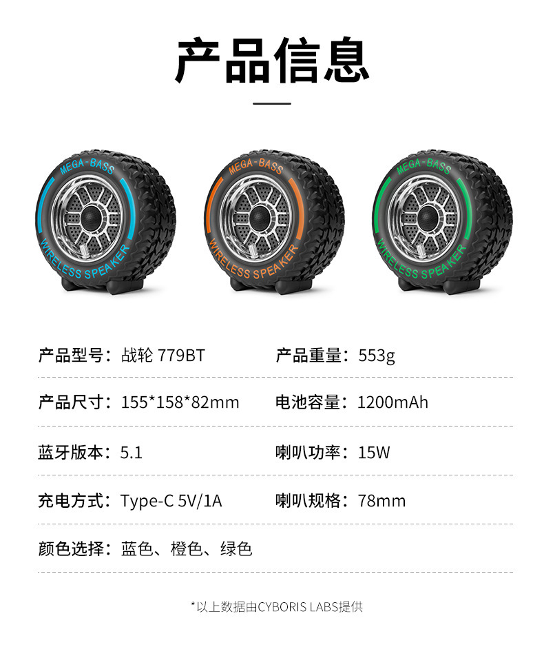 휠 스피커 새로운 무선 블루투스 타이어 스피커 전쟁 휠 크로스 보더 오디오 용 휴대용 야외 서브 우퍼