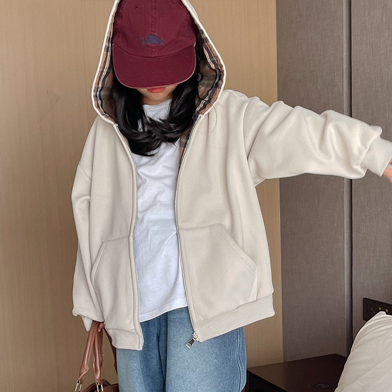 어린이 양털 후드 티셔츠 재킷 2025 가을, 겨울 소녀 복고풍 게으른 스타일 캐주얼 카디건 탑
