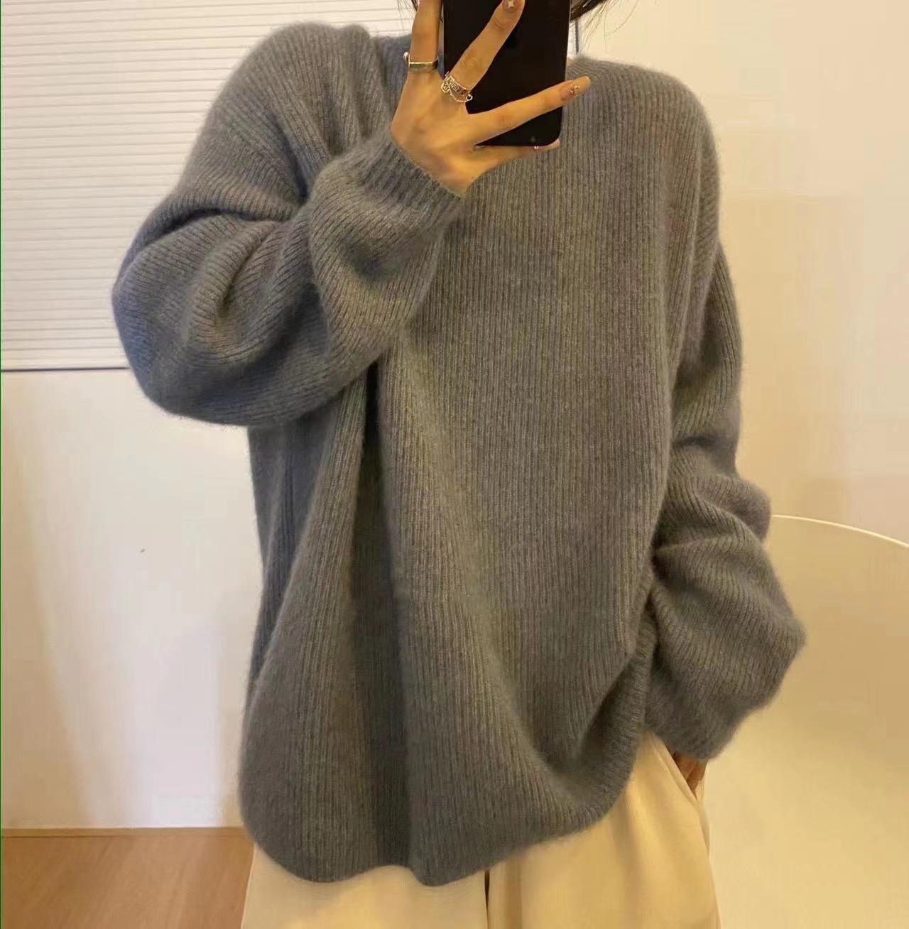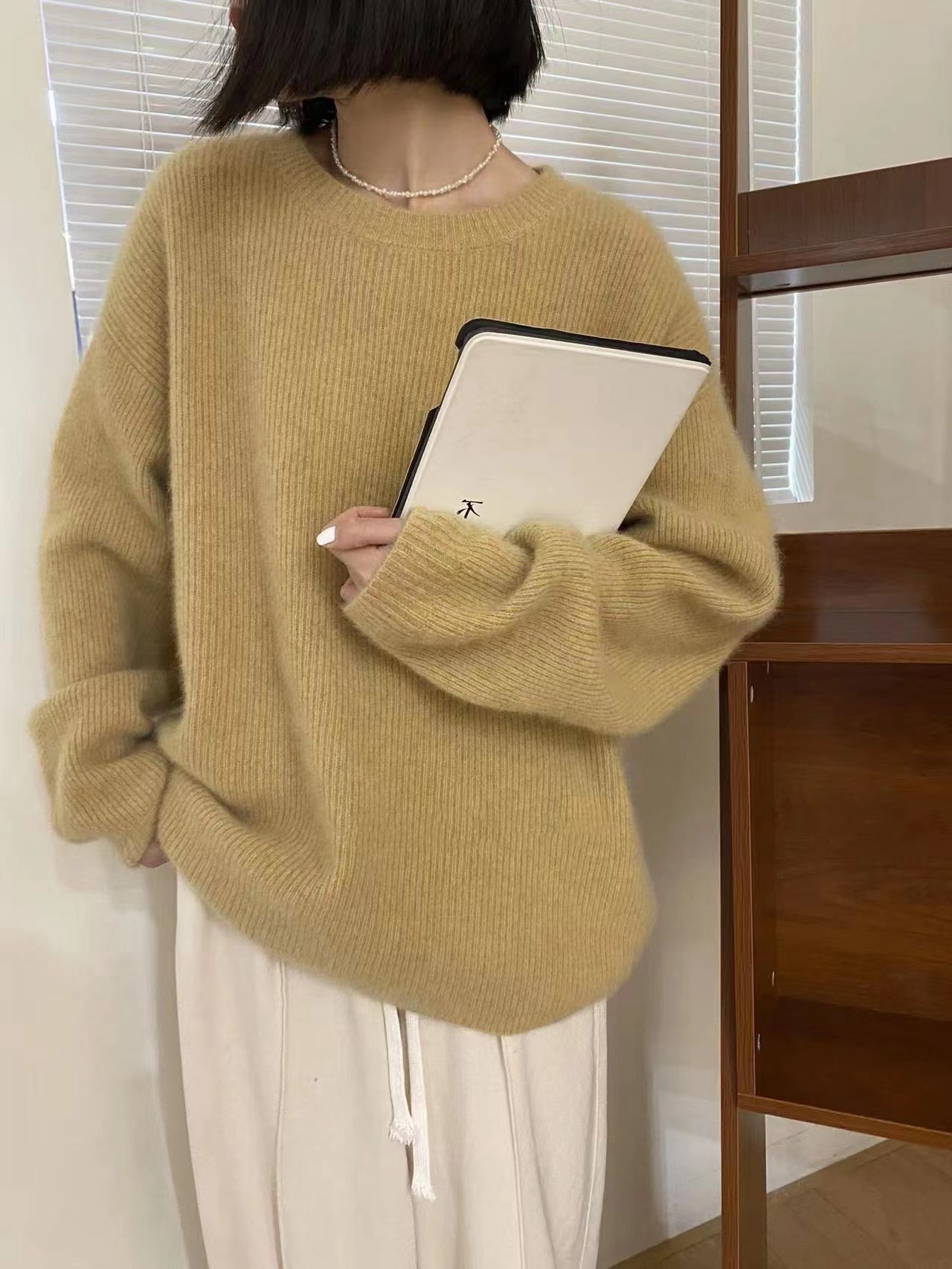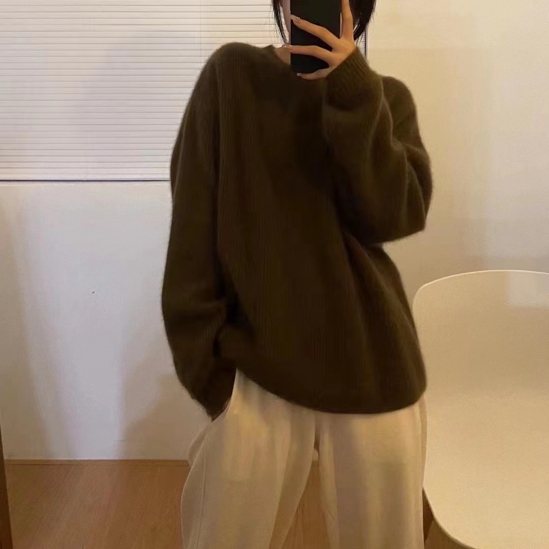 가을과 겨울 새로운 라운드 넥 울 스웨터 여성의 느슨한 두꺼운 스웨터 게으른 스타일 풀오버 니트베이스 셔츠 내부 탑스토어 가기