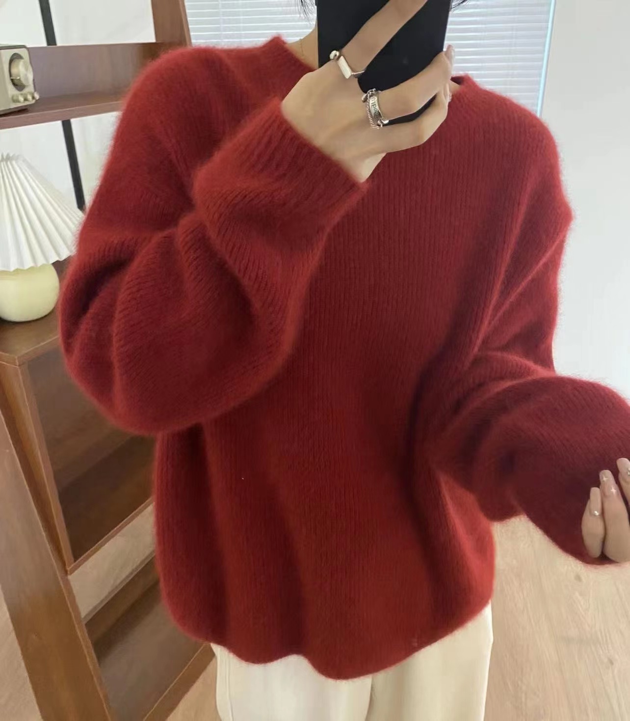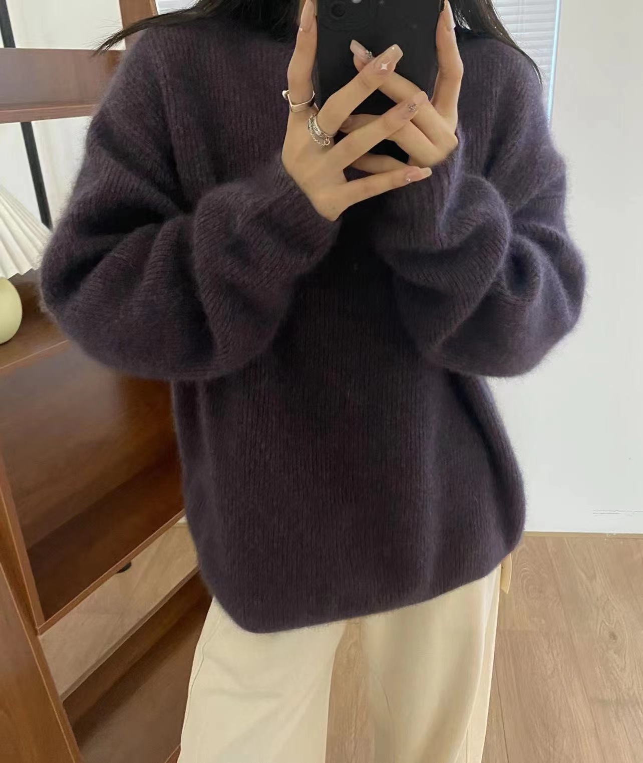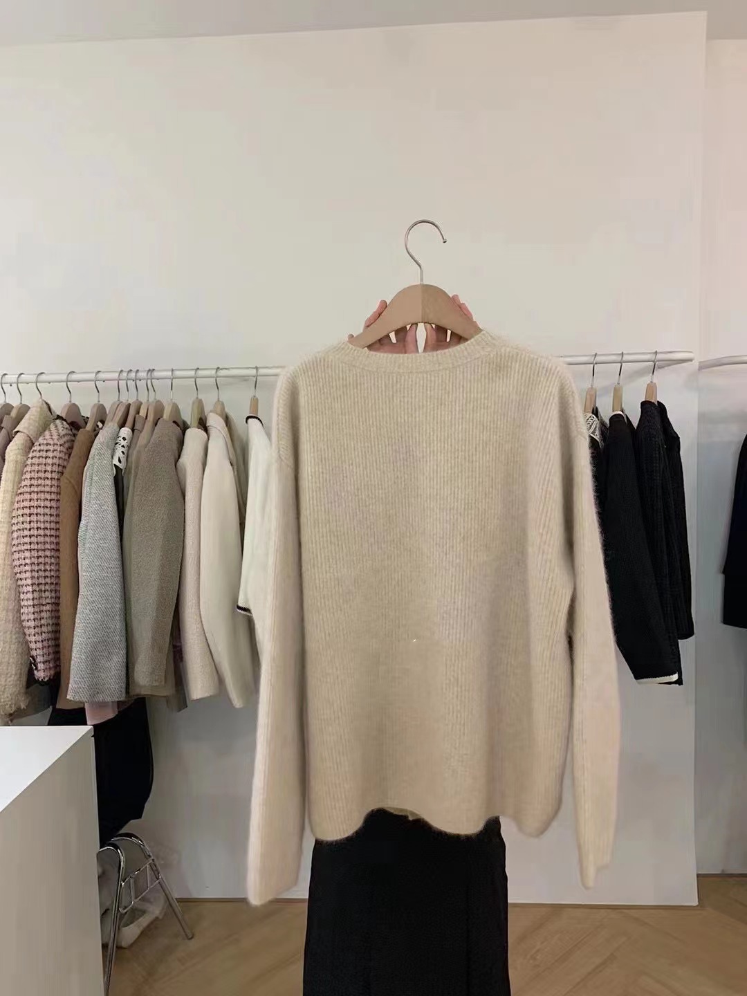가을과 겨울 새로운 라운드 넥 울 스웨터 여성의 느슨한 두꺼운 스웨터 게으른 스타일 풀오버 니트베이스 셔츠 내부 탑스토어 가기