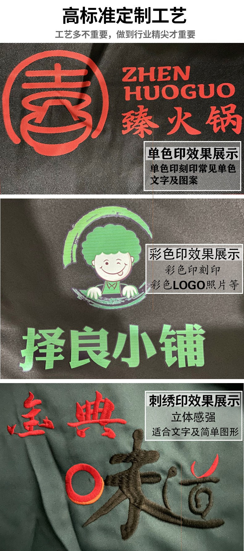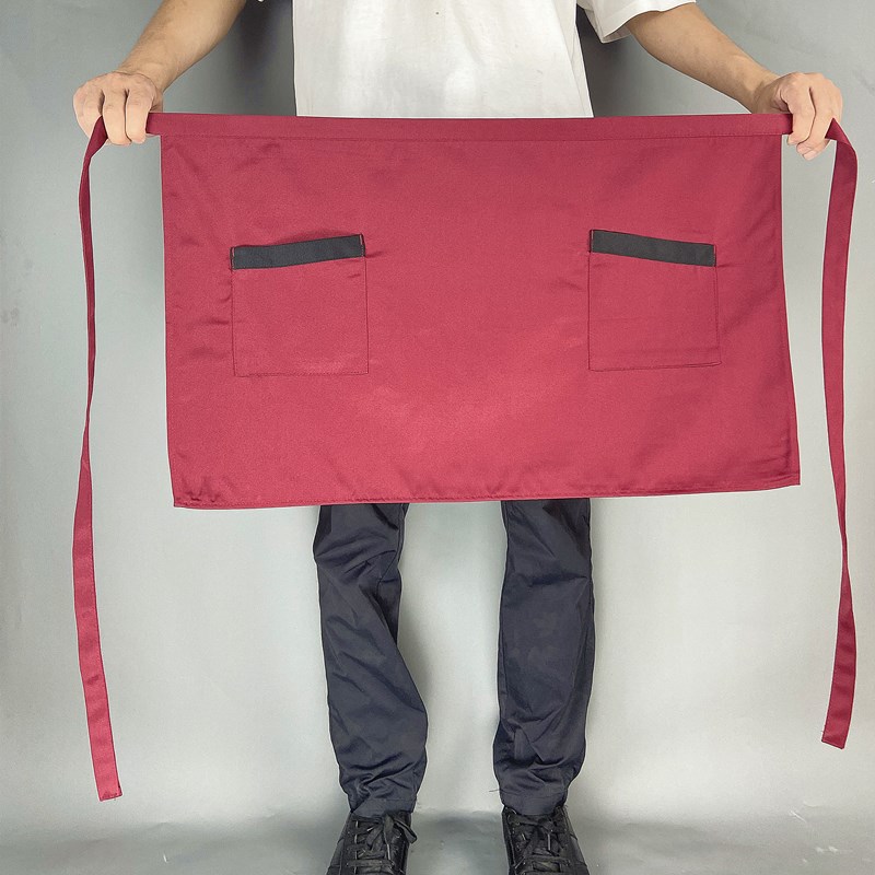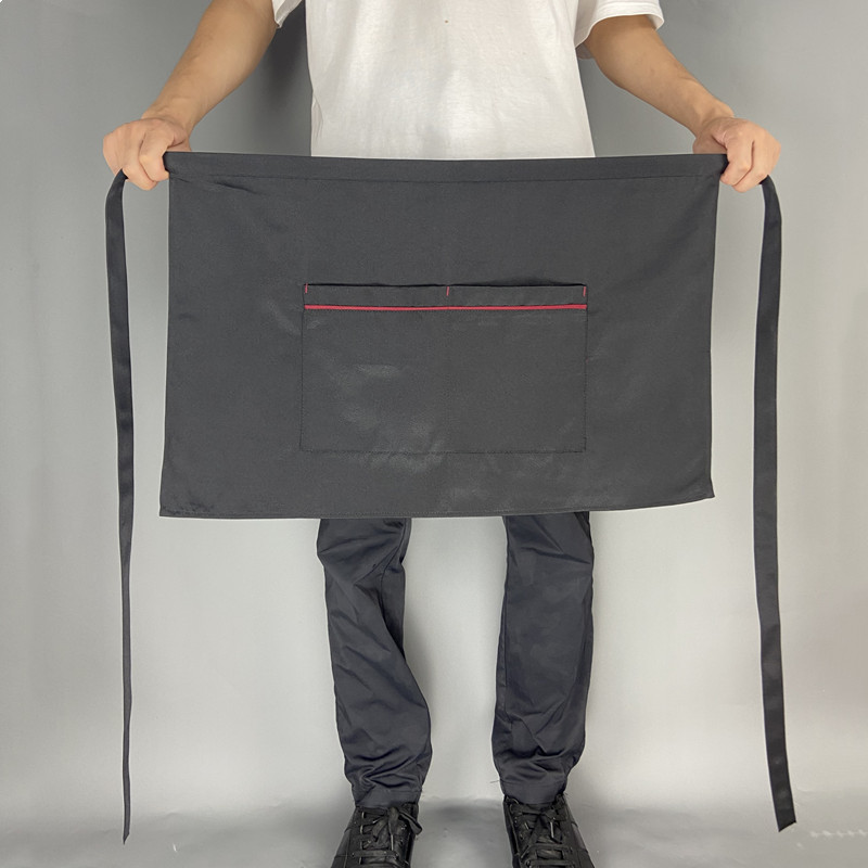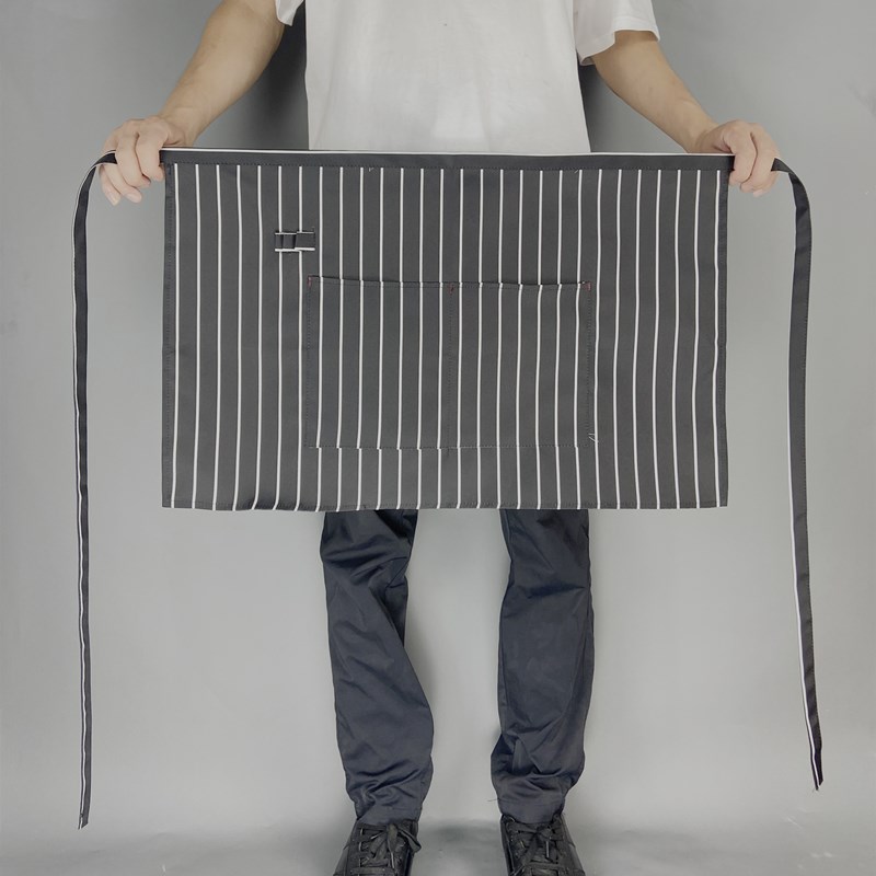 맞춤형 로고가 있는 반기장 짧은 앞치마, 전문적인 레스토랑 웨이터용, 여성용 반기장 작업복, 남성용 프린트