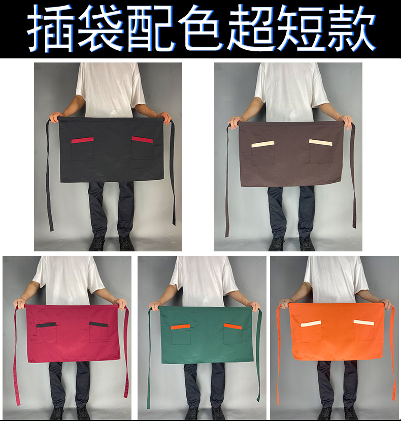 맞춤형 로고가 있는 반기장 짧은 앞치마, 전문적인 레스토랑 웨이터용, 여성용 반기장 작업복, 남성용 프린트스토어 가기