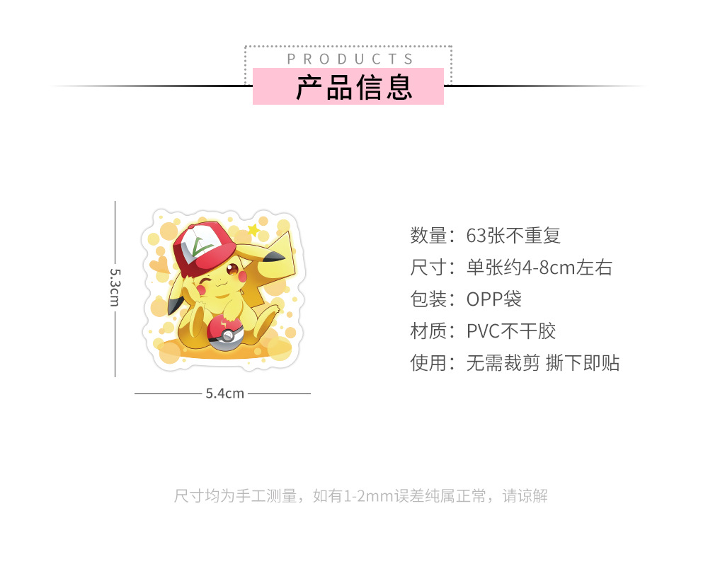 60 새로운 피카츄 패턴 만화 낙서 스티커 자동차 수하물 컵 스쿠터 스티커 도매