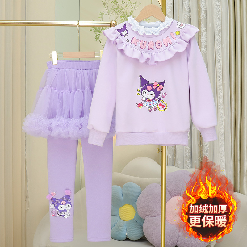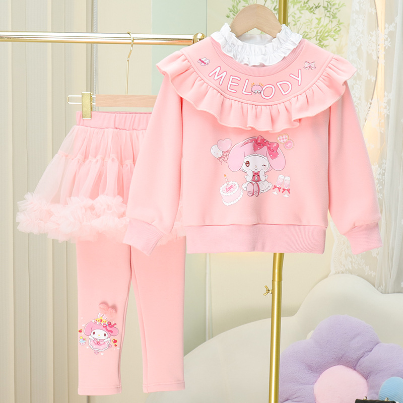 2024 가을과 겨울 새로운 소녀 서양식 3 피스 세트 플러스 벨벳 패딩 아동복 긴팔 스커트 바지 세트 셔츠스토어 가기