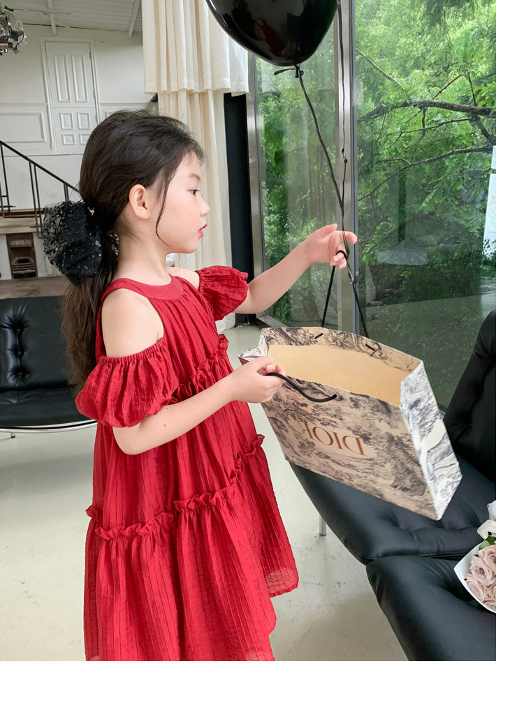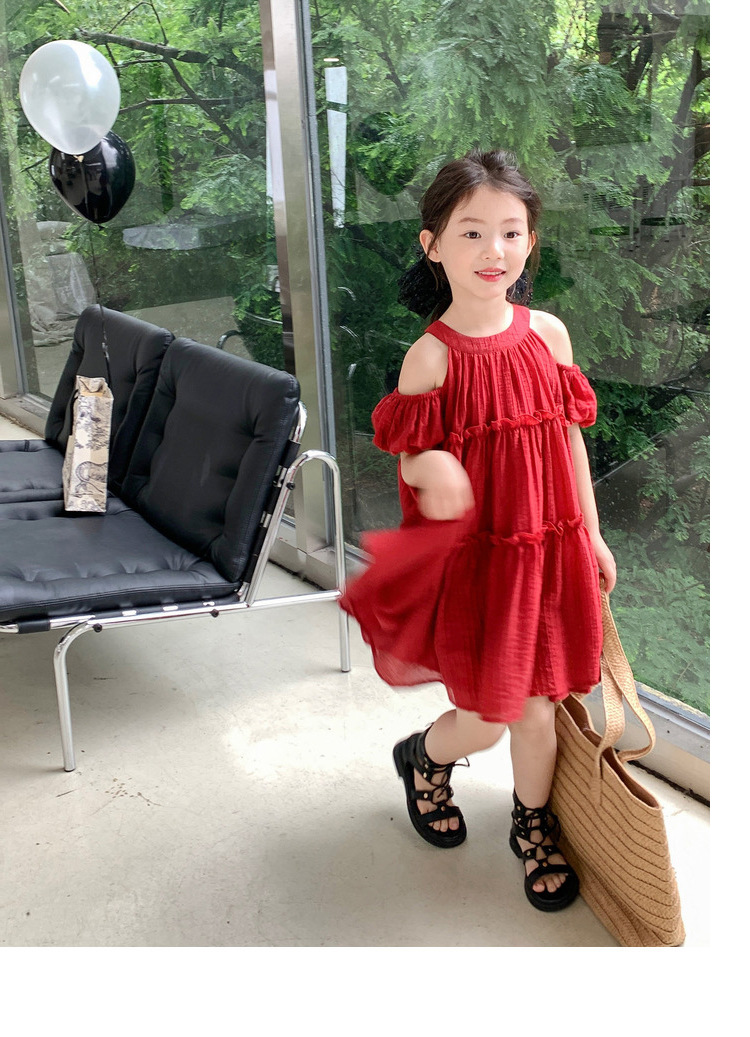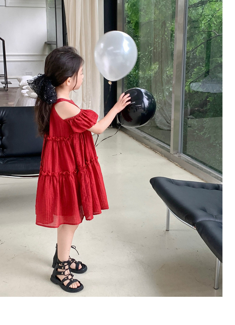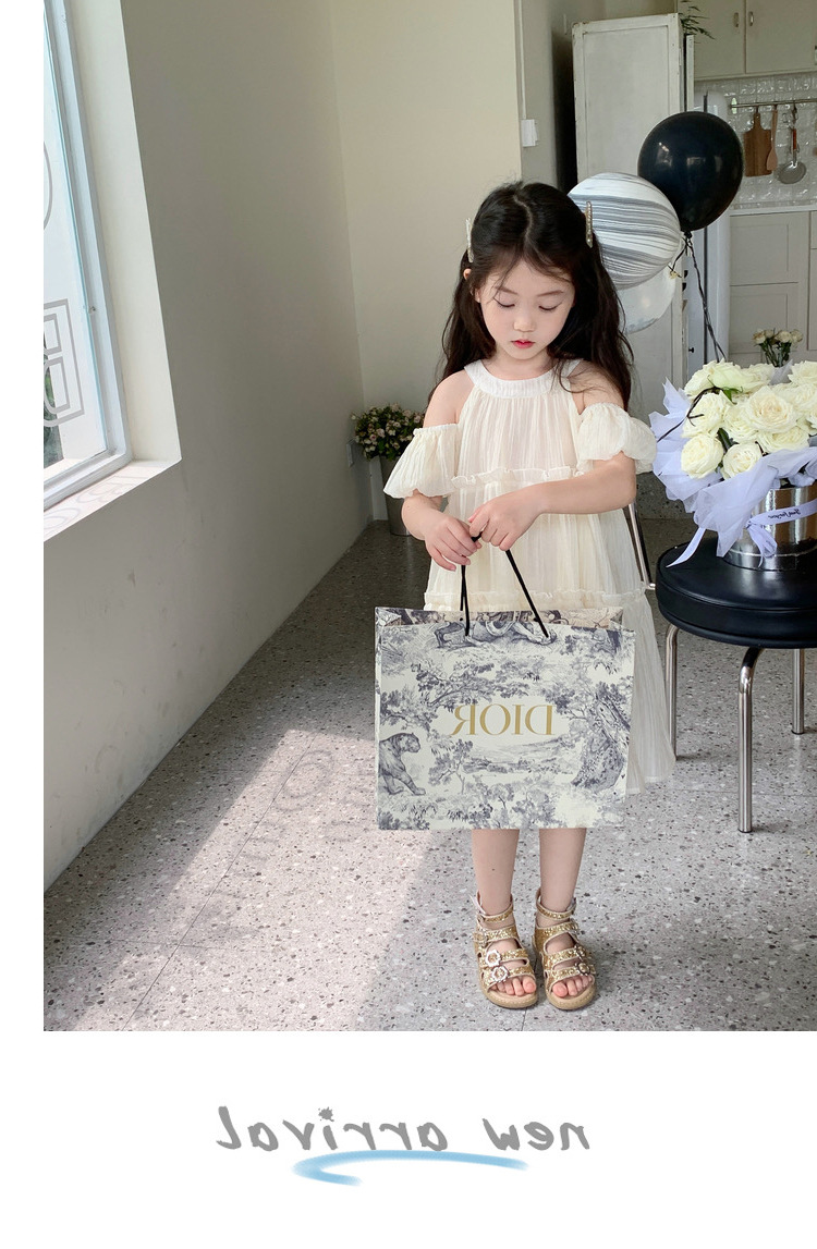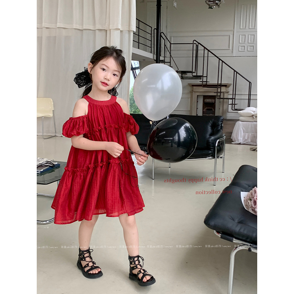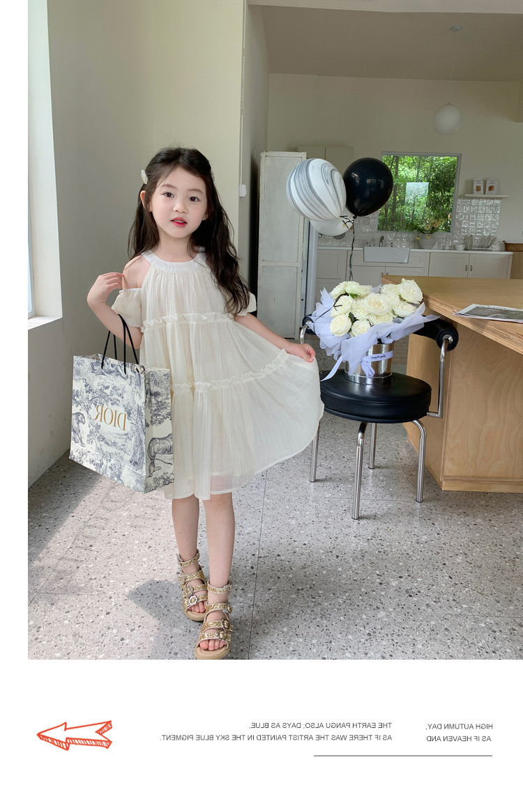 여자 원피스 여름 새로운 달콤한 어깨 목 스트랩 스커트 공주 치마 어린이 머리스토어 가기