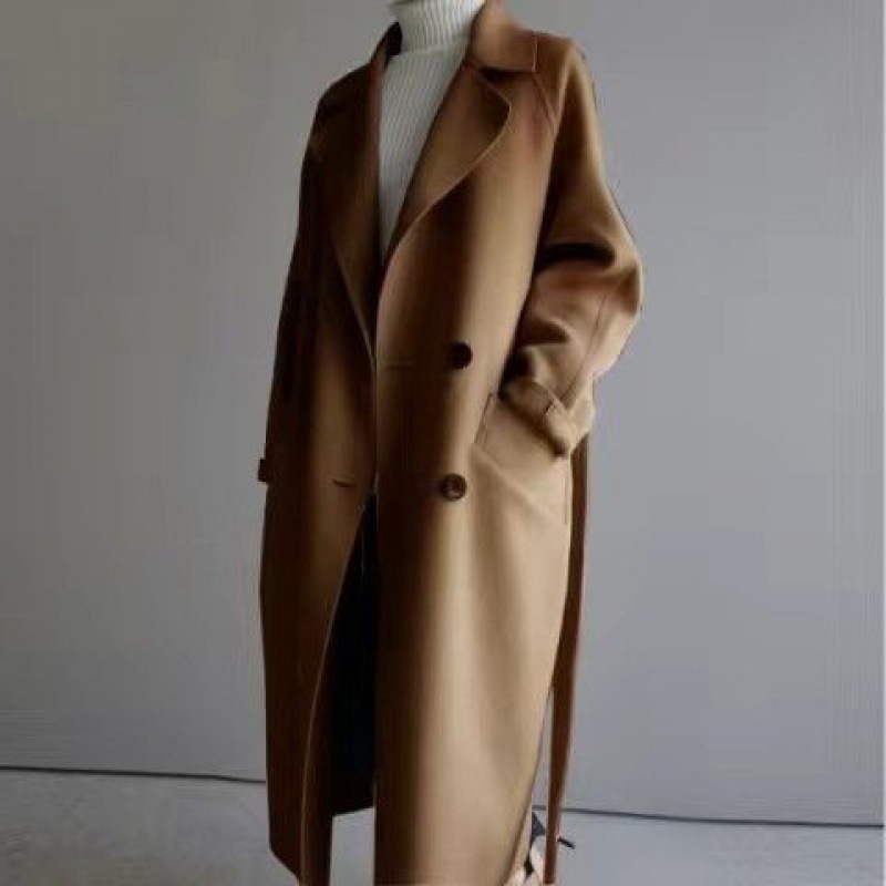 2023 겨울 새로운 중간 길이 베이지 모직 웨이트모어 긴 허리 타이트 하라주쿠 스타일 오버 더 무릎 모직 코트스토어 가기