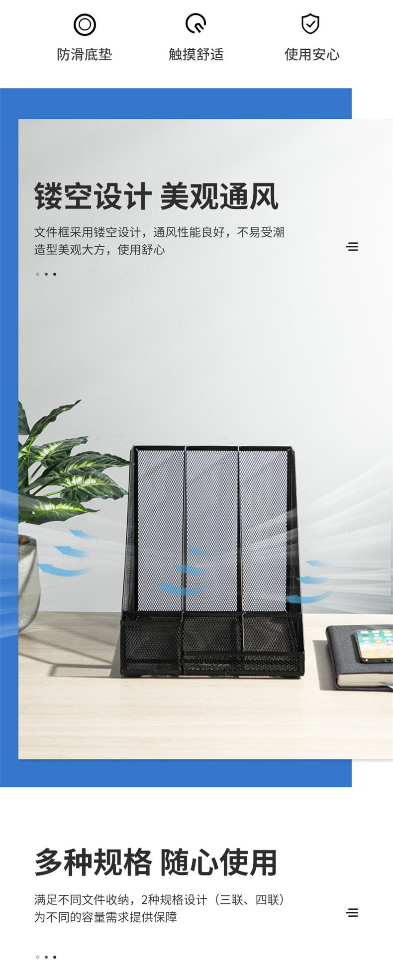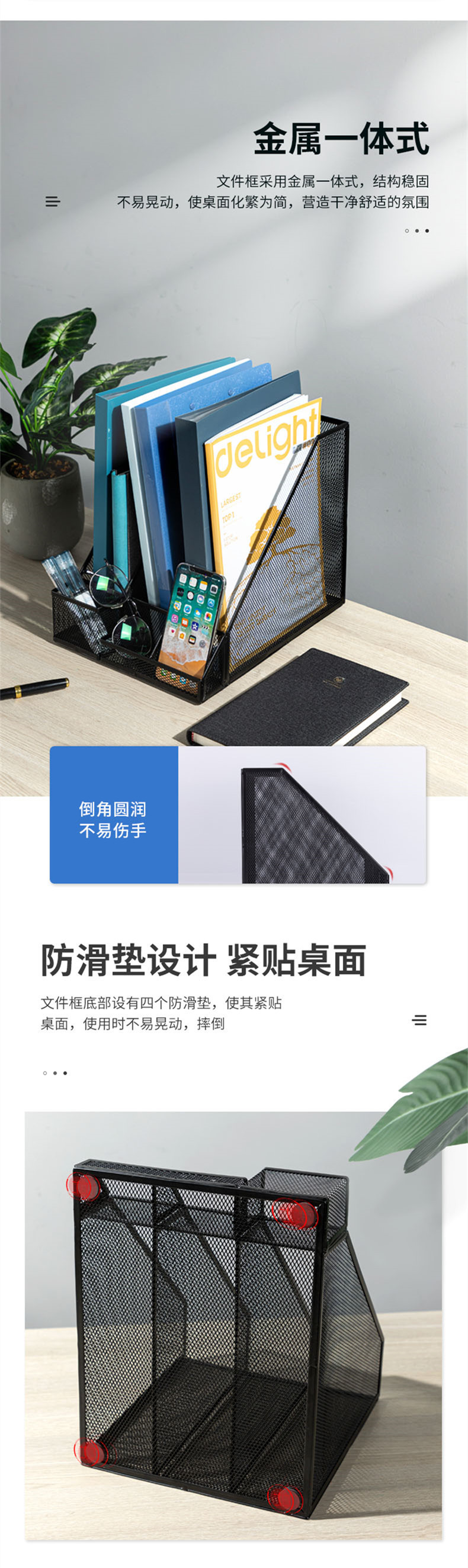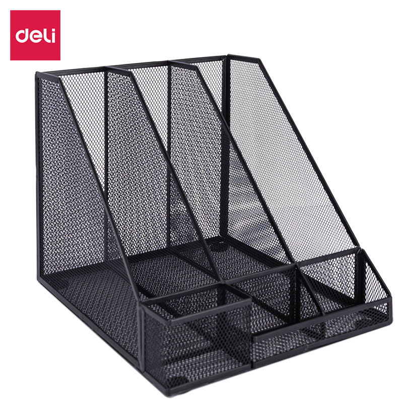 델리 78987 트리플 메탈 메쉬 파일 프레임 펜 홀더가있는 통합 학습 사무실 데스크탑 랙