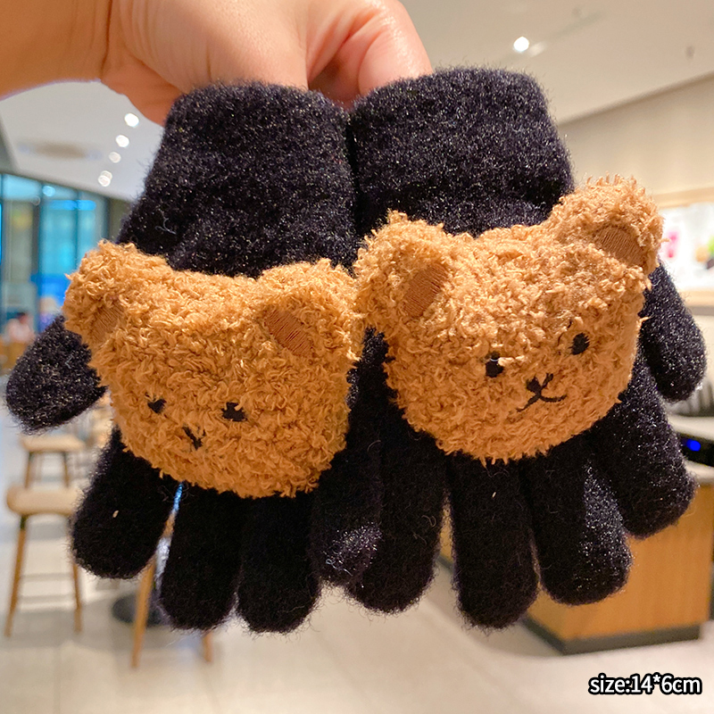 어린이 곰 장갑 가을 겨울 새로운 스타일 따뜻하고 방한 아기 만화 다섯 손가락 장갑 남녀 공용 외출 및 학교용