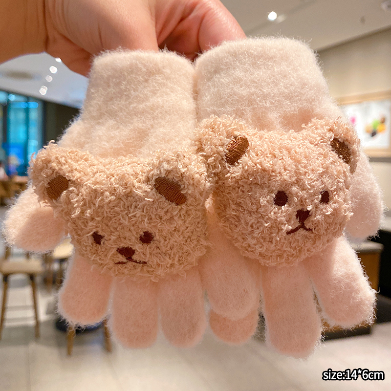 어린이 곰 장갑 가을 겨울 새로운 스타일 따뜻하고 방한 아기 만화 다섯 손가락 장갑 남녀 공용 외출 및 학교용스토어 가기
