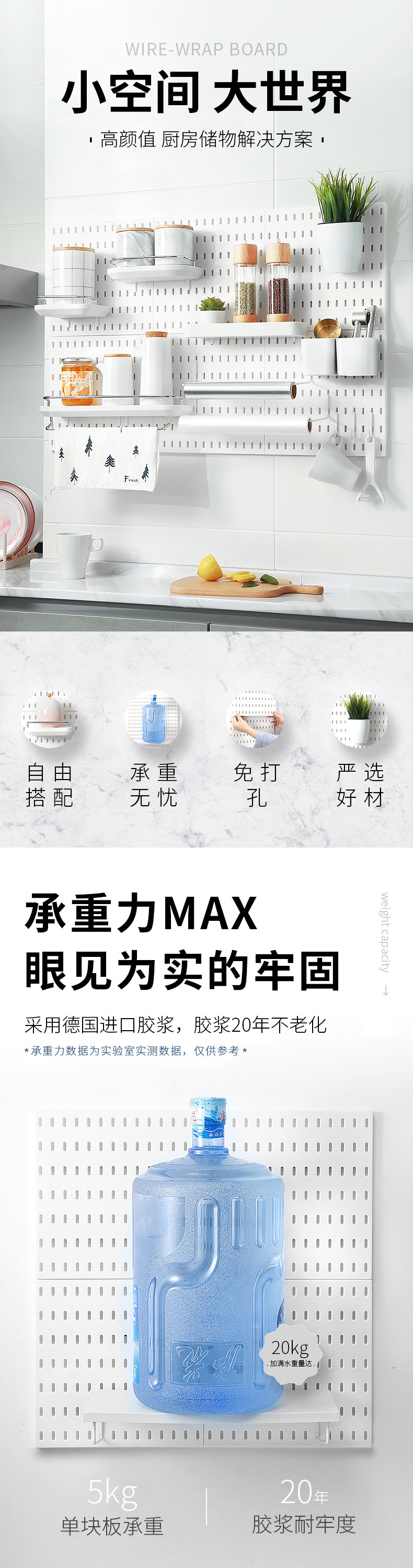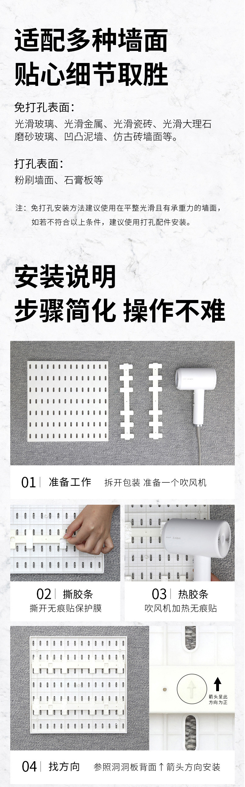 • B084 홀 보드 다기능 스토리지 후크 화이트