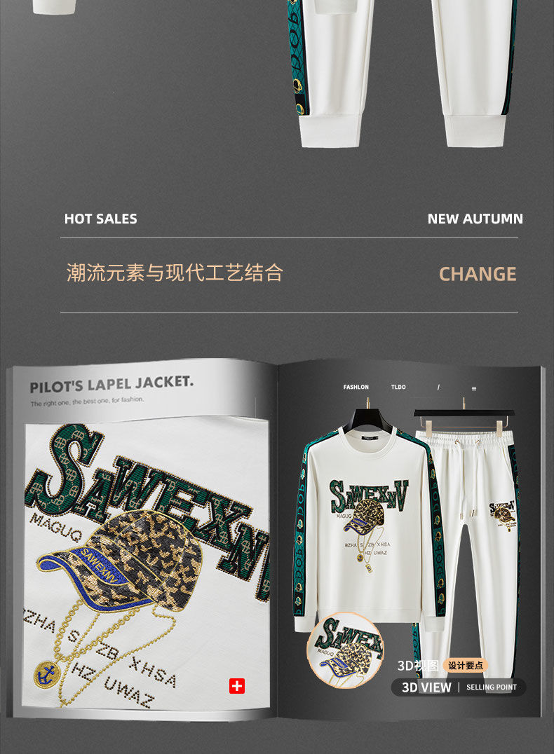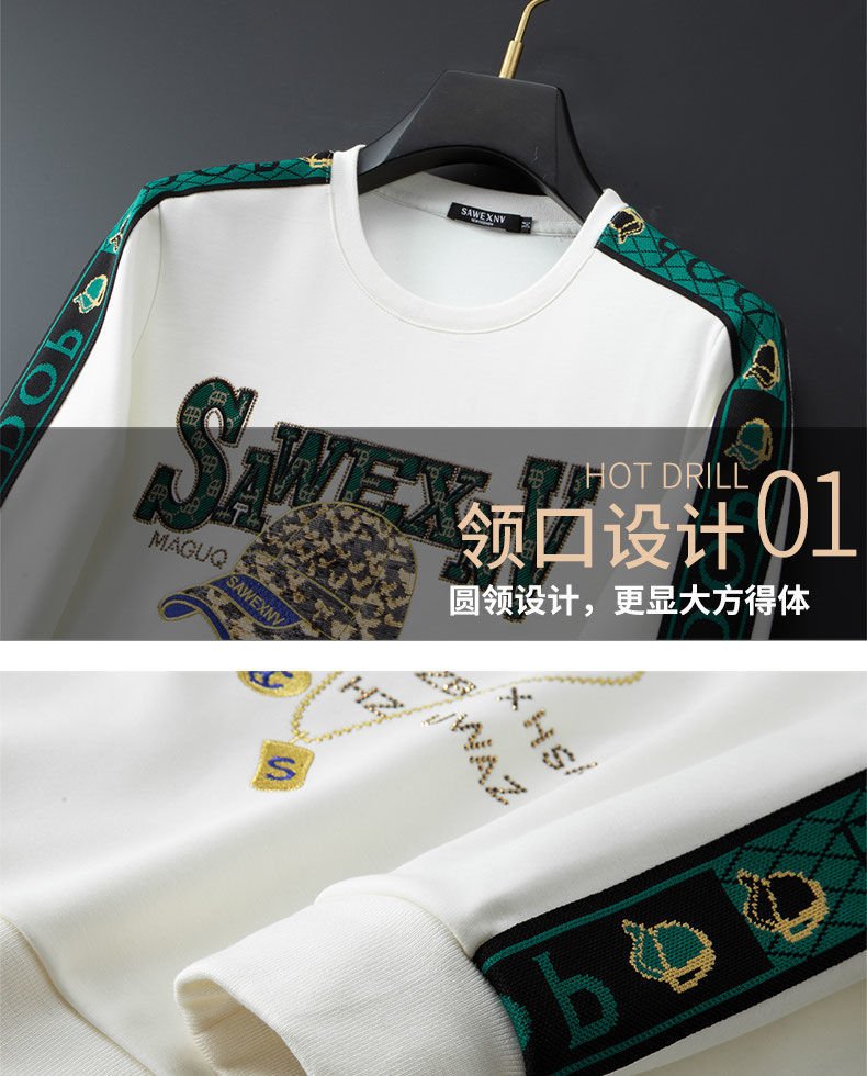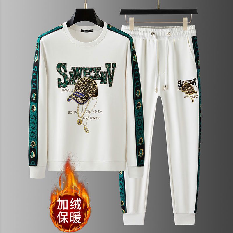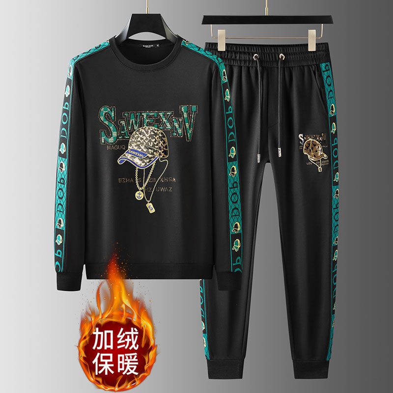 유럽의 고급 자수 기모 두꺼운 스웨터 세트 남자의 유행 2023 가을 새로운 남자의 투피스 세트스토어 가기
