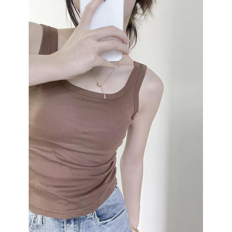 듀오 물라 ~ 가슴 패드 스레드 면 내부 조끼 여성용 푸시업 라텍스 컵 모든 매치 라운드 넥 민소매 베이스