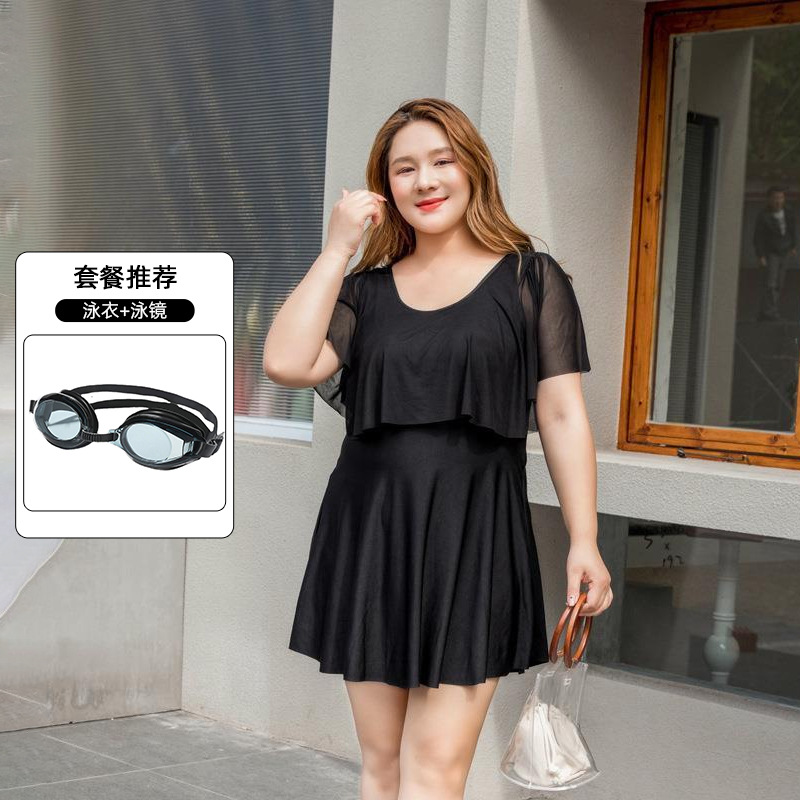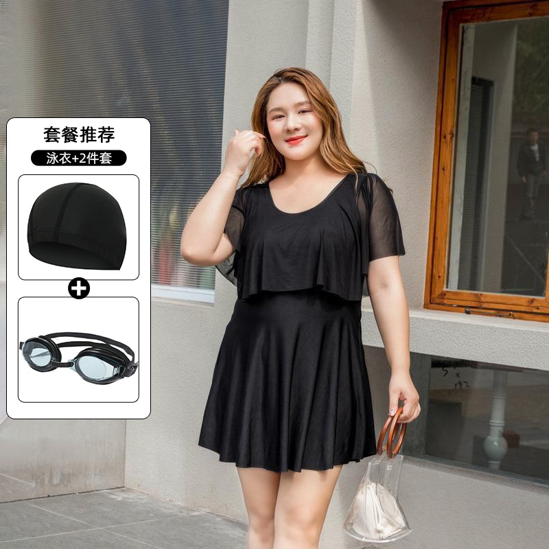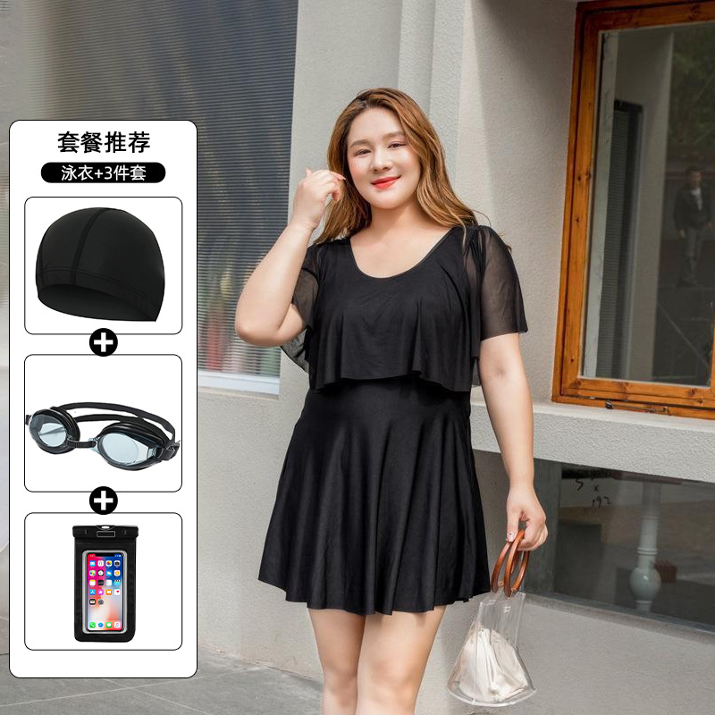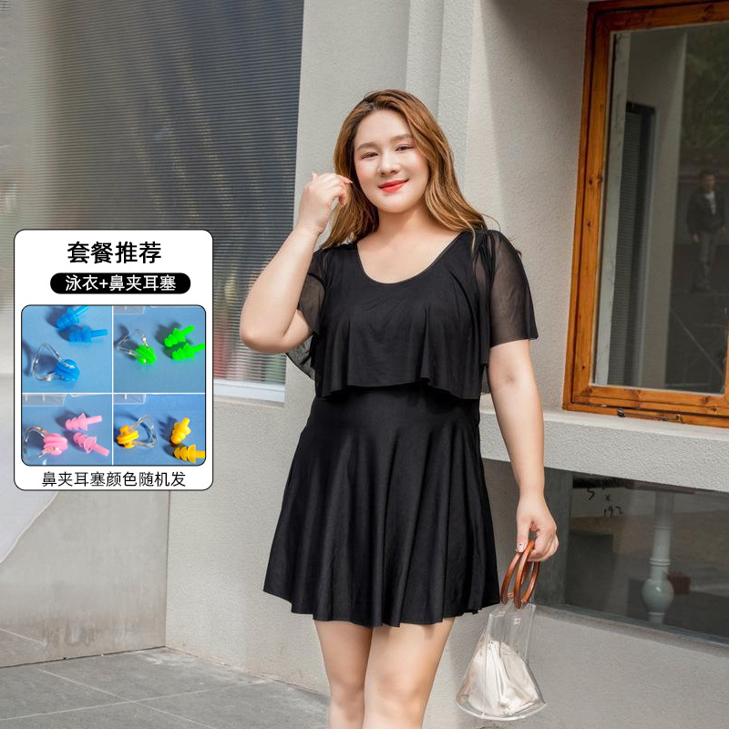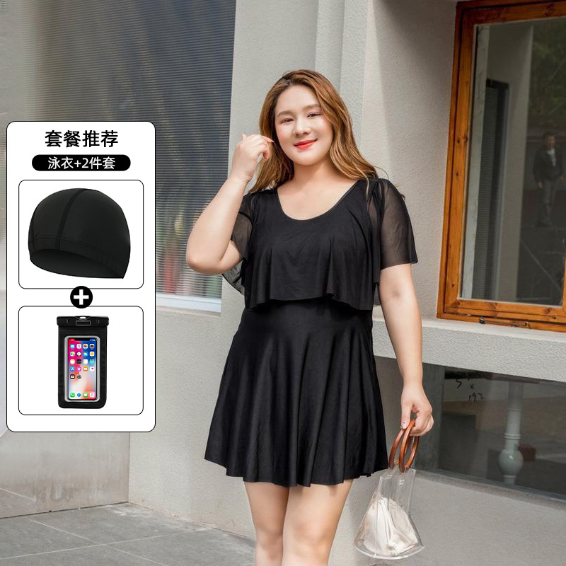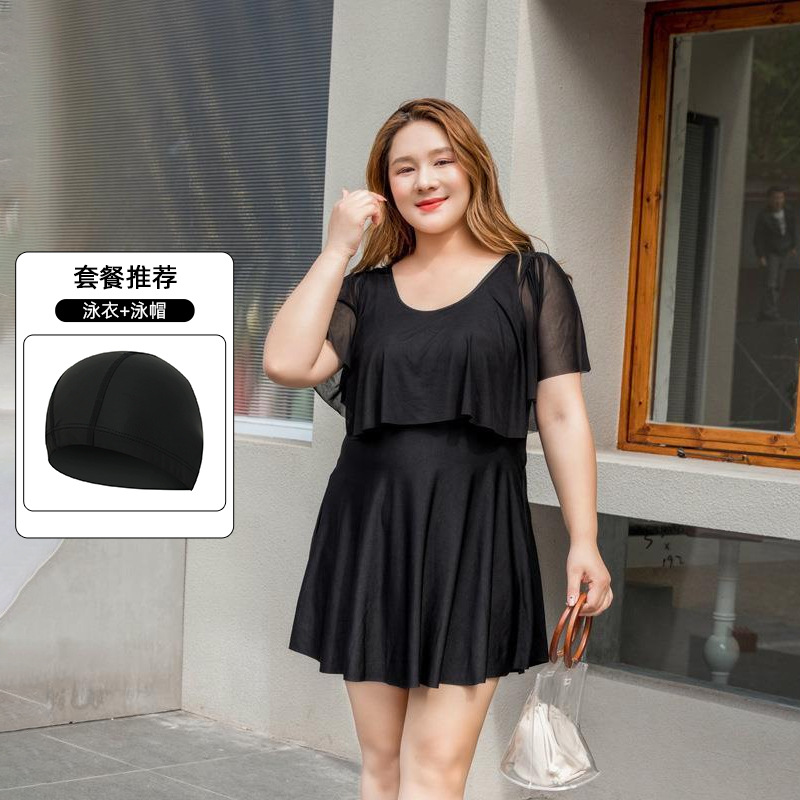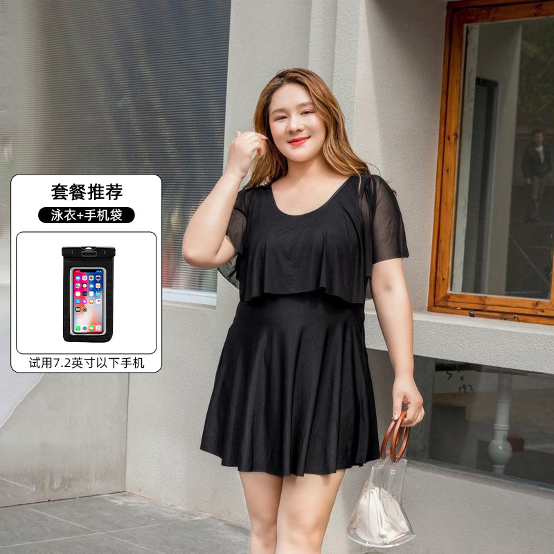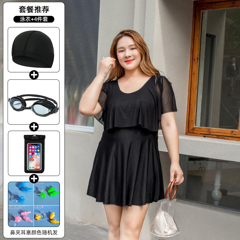 플러스 사이즈 수영복 여자의 통통녀 원피스 스커트 블랙 슬림 배꼽 취재 여자의 보수적 인 온천 휴가 수영복스토어 가기