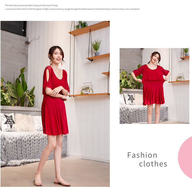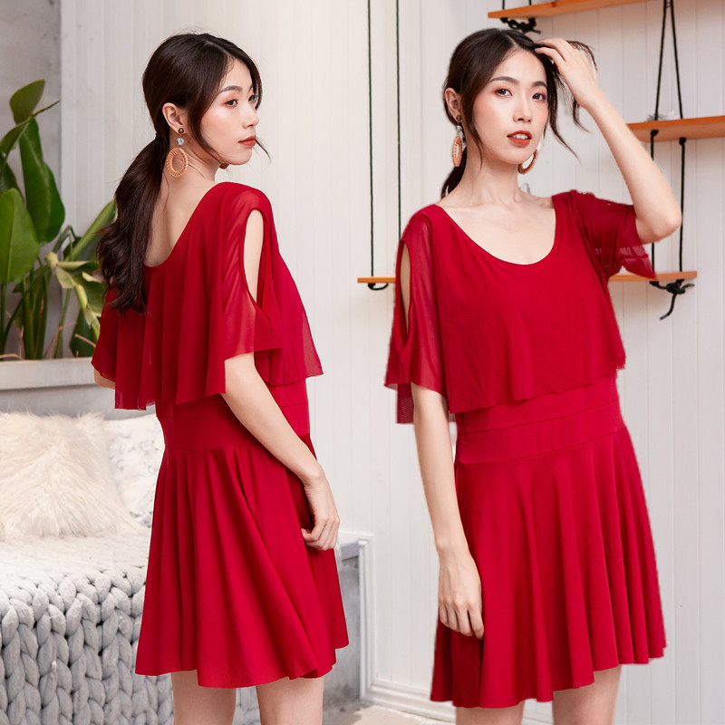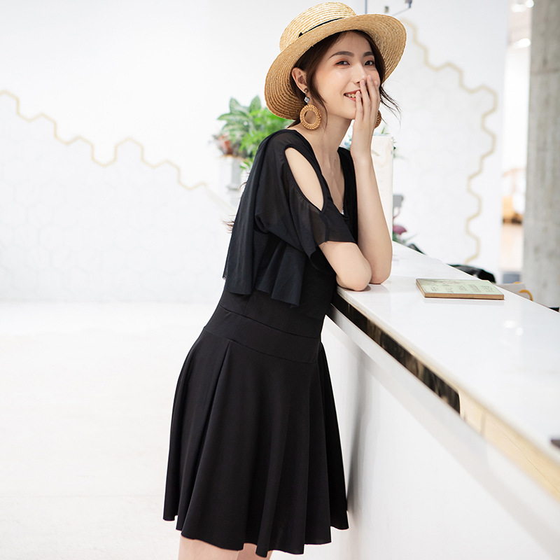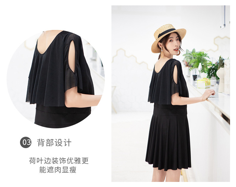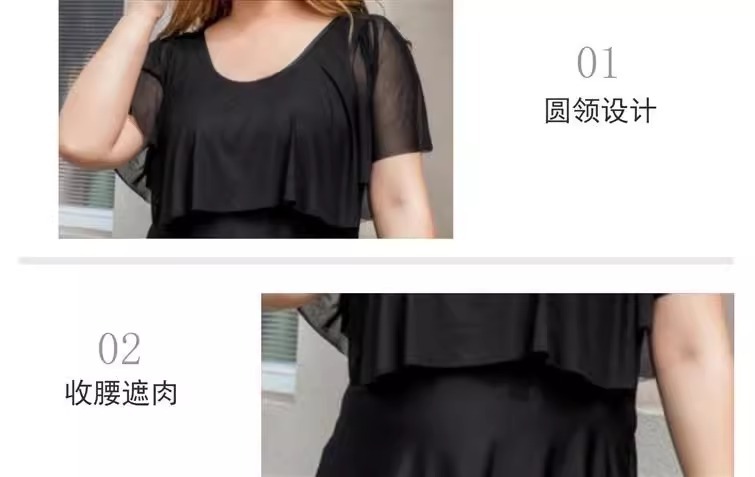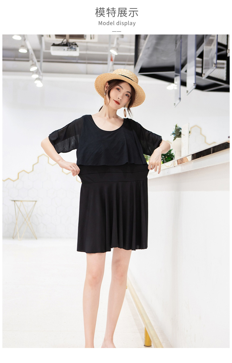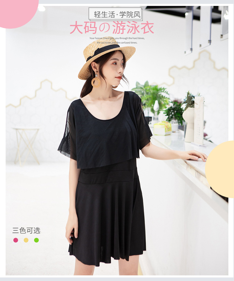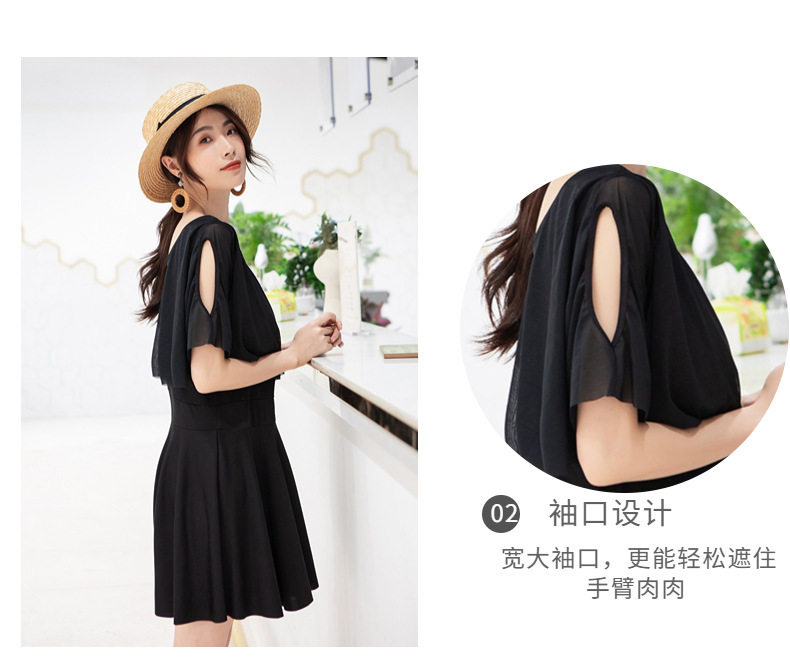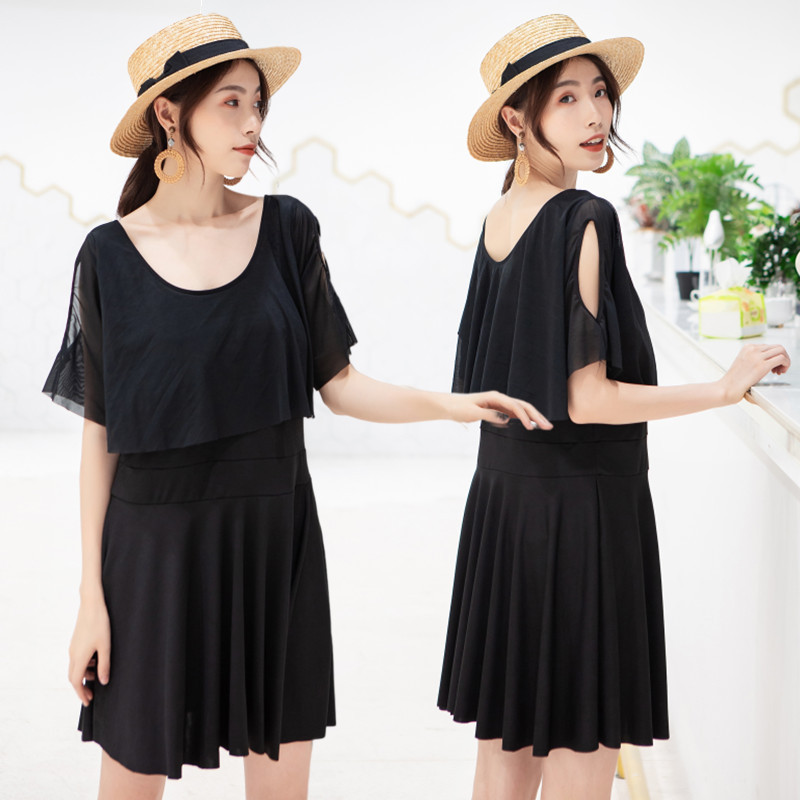 플러스 사이즈 수영복 여자의 통통녀 원피스 스커트 블랙 슬림 배꼽 취재 여자의 보수적 인 온천 휴가 수영복스토어 가기