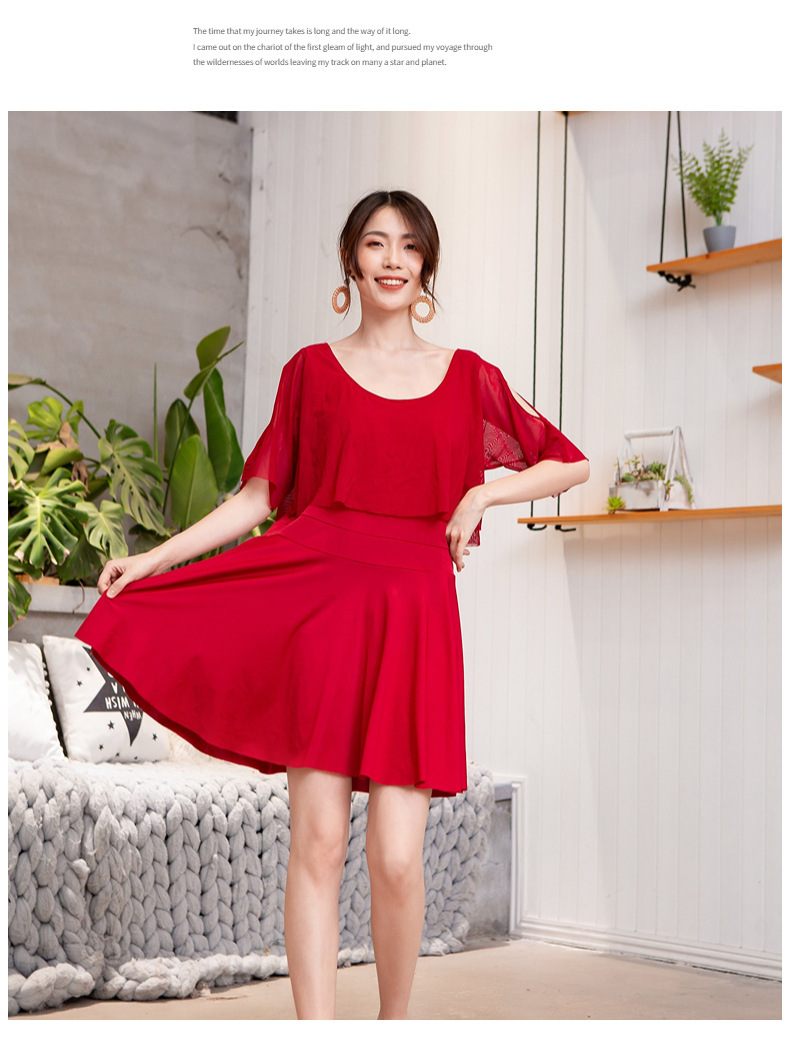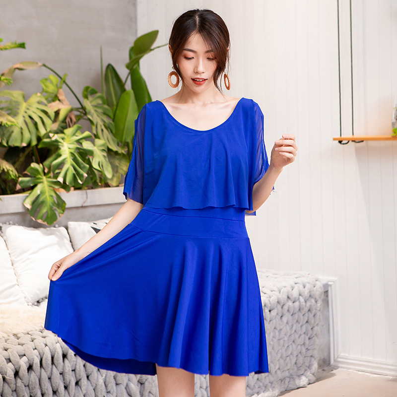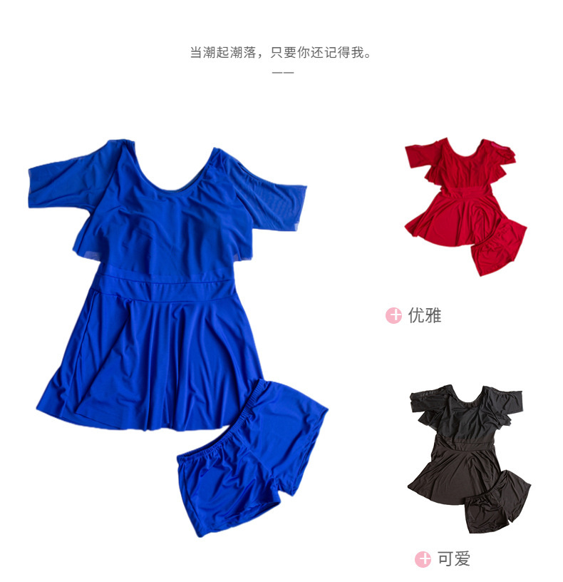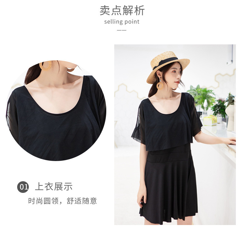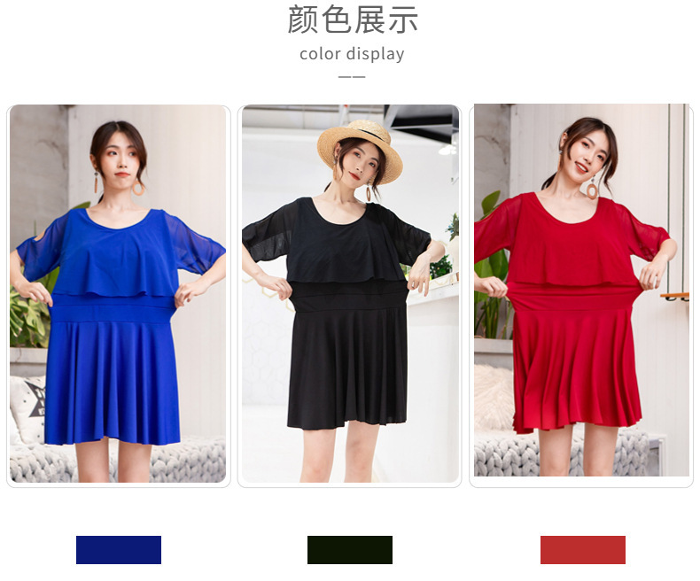 플러스 사이즈 수영복 여자의 통통녀 원피스 스커트 블랙 슬림 배꼽 취재 여자의 보수적 인 온천 휴가 수영복