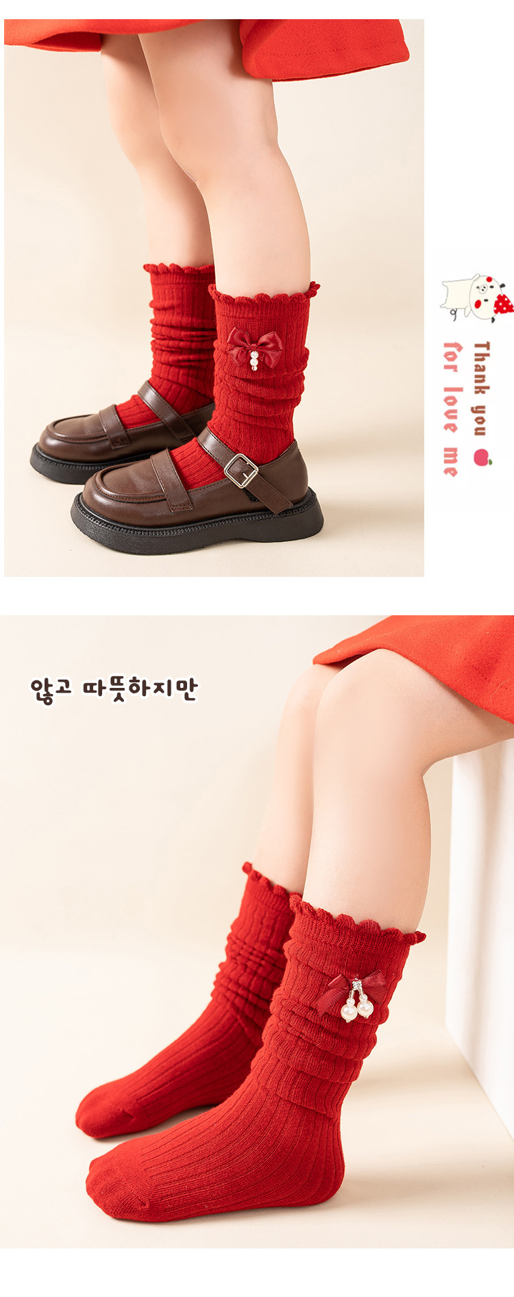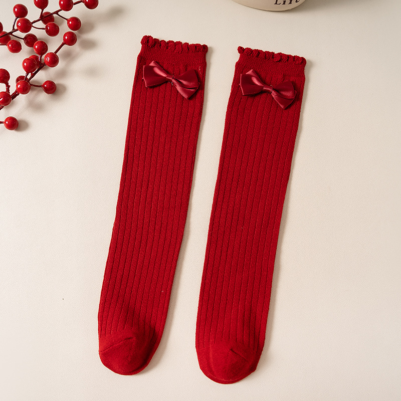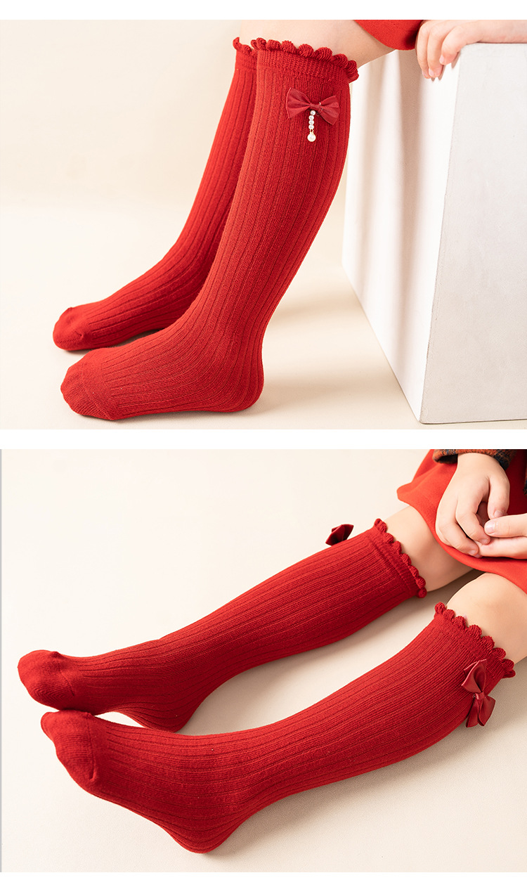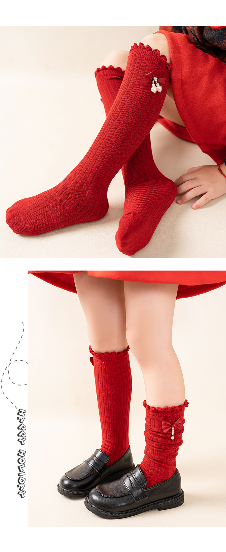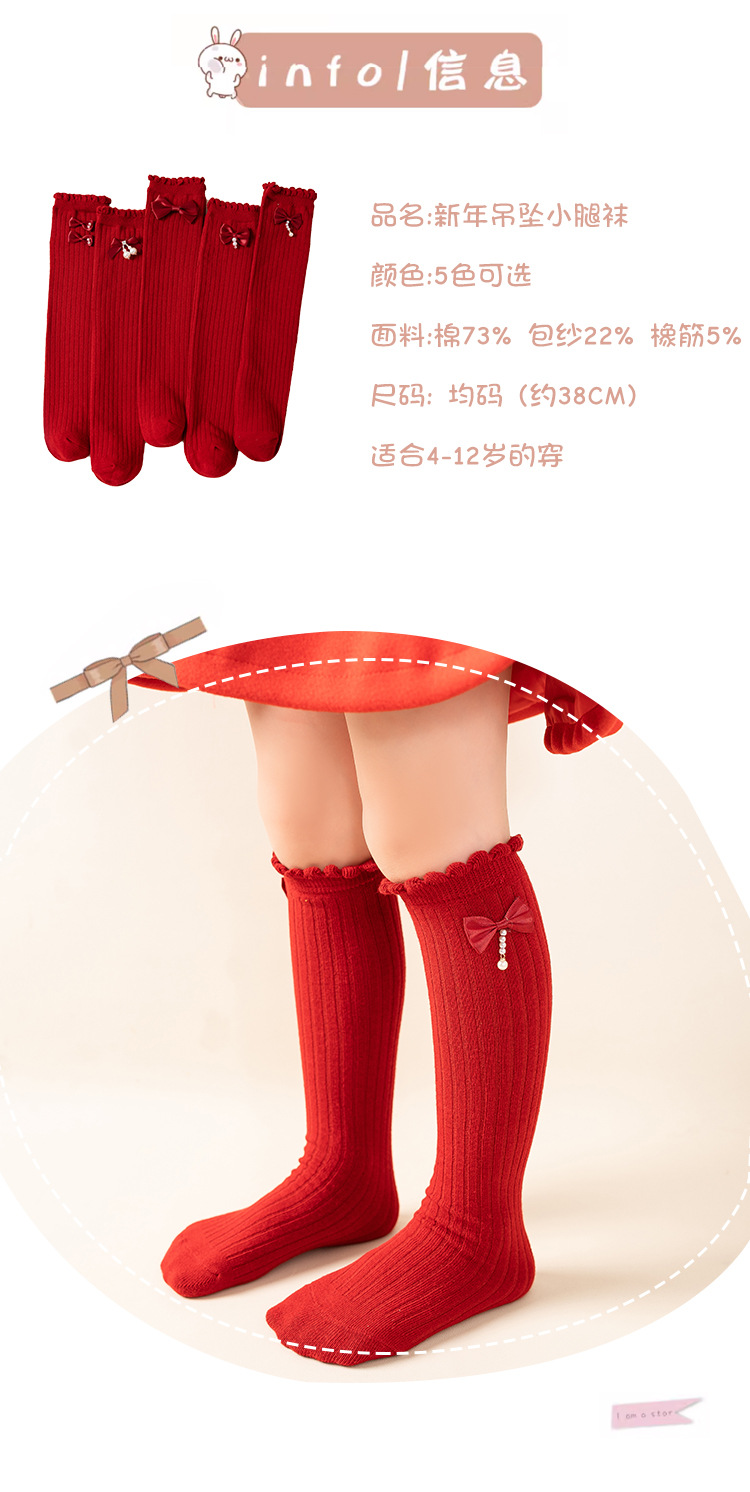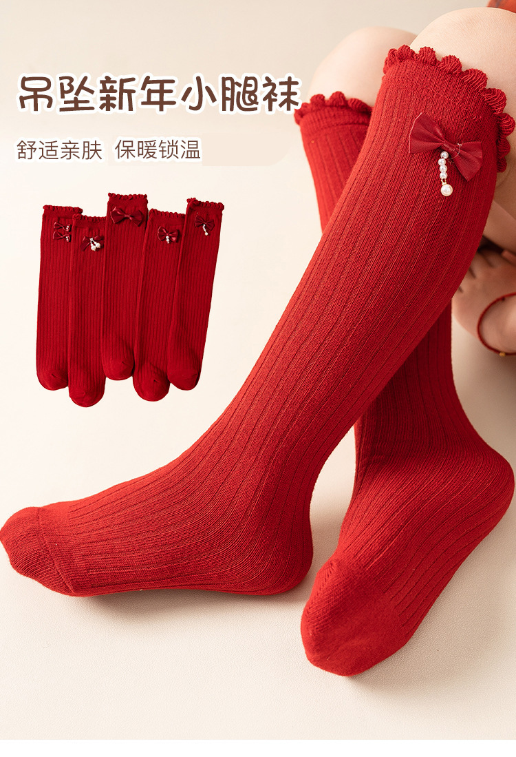 어린이 가을과 겨울 송아지 양말 소녀 큰 어린이 생활 년 새해 축제 빨간 양말 레이스 스타킹 도매스토어 가기