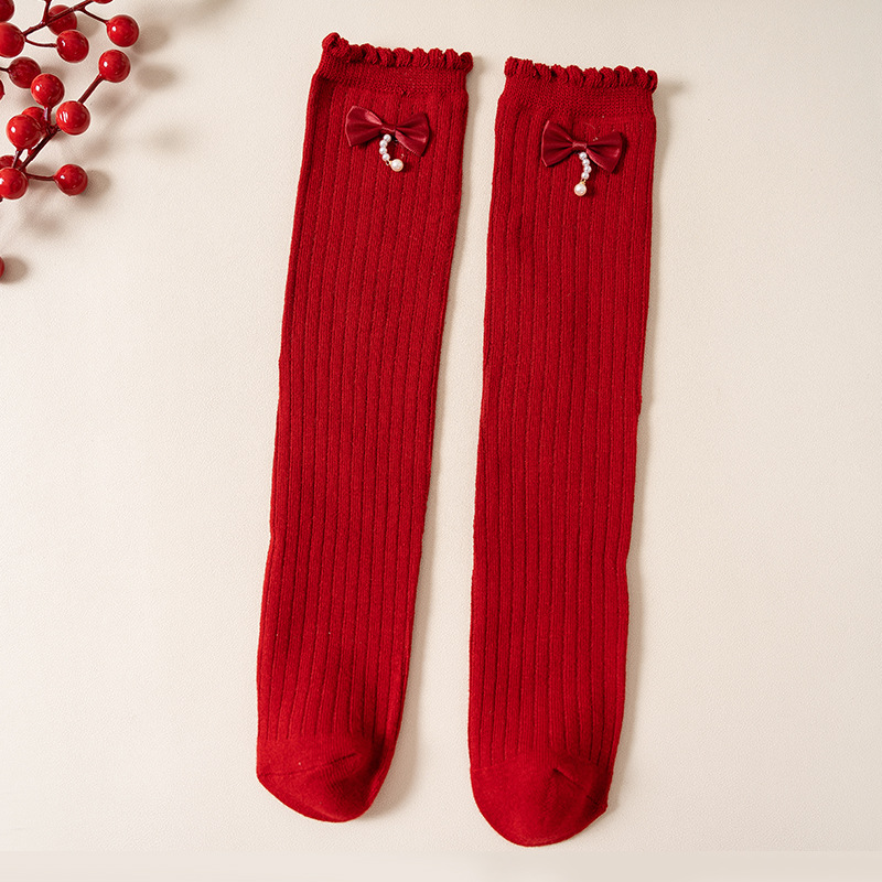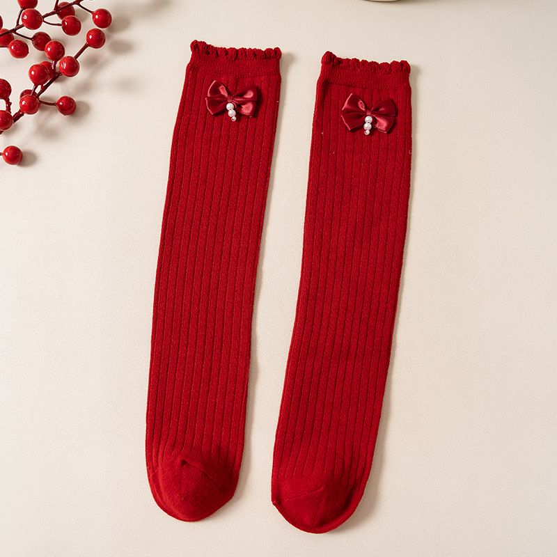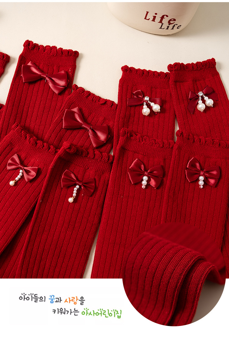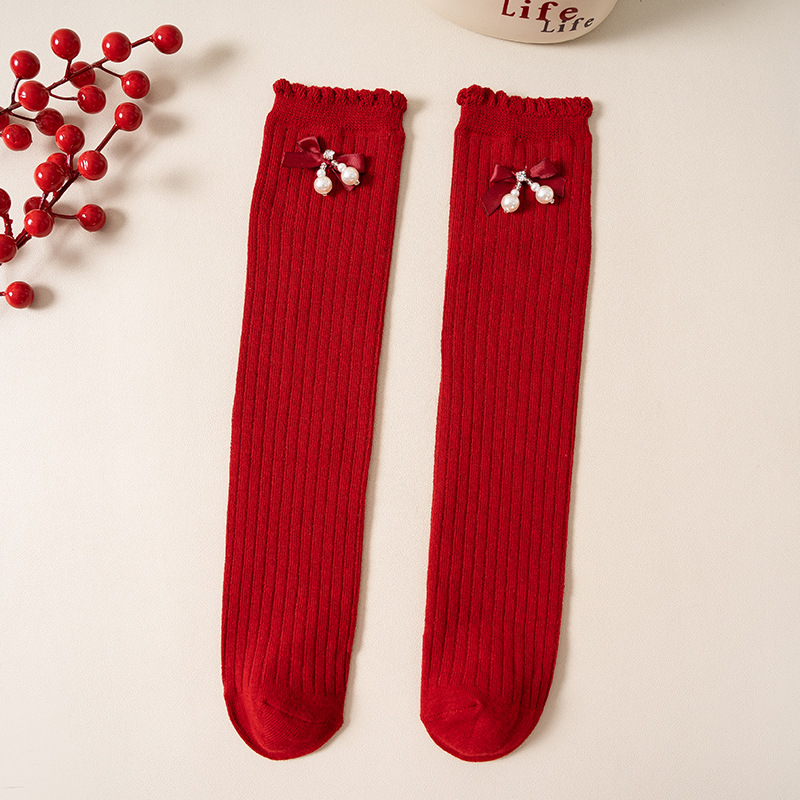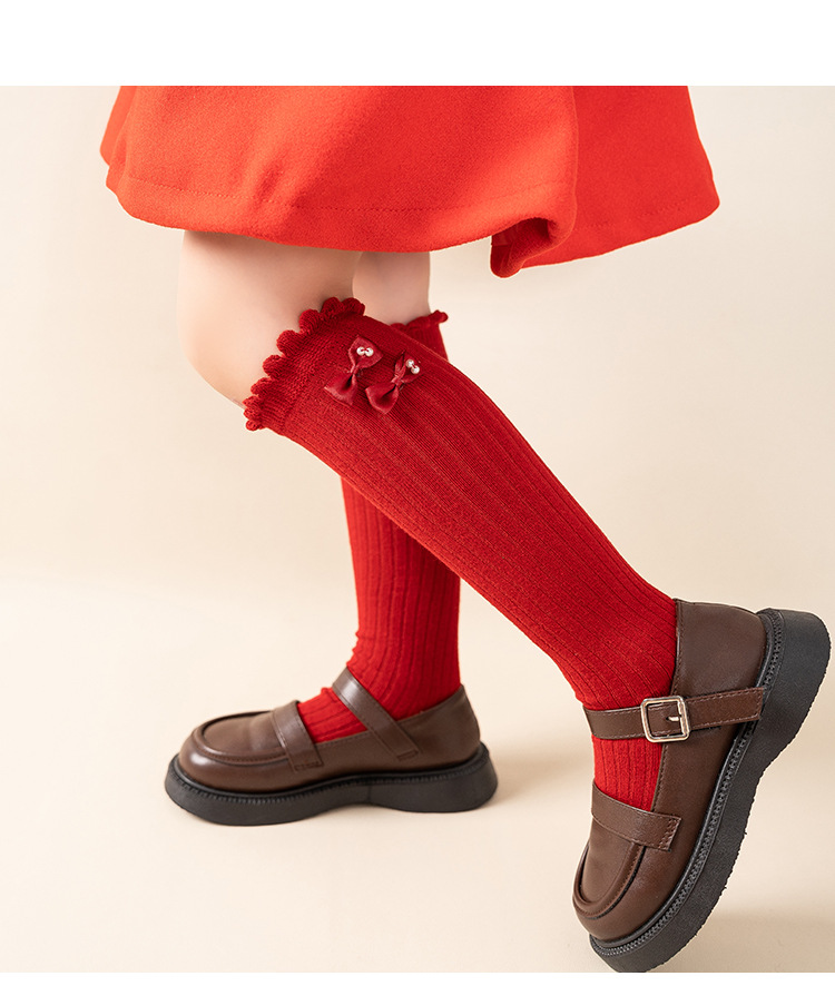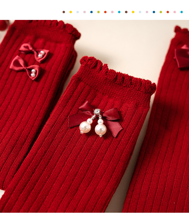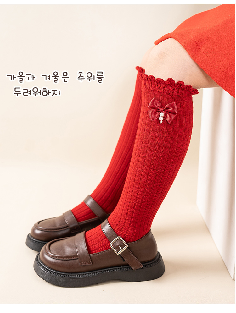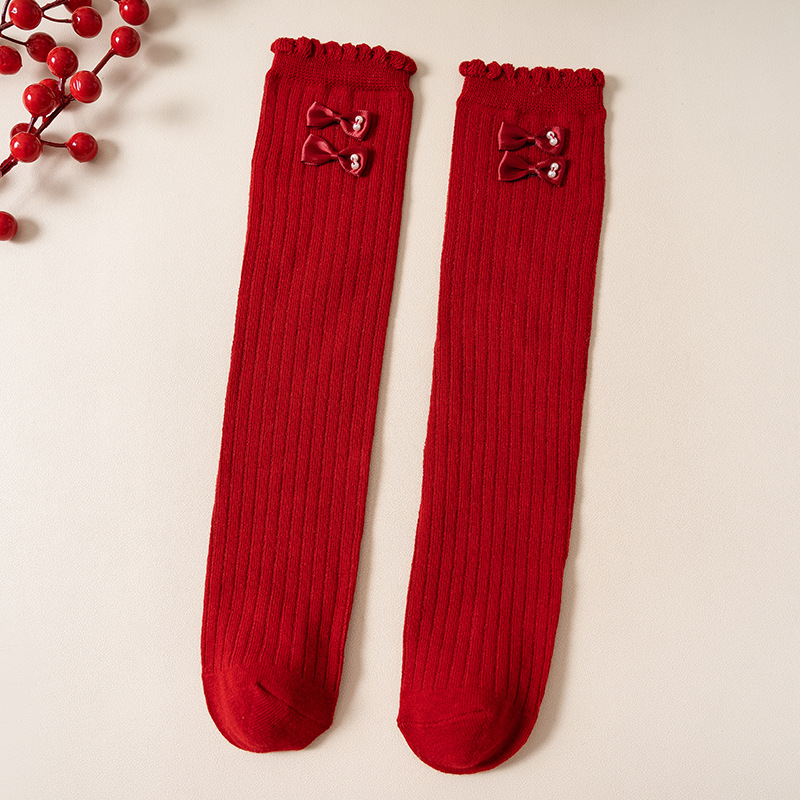 어린이 가을과 겨울 송아지 양말 소녀 큰 어린이 생활 년 새해 축제 빨간 양말 레이스 스타킹 도매스토어 가기