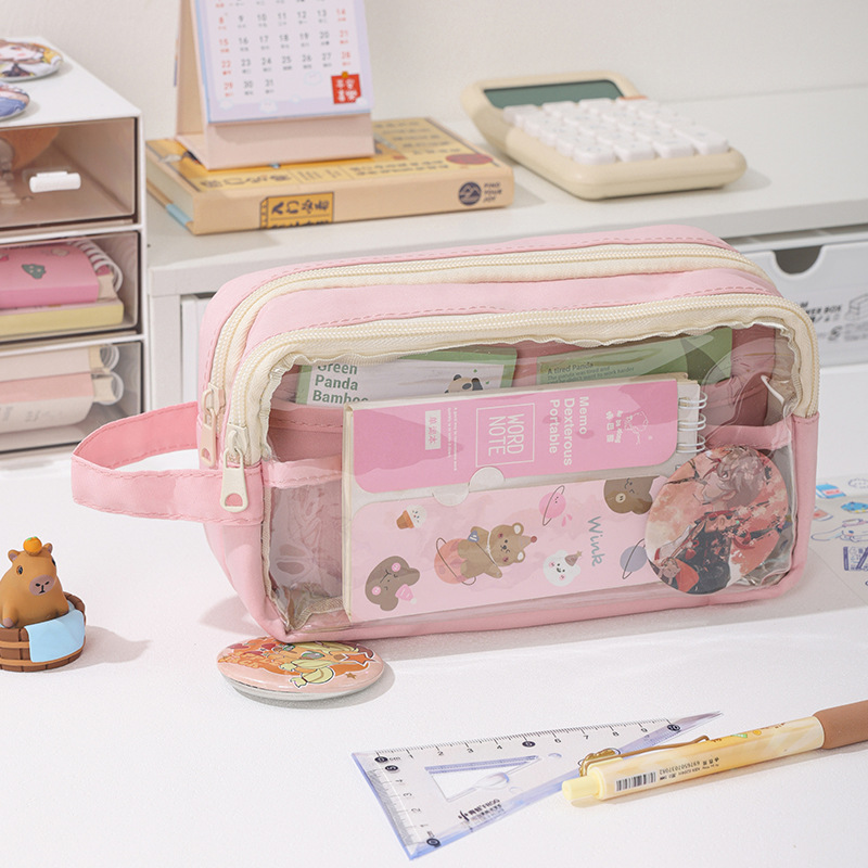 새로운 휴대용 투명 통통 연필 가방 다기능 문구 상자 중학생 대용량 연필 상자 간단한스토어 가기