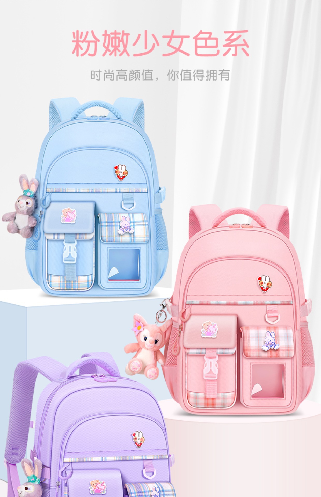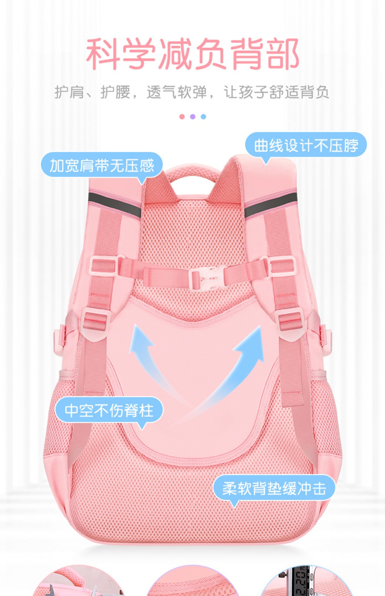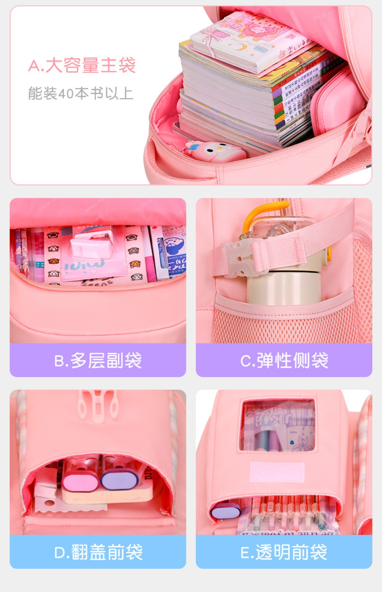 새로운 스타일의 여학생 초등학교 가방 1-9학년 방수 및 부담 감소 중학생 6-15세 대용량 가방