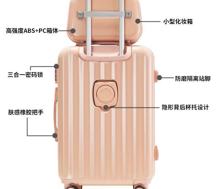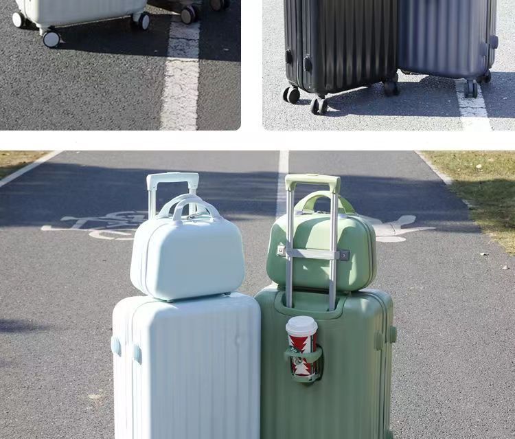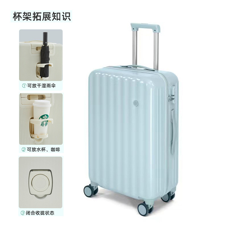 컵 홀더 여행 유물이있는 작은 신선한 수하물 유니버설 휠 학생 기숙사 트롤리 케이스 비밀번호 가방 도매스토어 가기