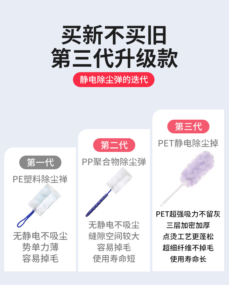 • 3 세대 양면 PET 먼지떨이 헤드 6 장
