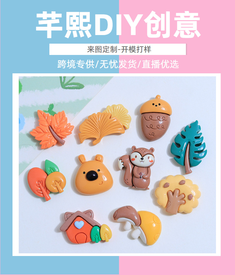 가을 다람쥐 집 아이들의 재미 DIY 크림 접착제 휴대 전화 케이스 머리 장식 머리핀 보석 수지 액세서리 도매스토어 가기