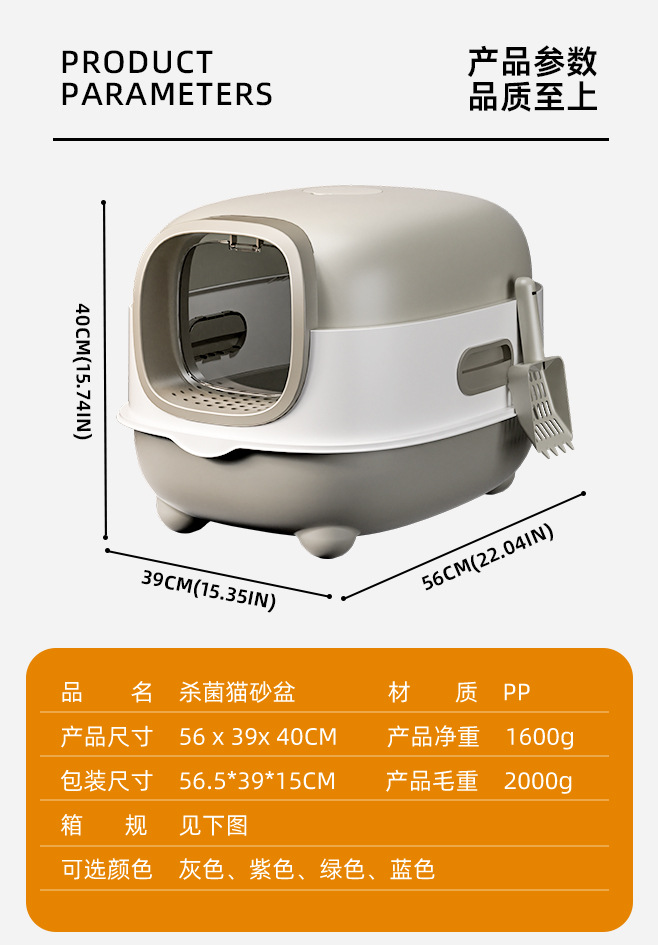 국경 간 고양이 쓰레기 상자 초대형 완전 밀폐형 비말 방지 고양이 화장실 살균 및 탈취 고양이 쓰레기 상자 고양이 용품 도매