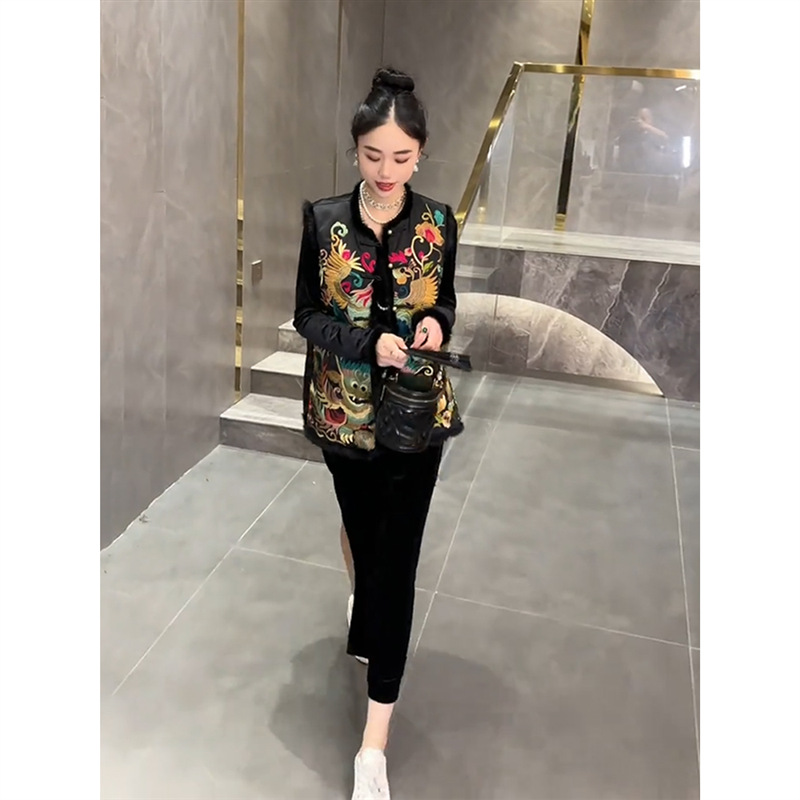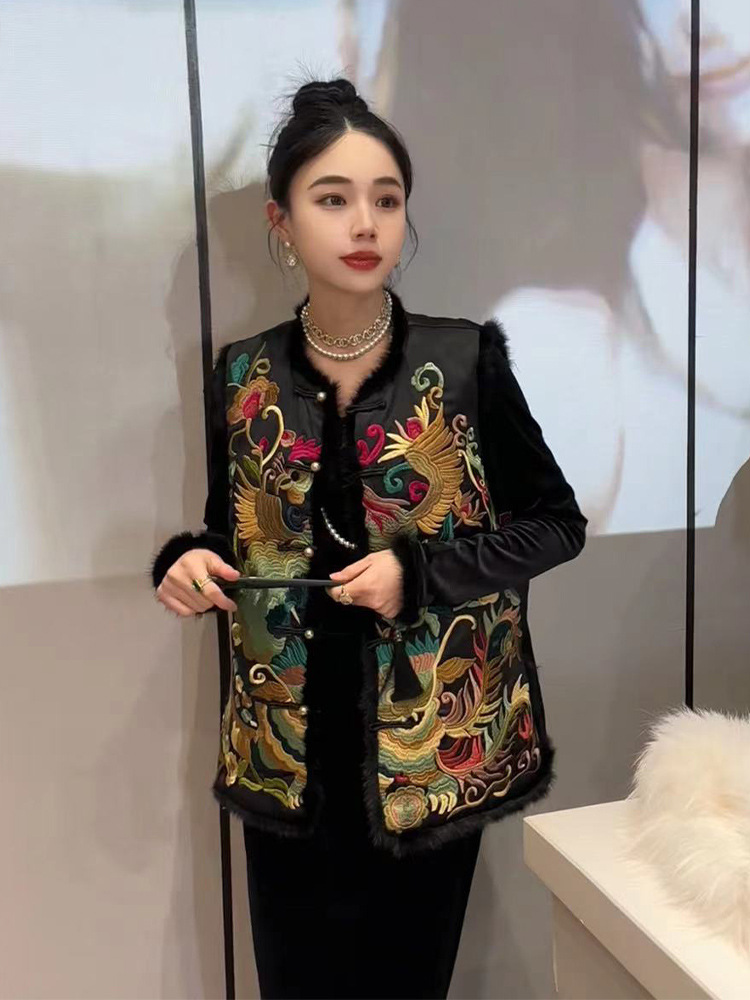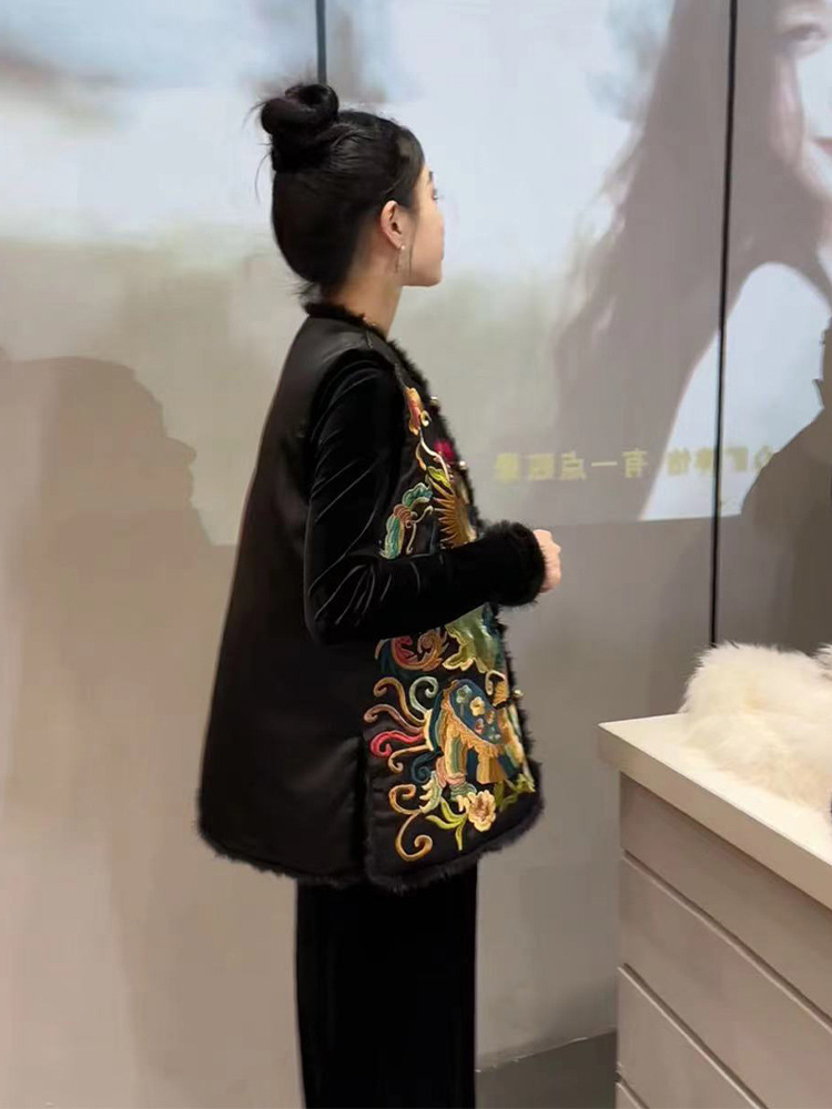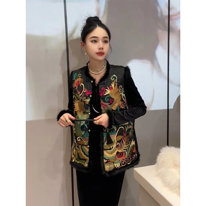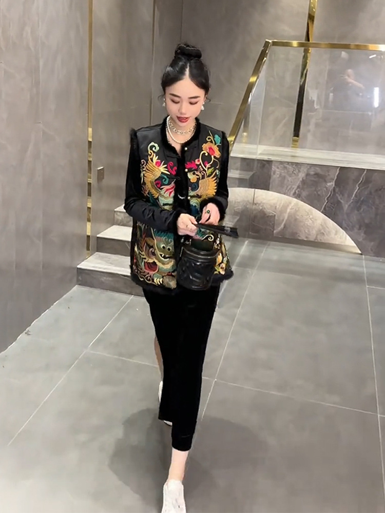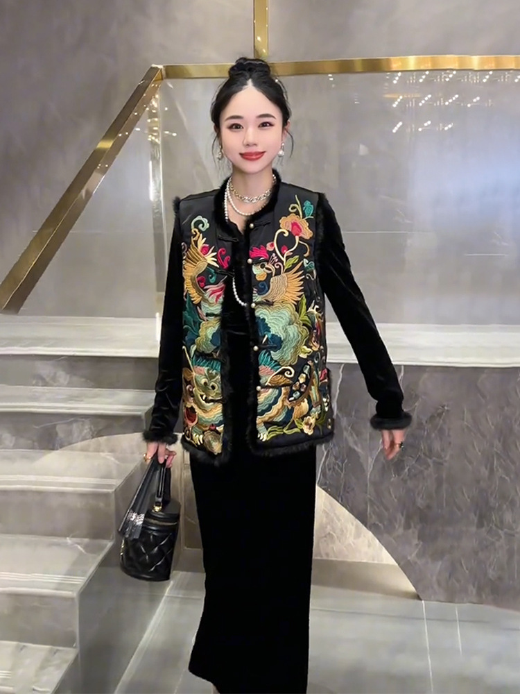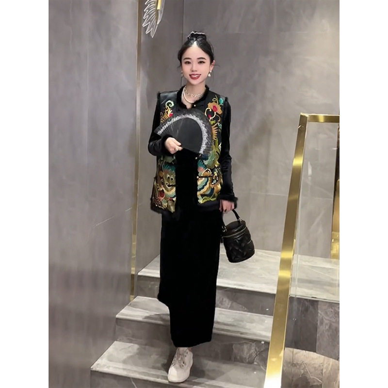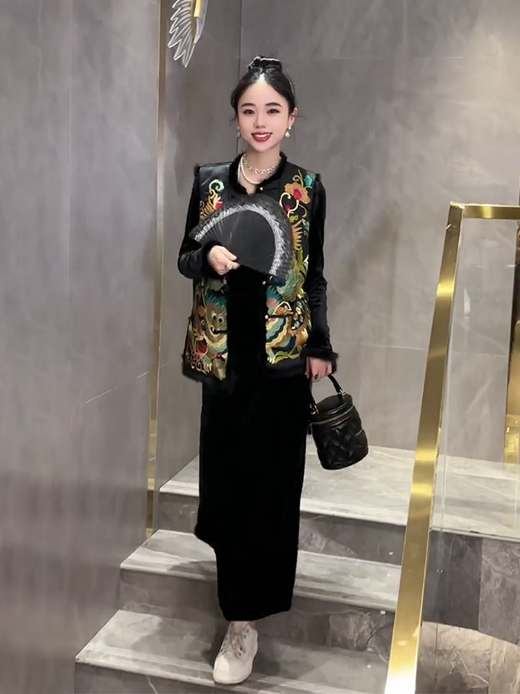 YT248571 새로운 중국 스타일 내셔널 스타일 자수 버클 조끼 탑 하이 엔드 골든 벨벳 원피스 세트스토어 가기