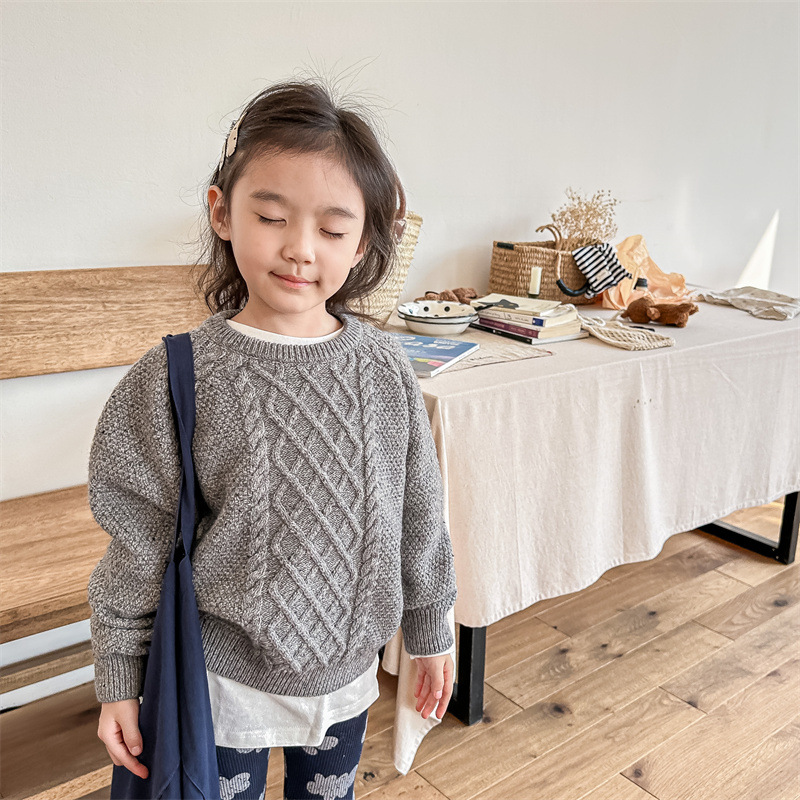 2025 아동 의류 가을, 겨울 의류 아동 겨울 한국 스타일 스웨터 탑 스웨터 소년 소녀 스웨터 123678스토어 가기