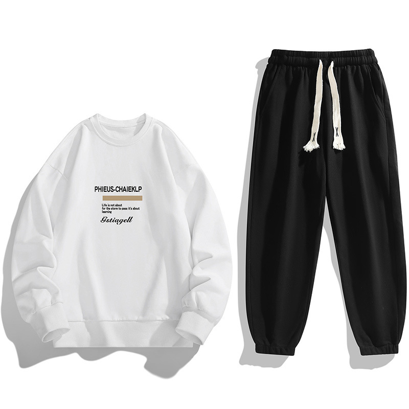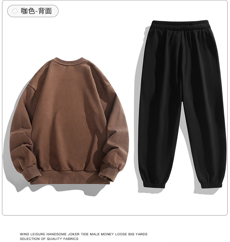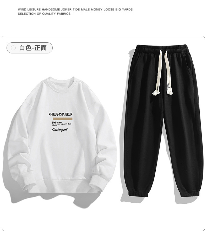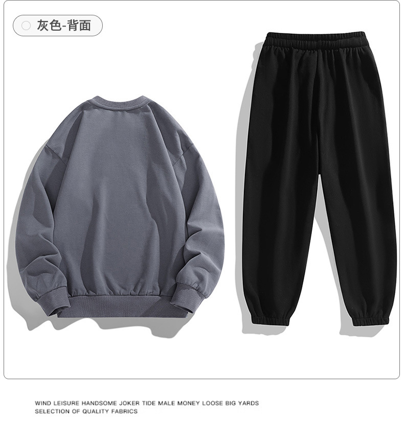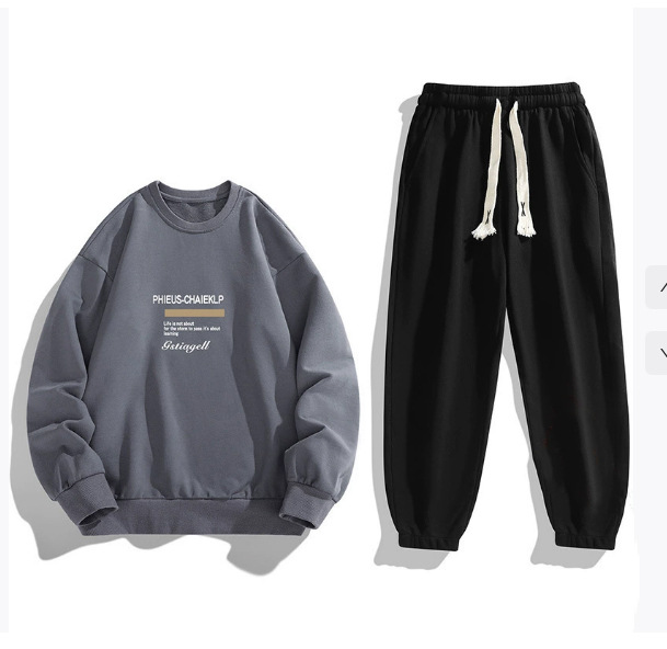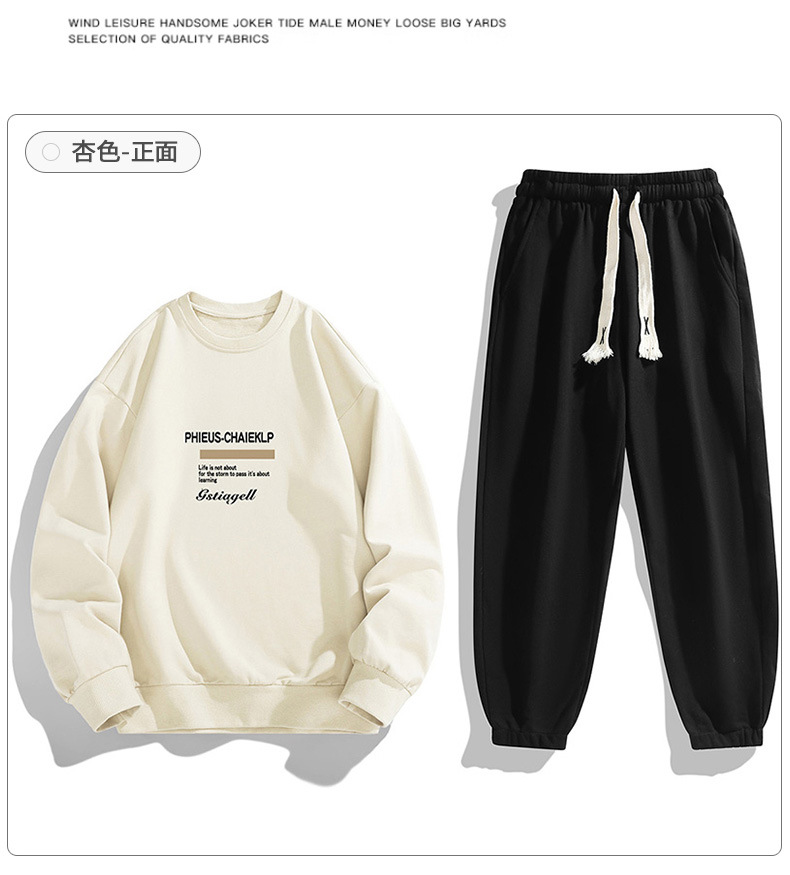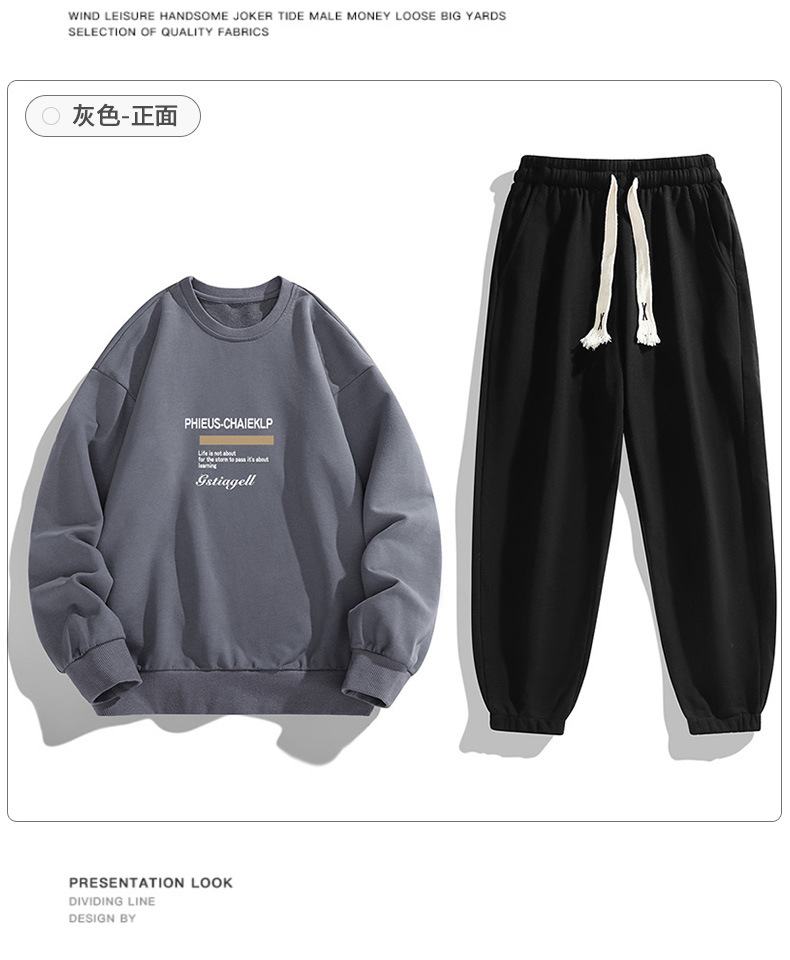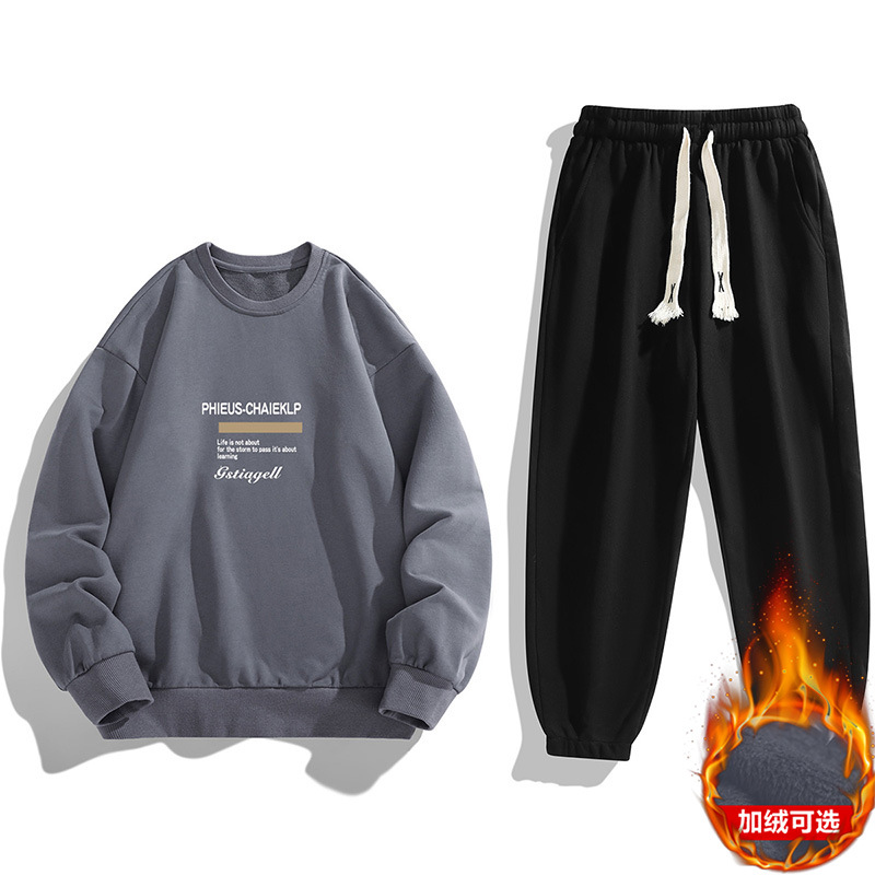 봄과 가을 캐주얼 스포츠 세트 남자의 기모 라운드 넥 스웨터 긴 소매 발목 바지 한국 패션 학생스토어 가기