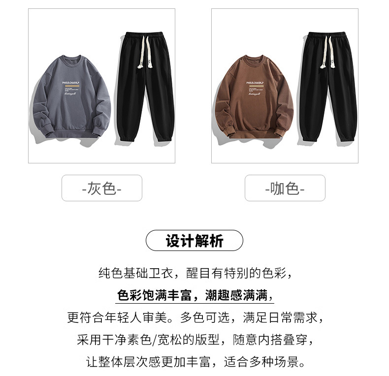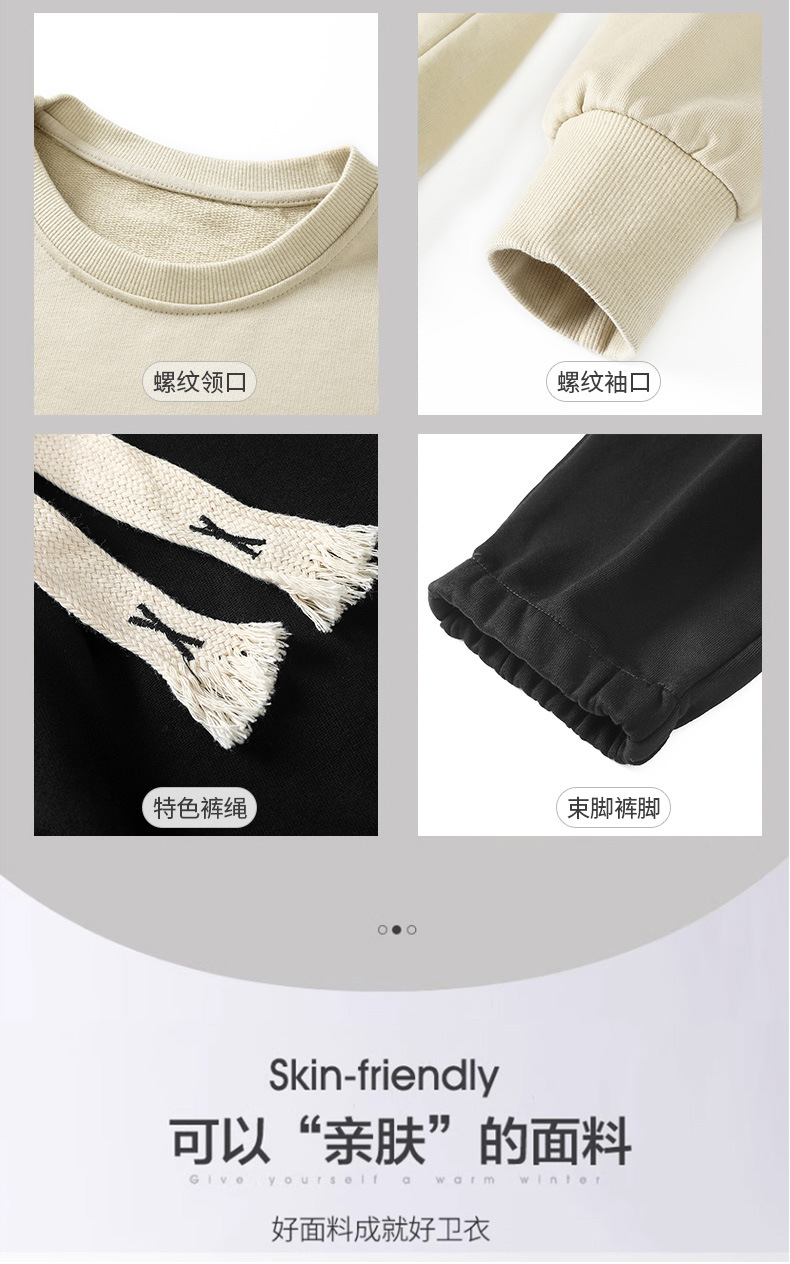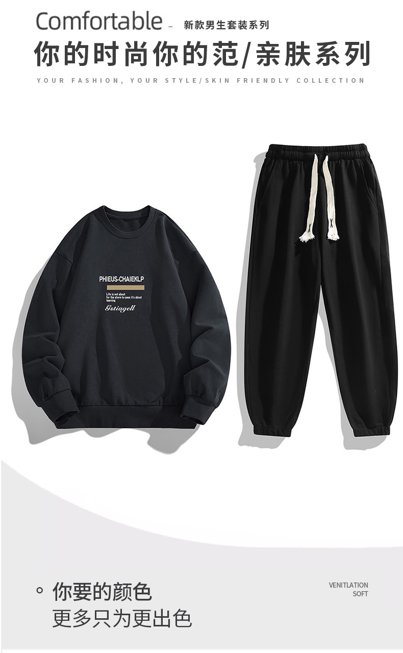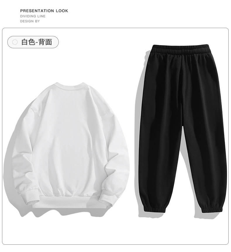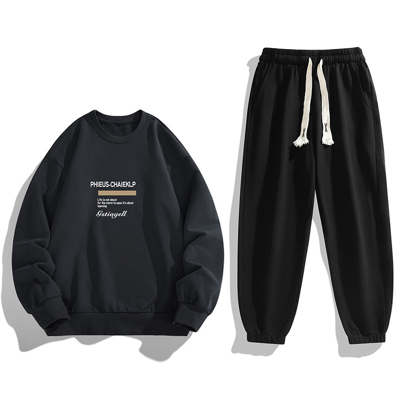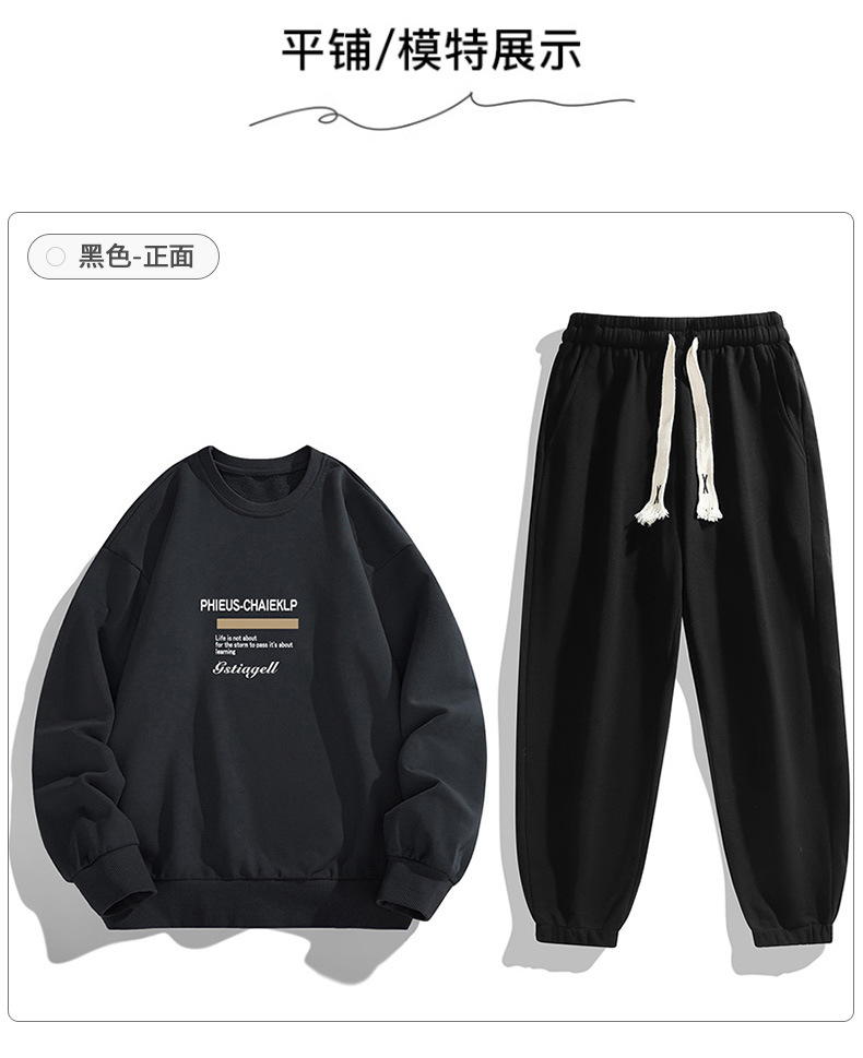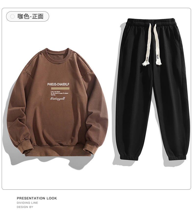 봄과 가을 캐주얼 스포츠 세트 남자의 기모 라운드 넥 스웨터 긴 소매 발목 바지 한국 패션 학생스토어 가기