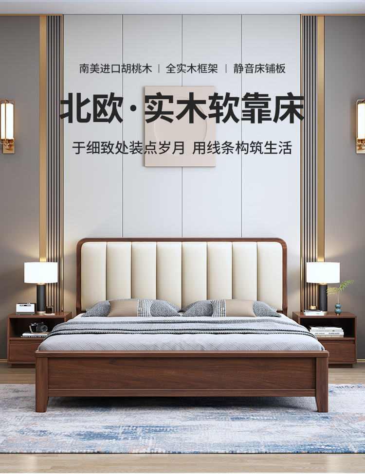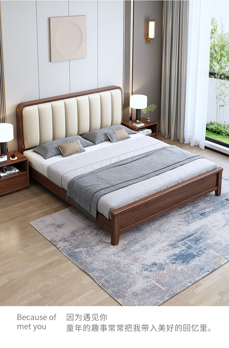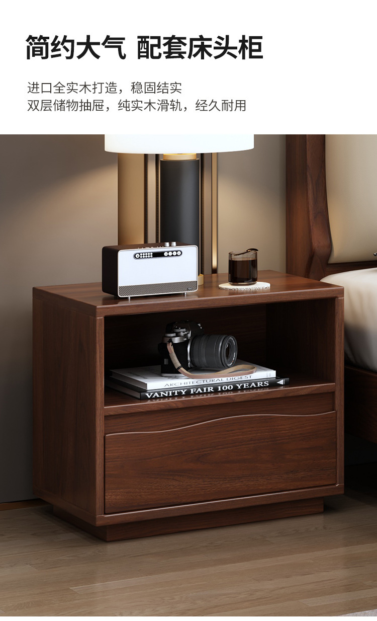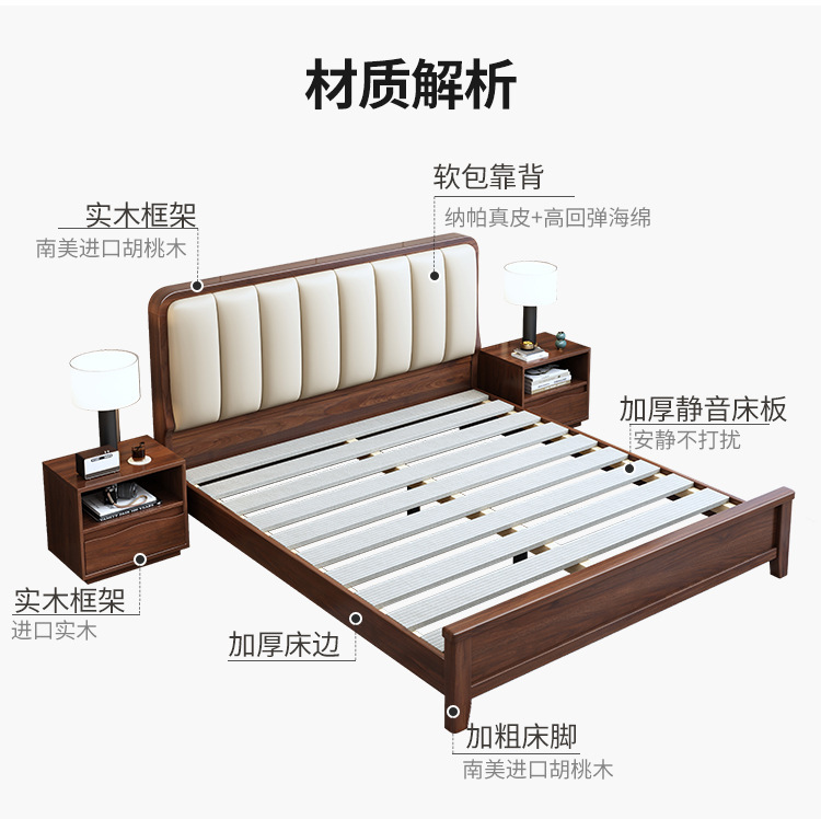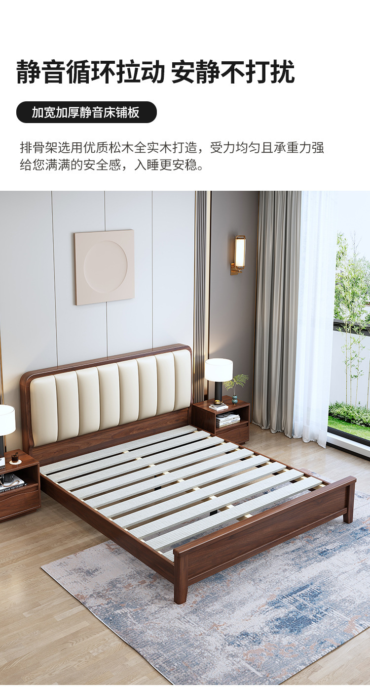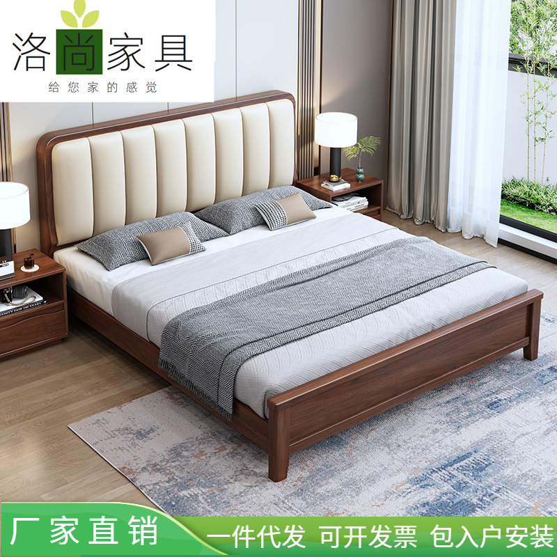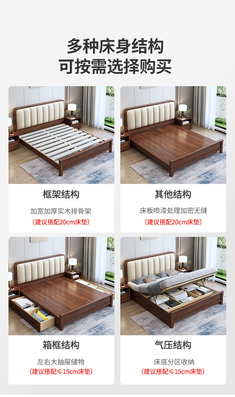 새로운 중국 스타일 블랙 월넛 1.5 m 단단한 나무 침대 모던 심플 1.8 m 더블 소프트 공기압 서랍 보관 침대스토어 가기