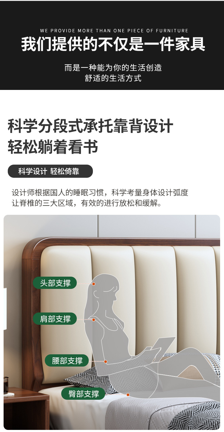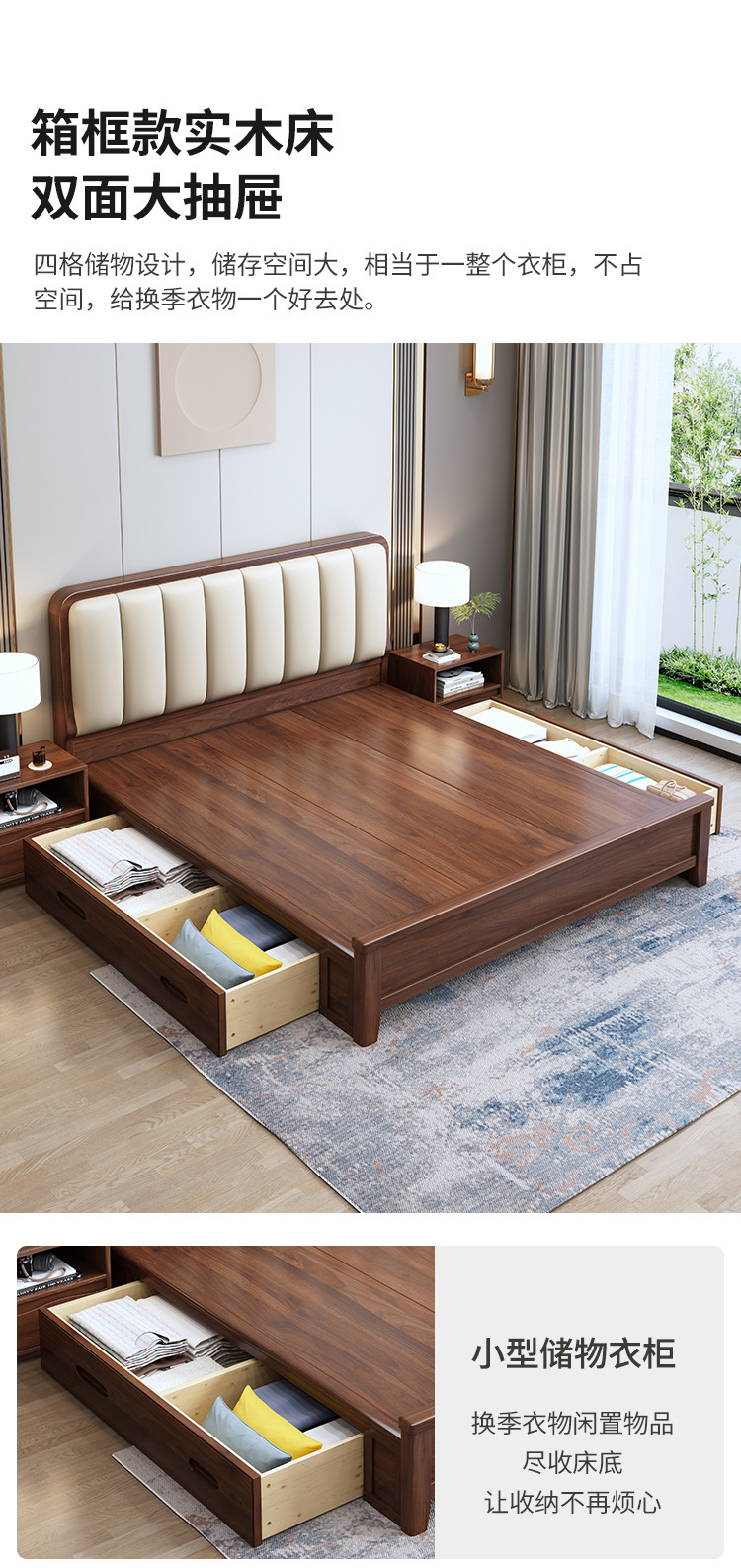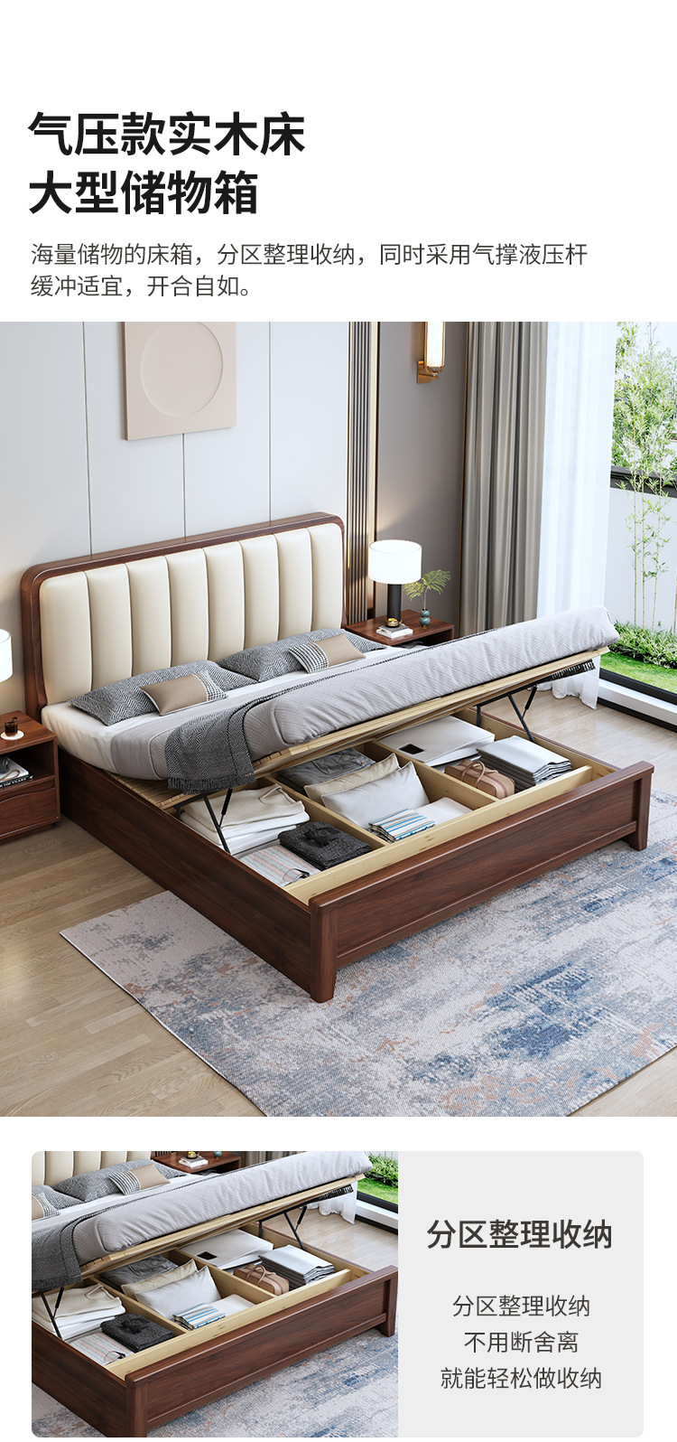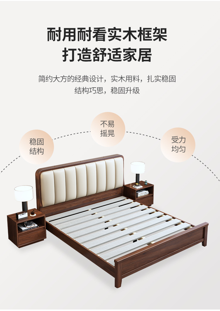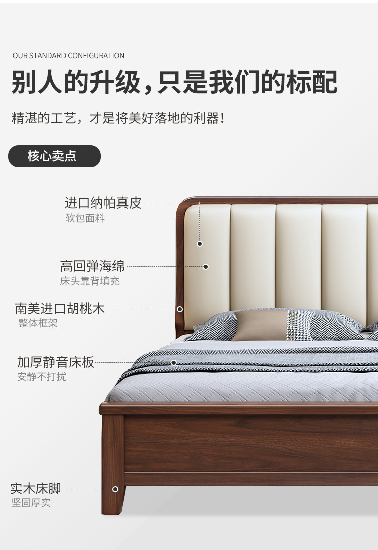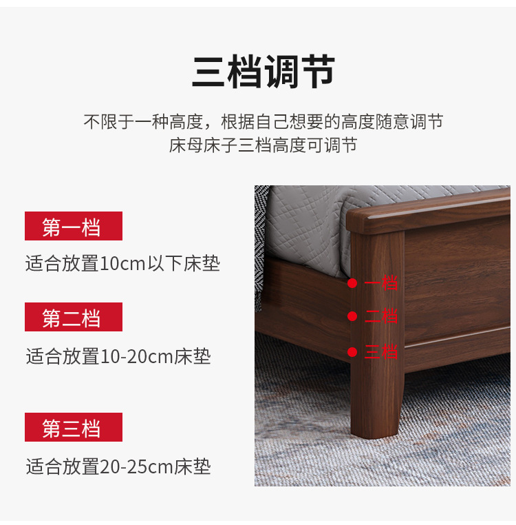 새로운 중국 스타일 블랙 월넛 1.5 m 단단한 나무 침대 모던 심플 1.8 m 더블 소프트 공기압 서랍 보관 침대스토어 가기