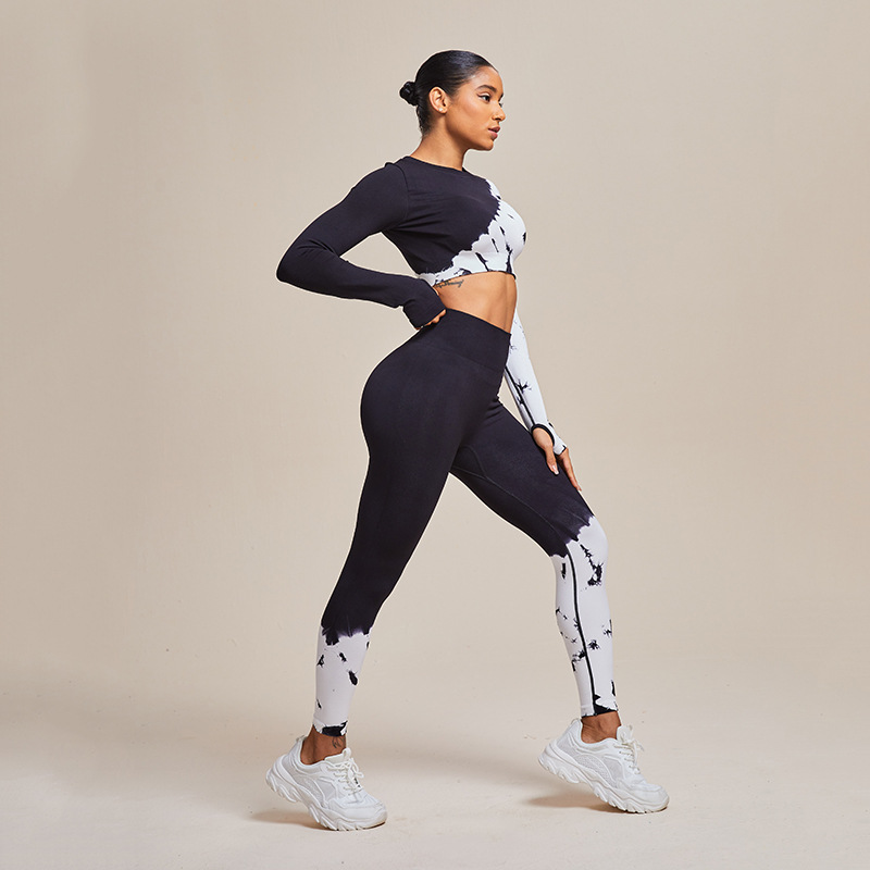 새로운 크로스 보더 원활한 흑백 고탄성 스포츠 브라 속옷 요가 세트 세트 실행 피트니스 2 종 세트