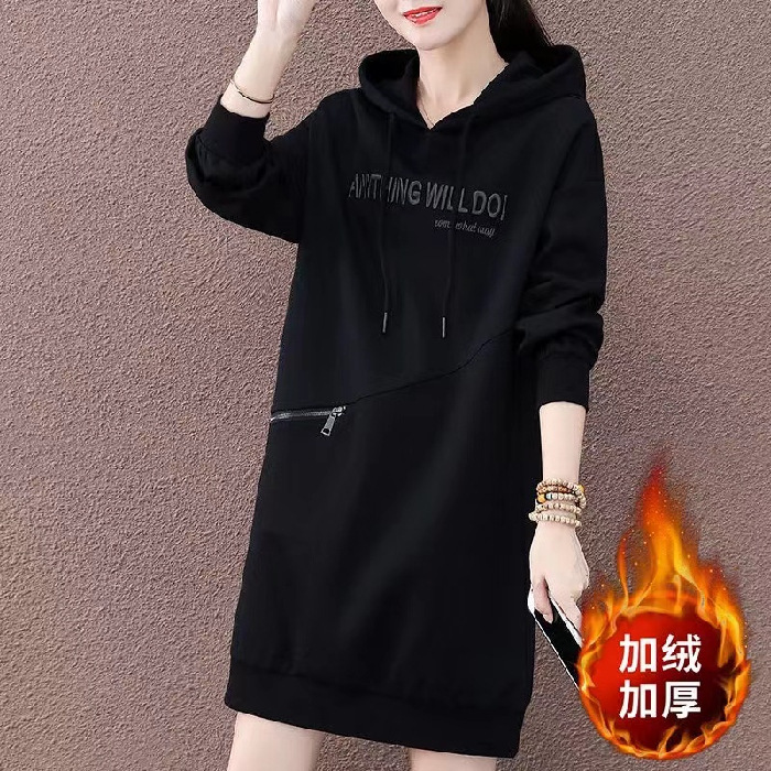 가을과 겨울 의류 기모 두꺼운 플러스 사이즈 200kg 롱 스웨터 스커트 여성 통통녀 한국 풀오버 느슨한 코트 여성스토어 가기
