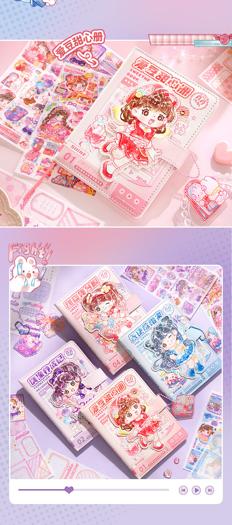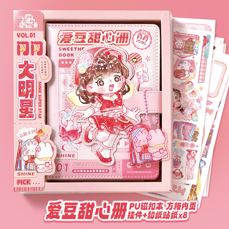 샤이니 매거진 시리즈 마그네틱 버클 통장 고가의 귀여운 만화 소녀 학생 휴대용 필기 카드 메모장스토어 가기