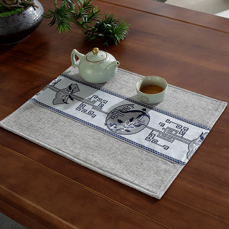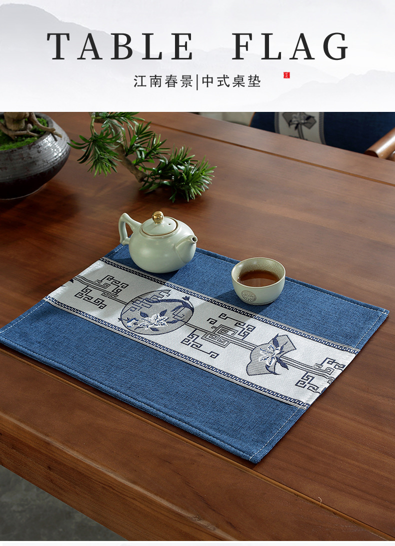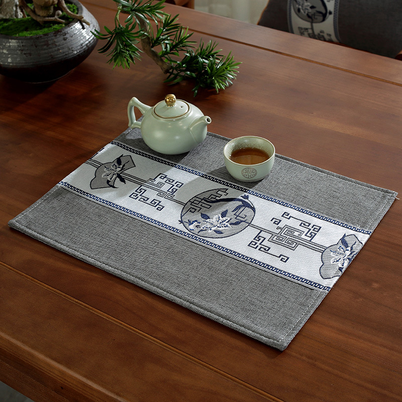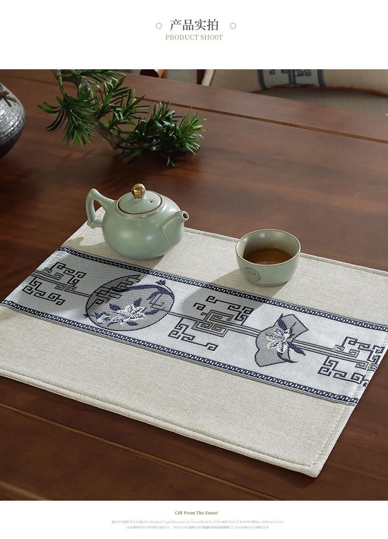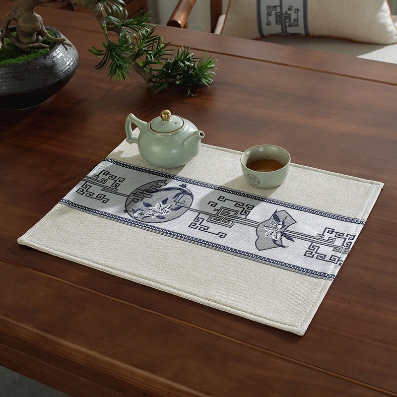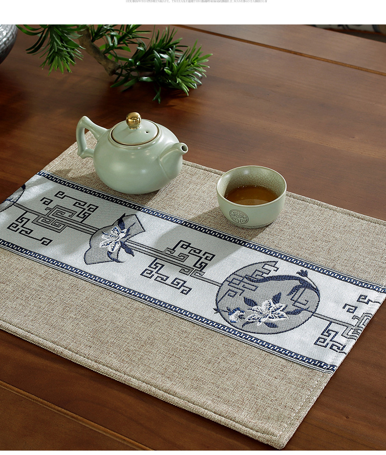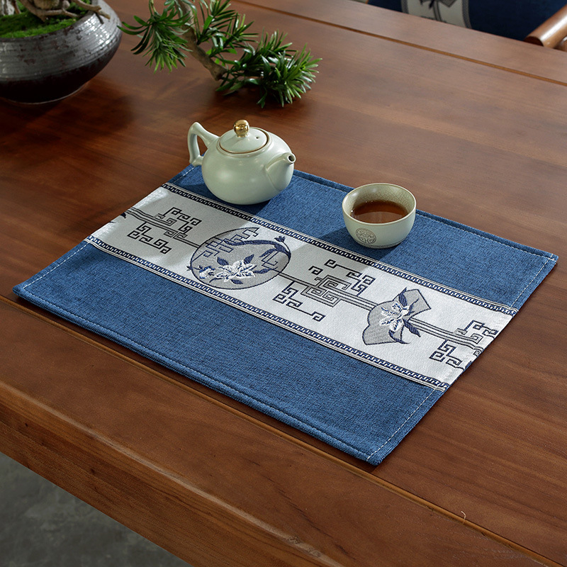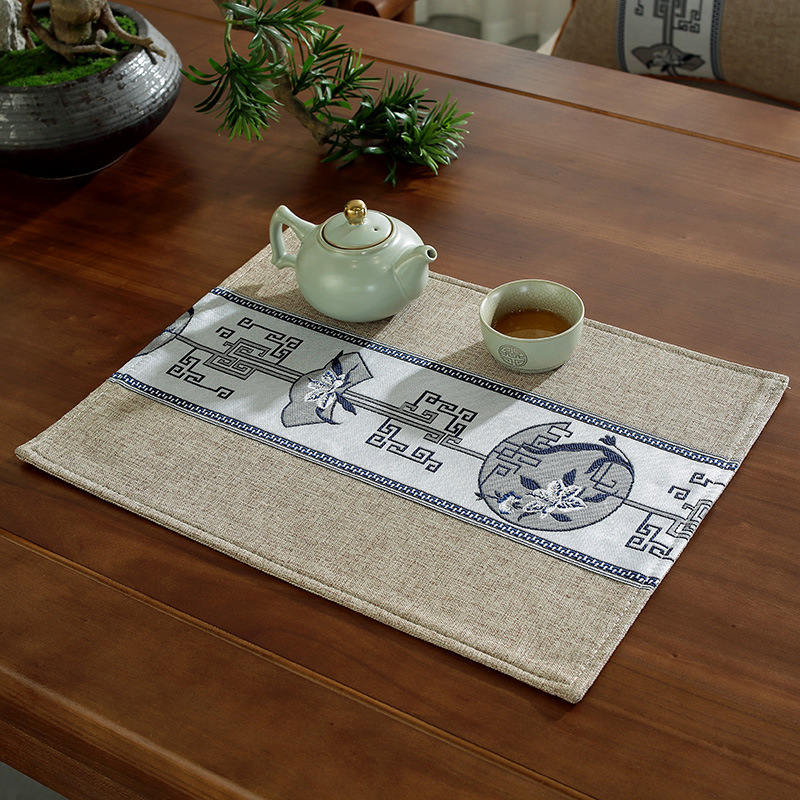 새로운 중국 스타일 면 린넨 패브릭 식탁 단열 매트 방수 안티 데임 더블 레이어 두꺼운 티 테이블 쿠션 커피 테이블 장식 플레이스매트