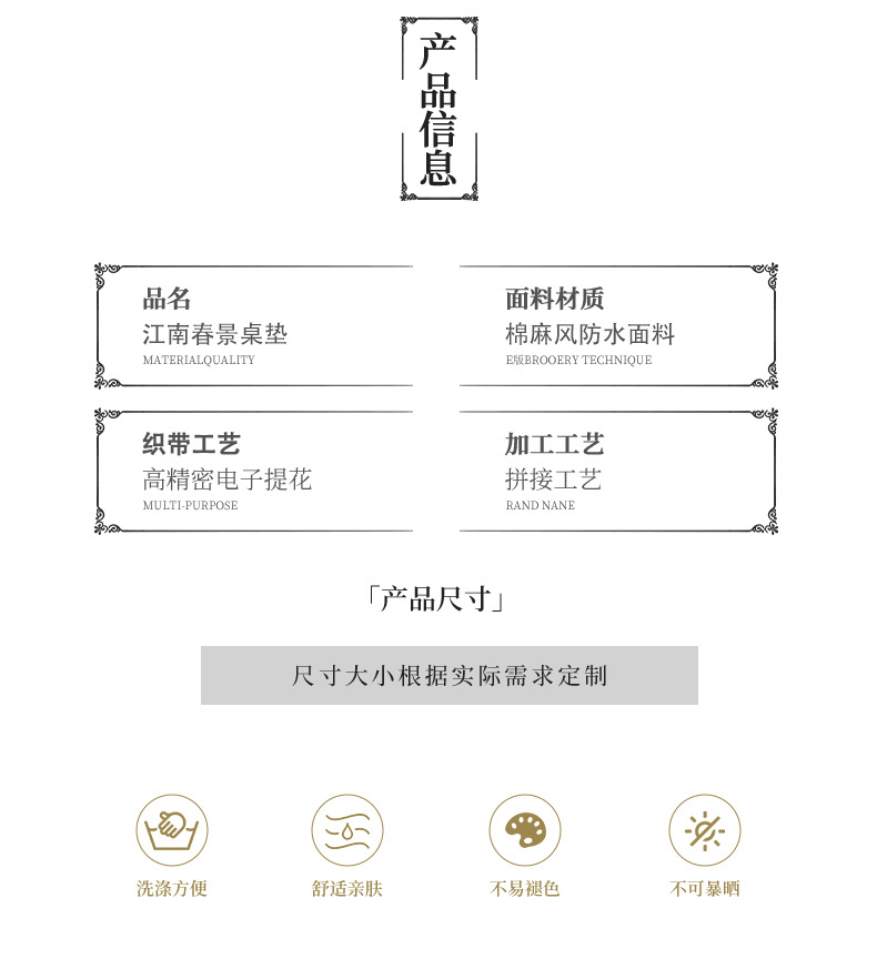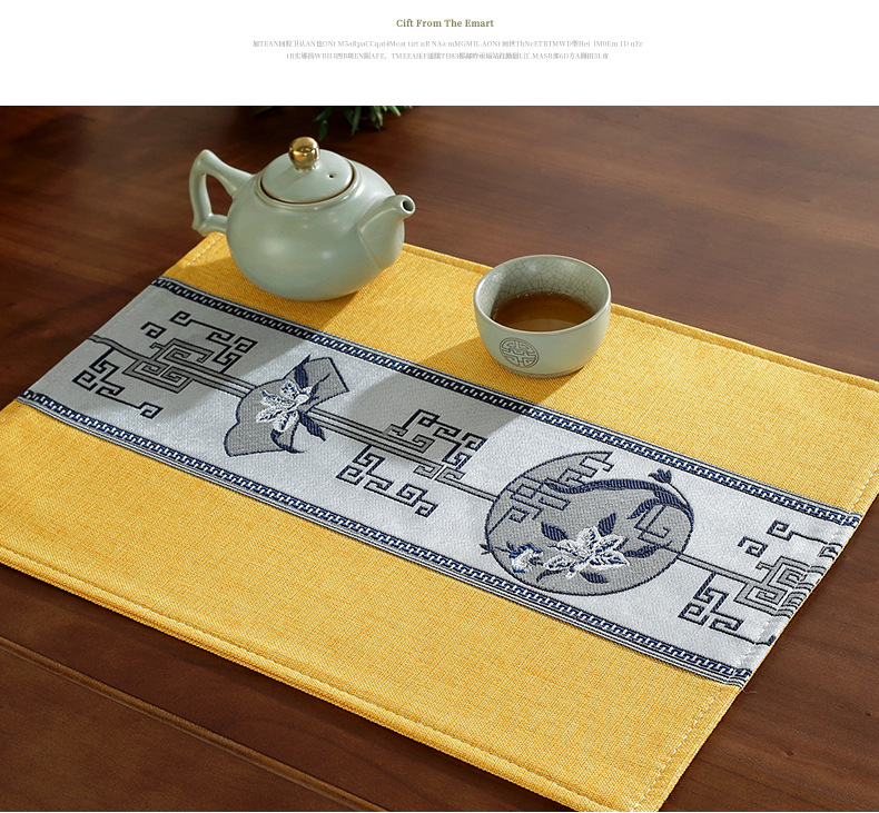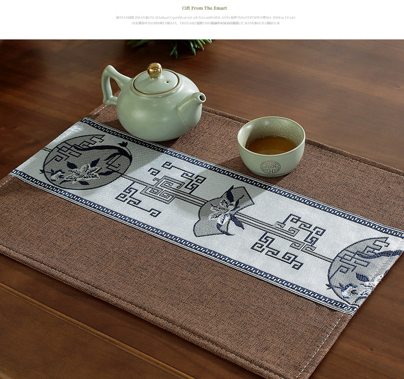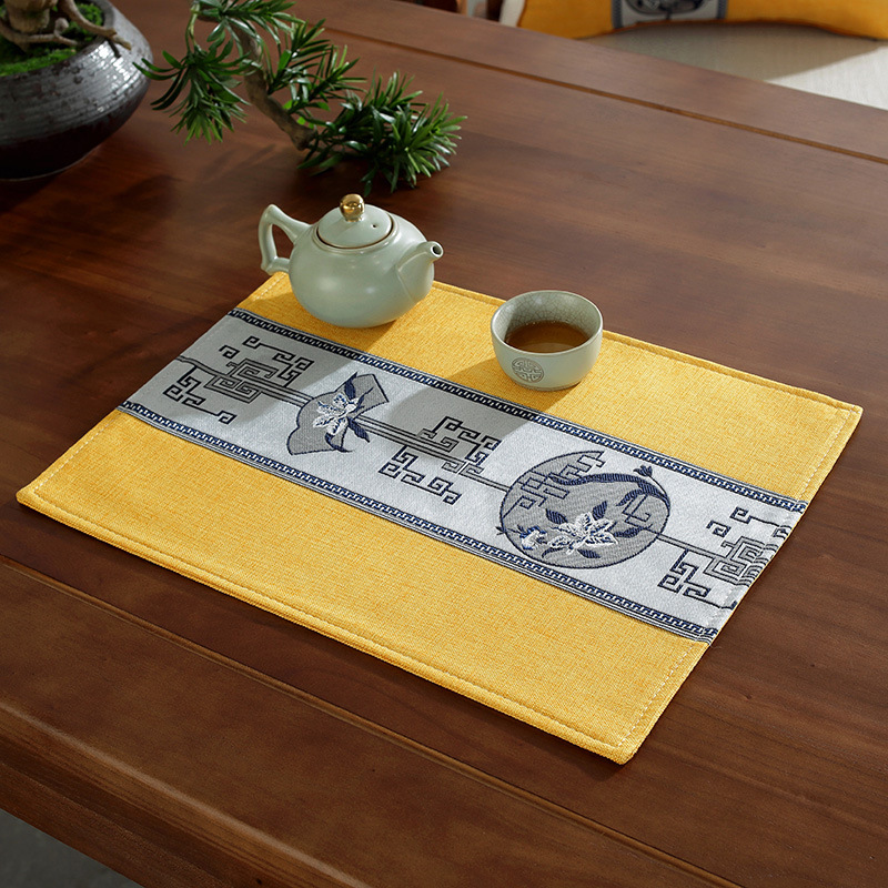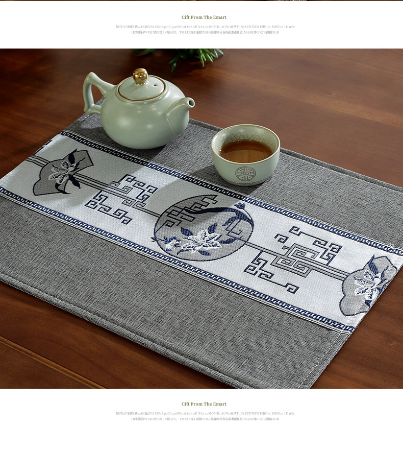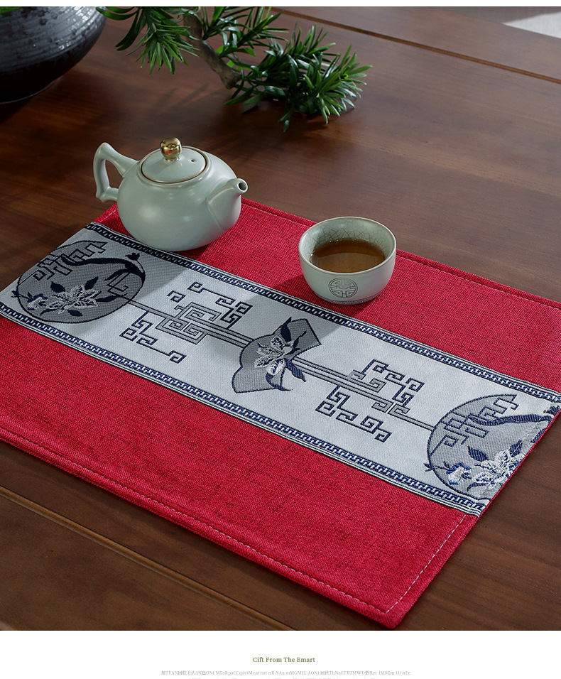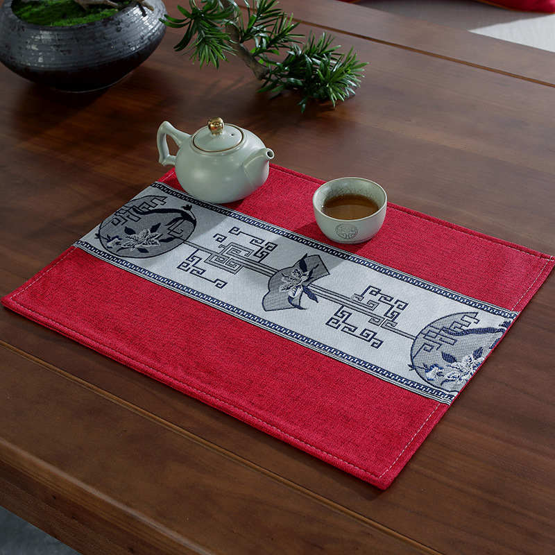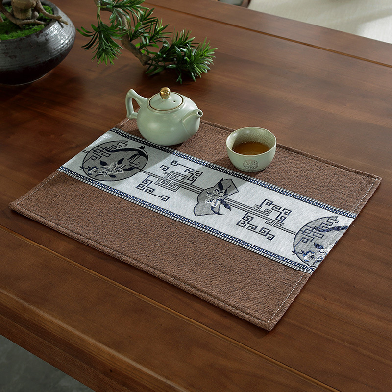 새로운 중국 스타일 면 린넨 패브릭 식탁 단열 매트 방수 안티 데임 더블 레이어 두꺼운 티 테이블 쿠션 커피 테이블 장식 플레이스매트