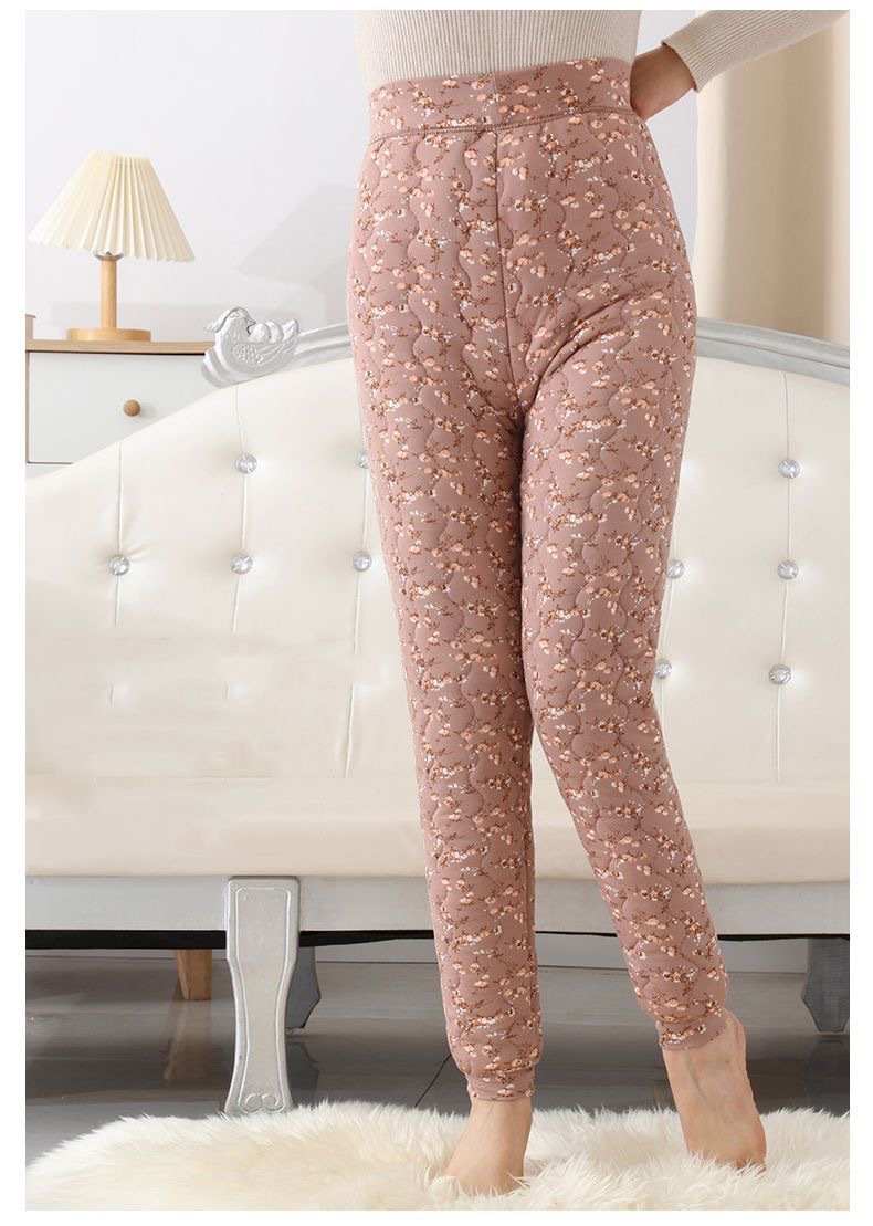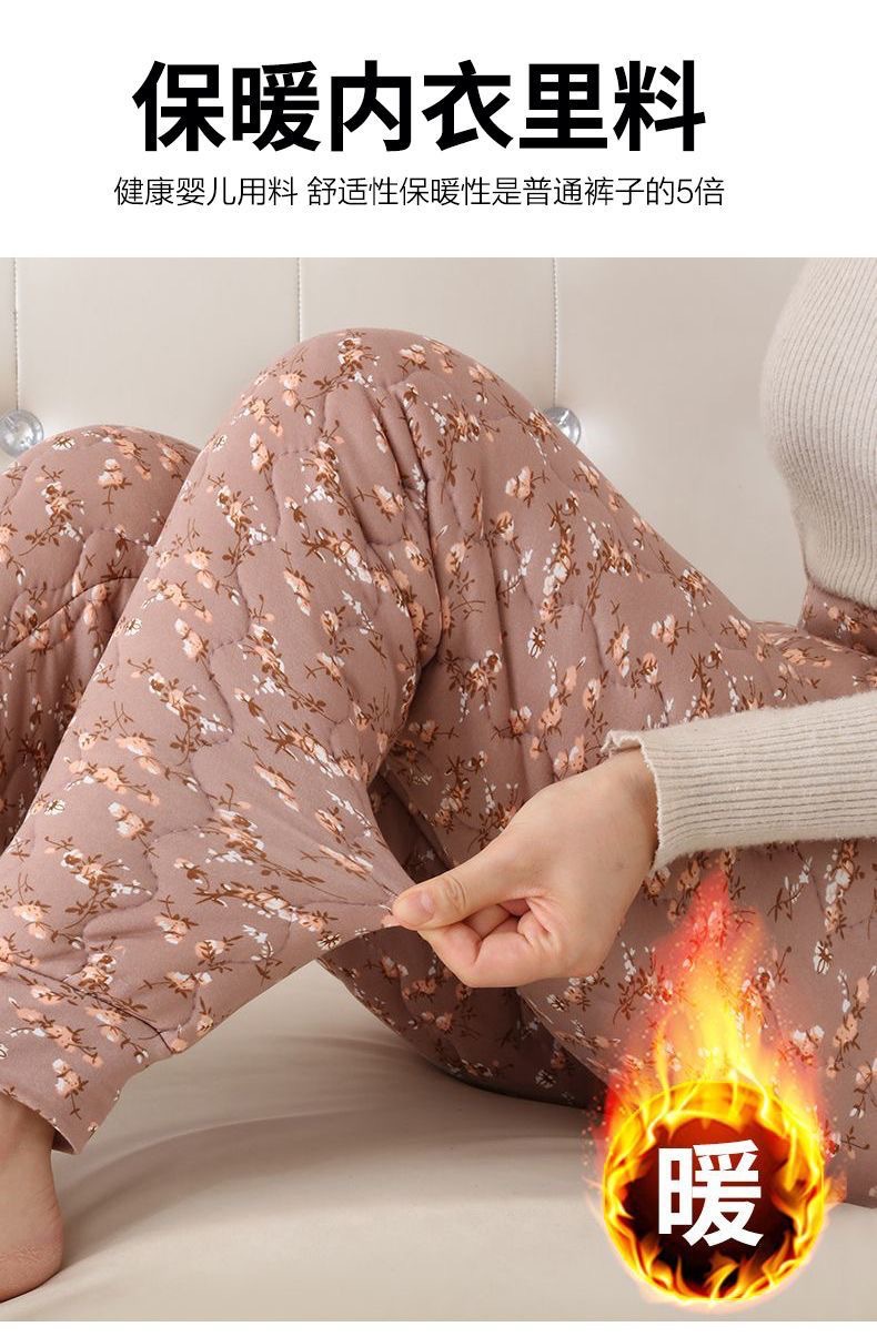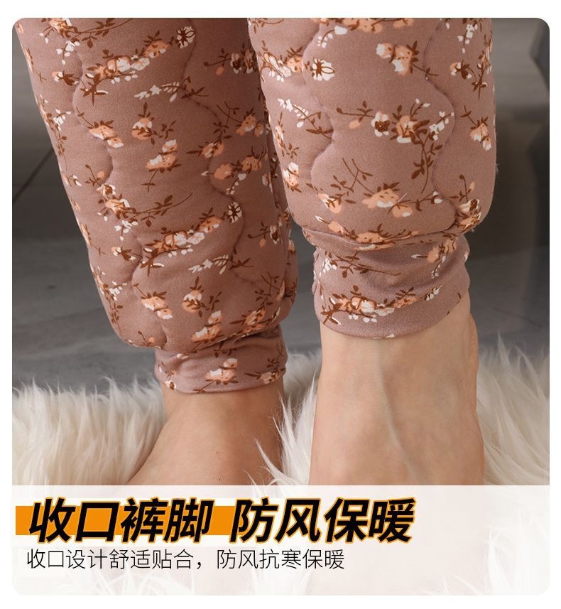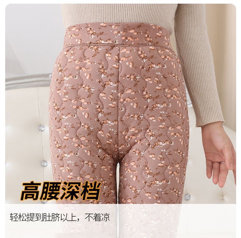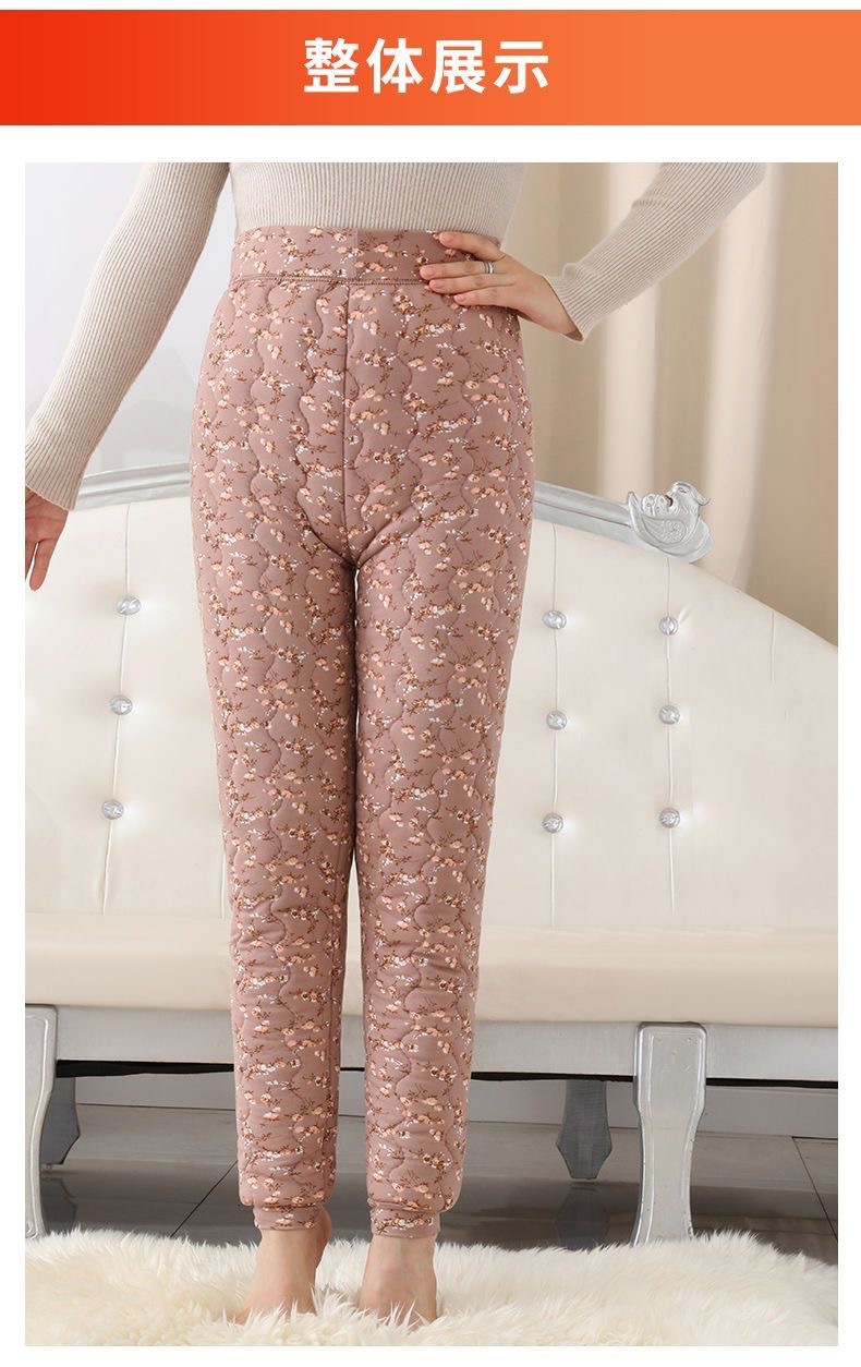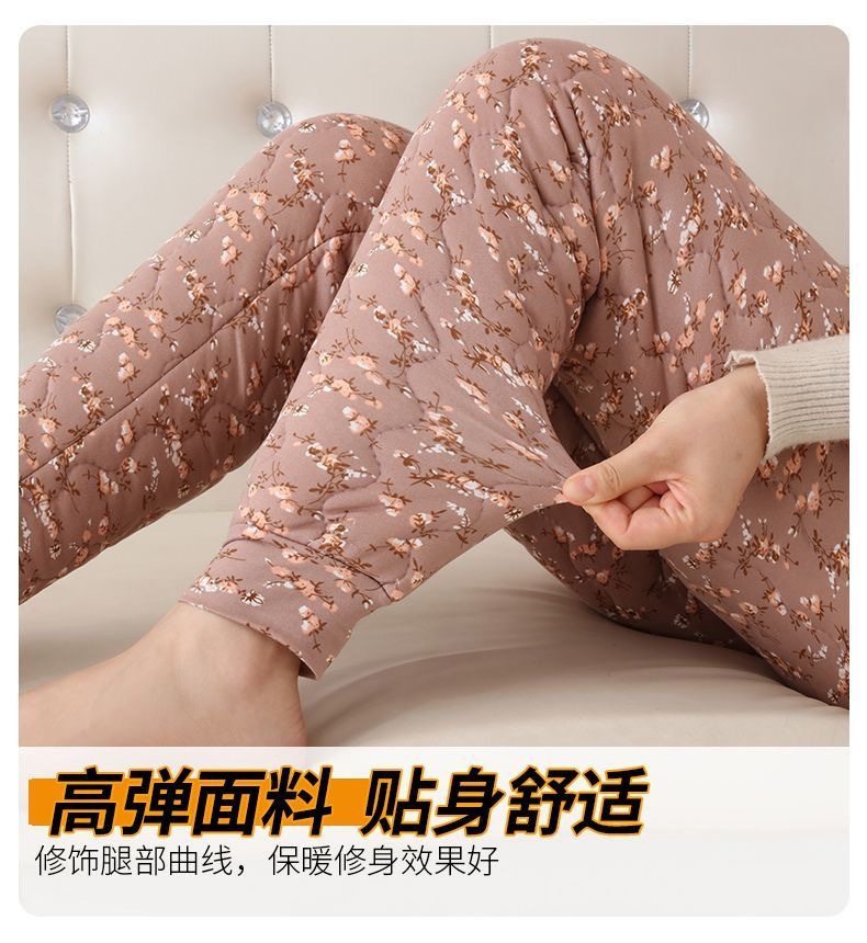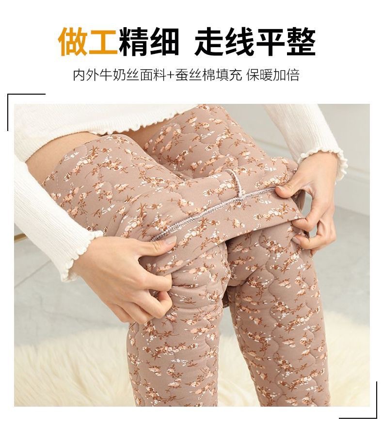실크 면 바지 여자의 3 층 두꺼운 기모 따뜻한 바지 하이 웨이스트 내부 착용 레깅스 겨울 방풍 플러스 사이즈 면 바지스토어 가기