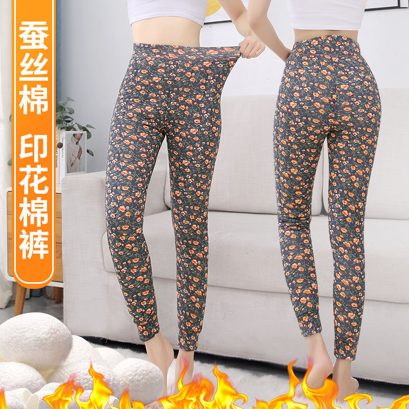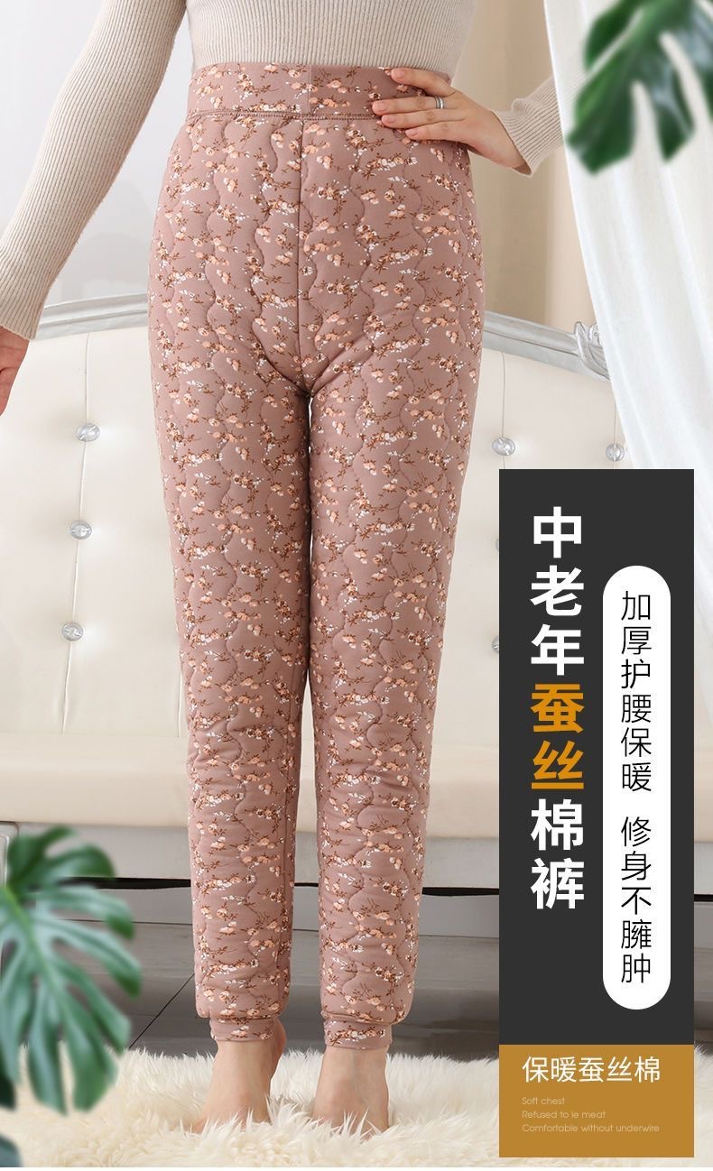 실크 면 바지 여자의 3 층 두꺼운 기모 따뜻한 바지 하이 웨이스트 내부 착용 레깅스 겨울 방풍 플러스 사이즈 면 바지