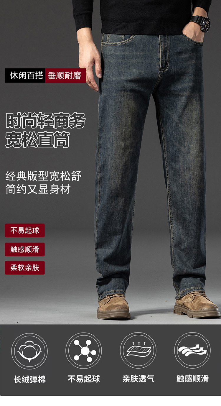 봄과 가을 공장 직접 판매 Xintang 스트레치 남성 바지 스트레이트 루즈 청바지 남성 트렌디 브랜드 와이드 레그 남성 긴 바지