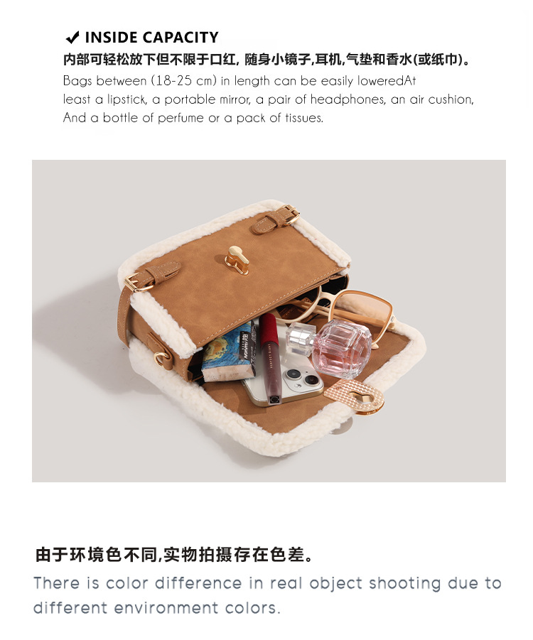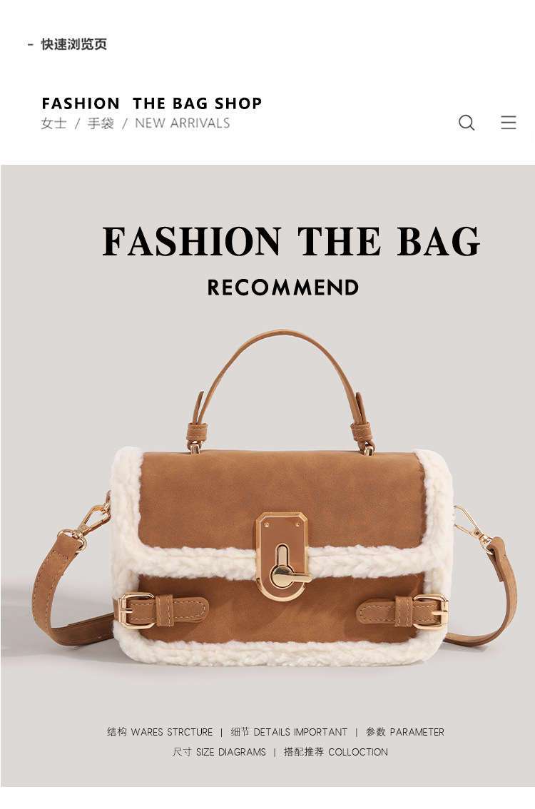 CHARHP & KEJNT 정품 가을과 겨울 가방 2024 조커 양모 핸드백 조수 작은 가방 여성용 메신저 가방스토어 가기