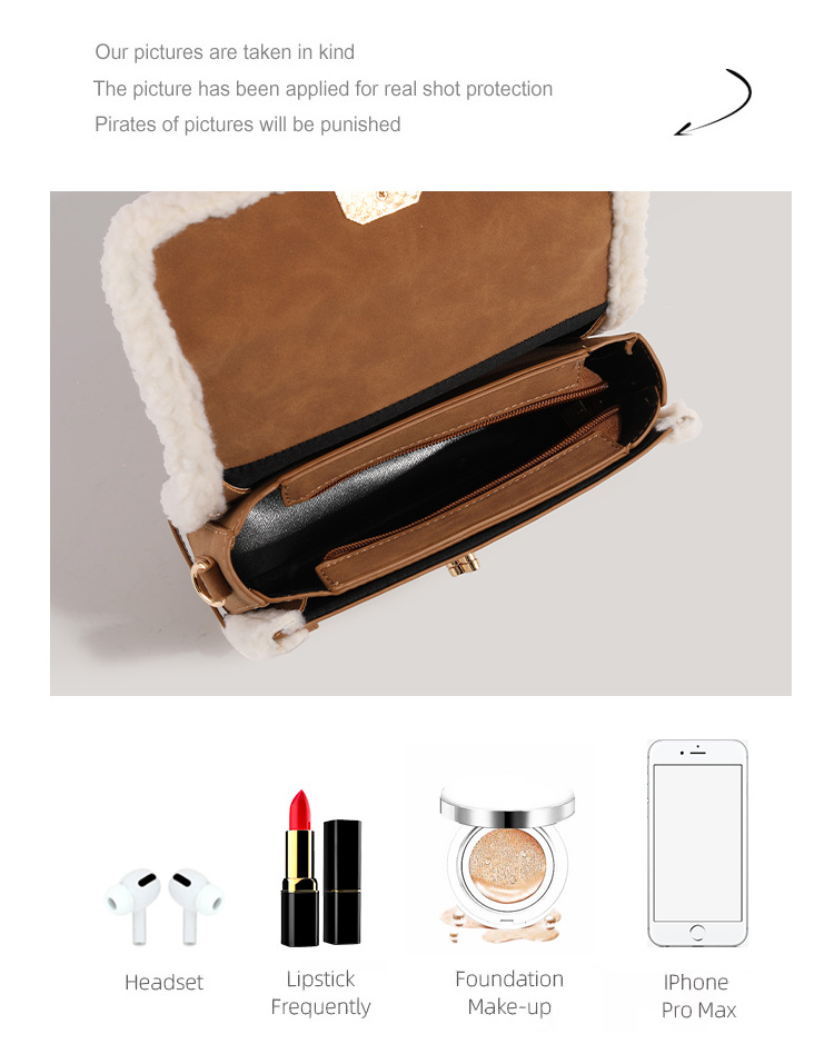 CHARHP & KEJNT 정품 가을과 겨울 가방 2024 조커 양모 핸드백 조수 작은 가방 여성용 메신저 가방