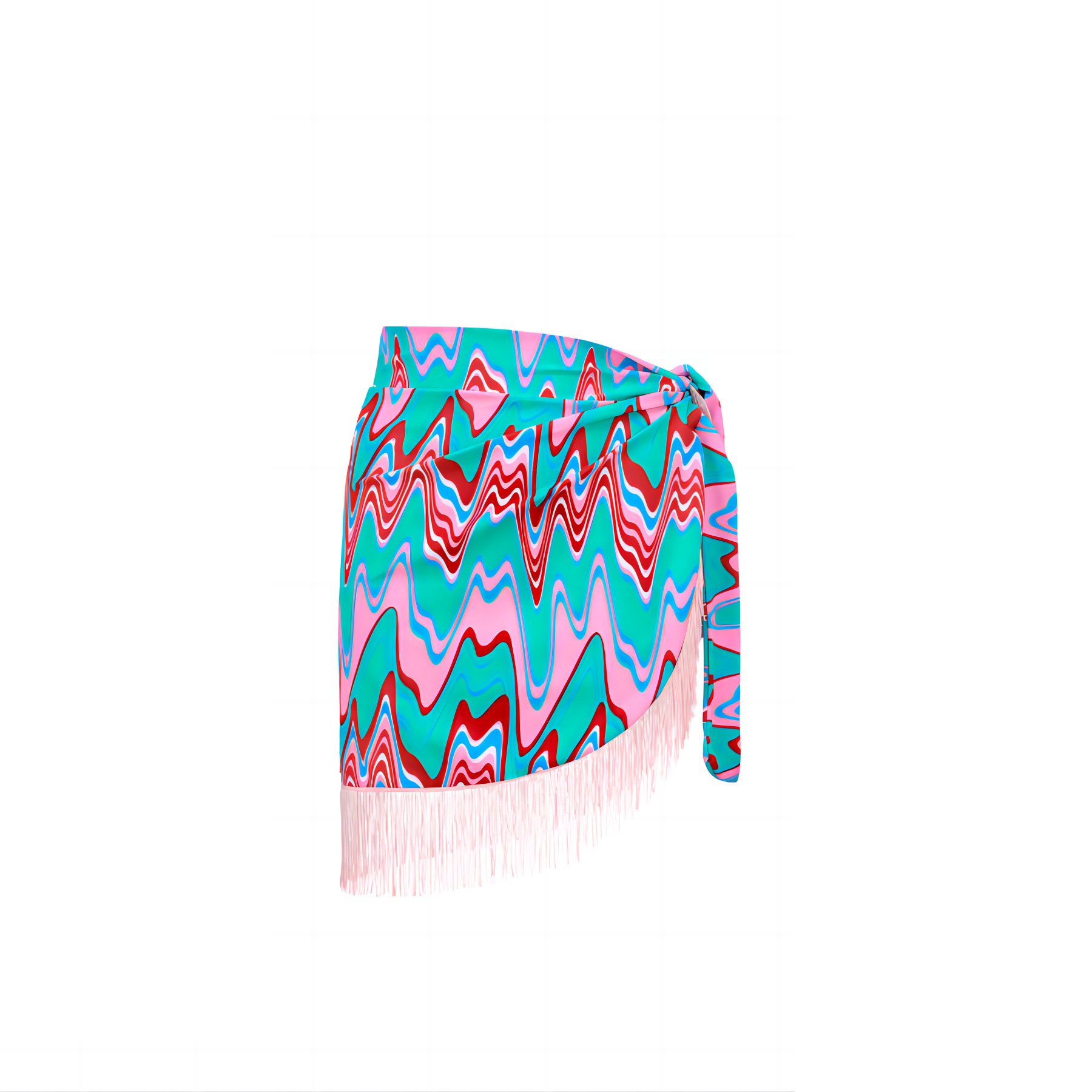 2025 신상 유럽 및 미국 원피스 딥 V 넥 프린트 여성 수영복, 국경을 넘는 인기 상품, 태슬 숏 스커트 수영복