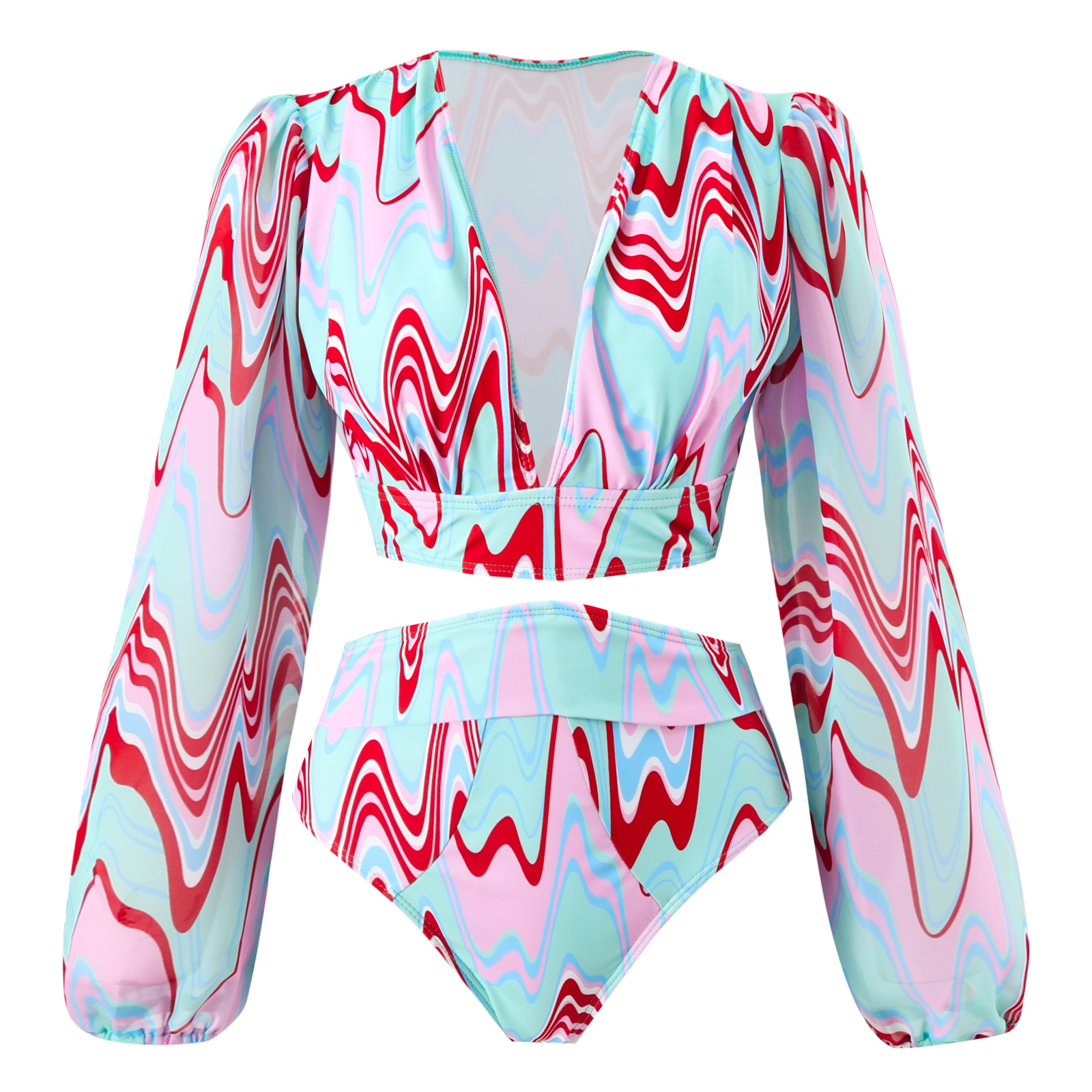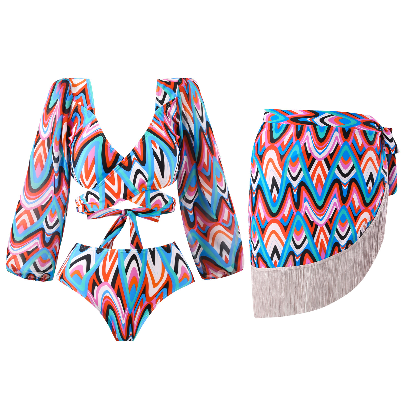 2024新款外贸聚拢比基尼性感高腰bikini分体泳衣套装批发雪纺长裙