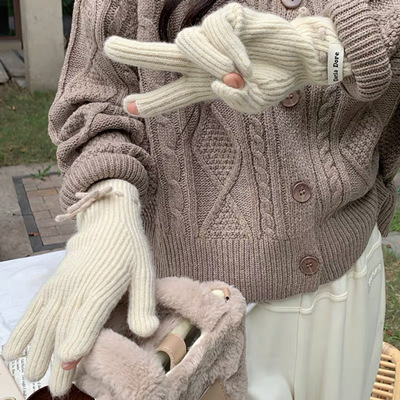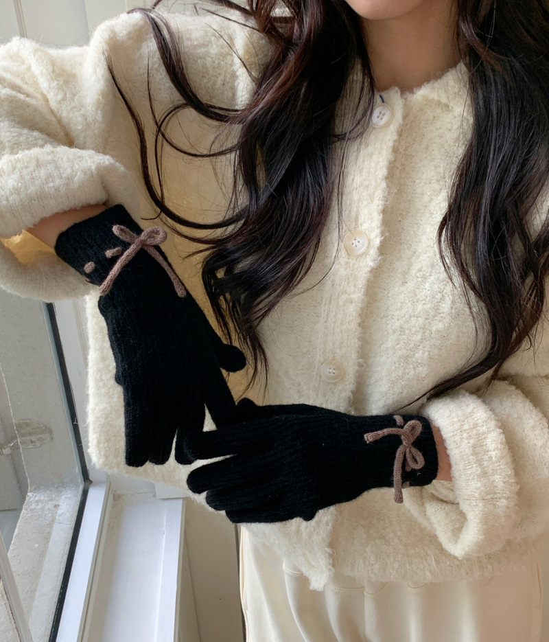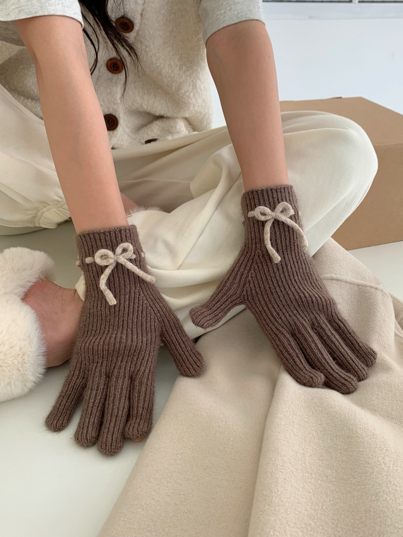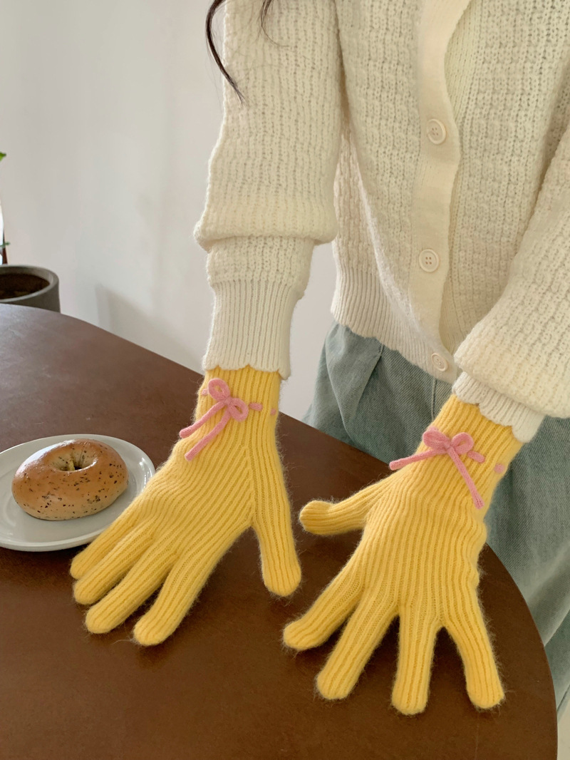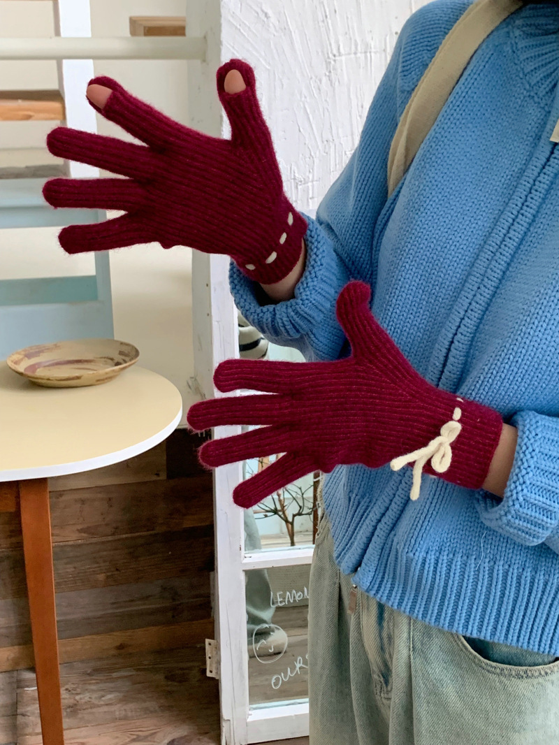 따뜻한 방한 손가락 노출 장갑 가을과 겨울 한국식 만능 귀여운 활을 타는 여학생용 니트 장갑
